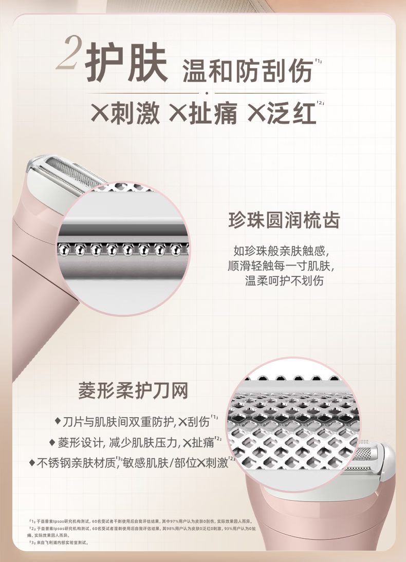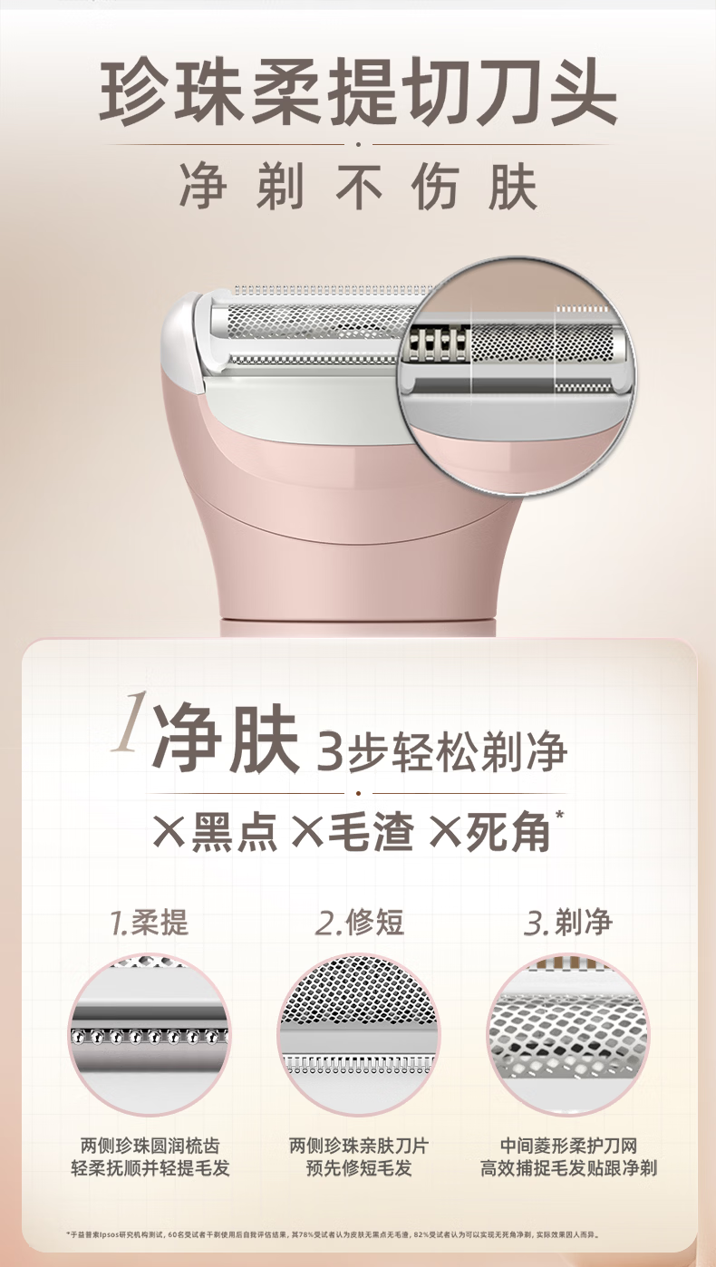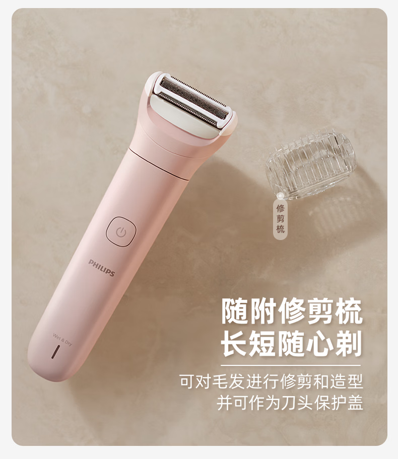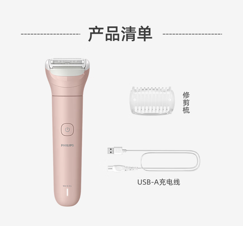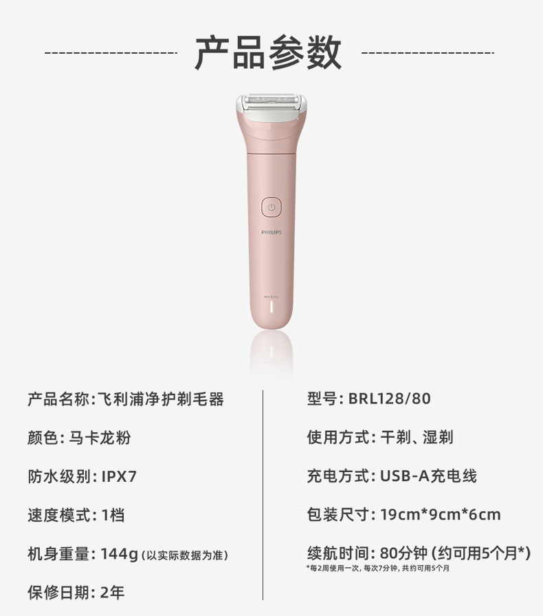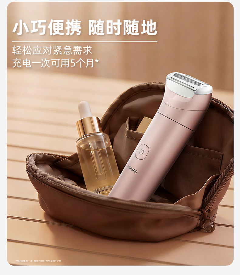 飞利浦(PHILIPS)脱毛仪小巧便携剃毛器 干湿两用脱毛刀 全身可用剃毛刀私密剃毛器刮毛器 BRL128/80