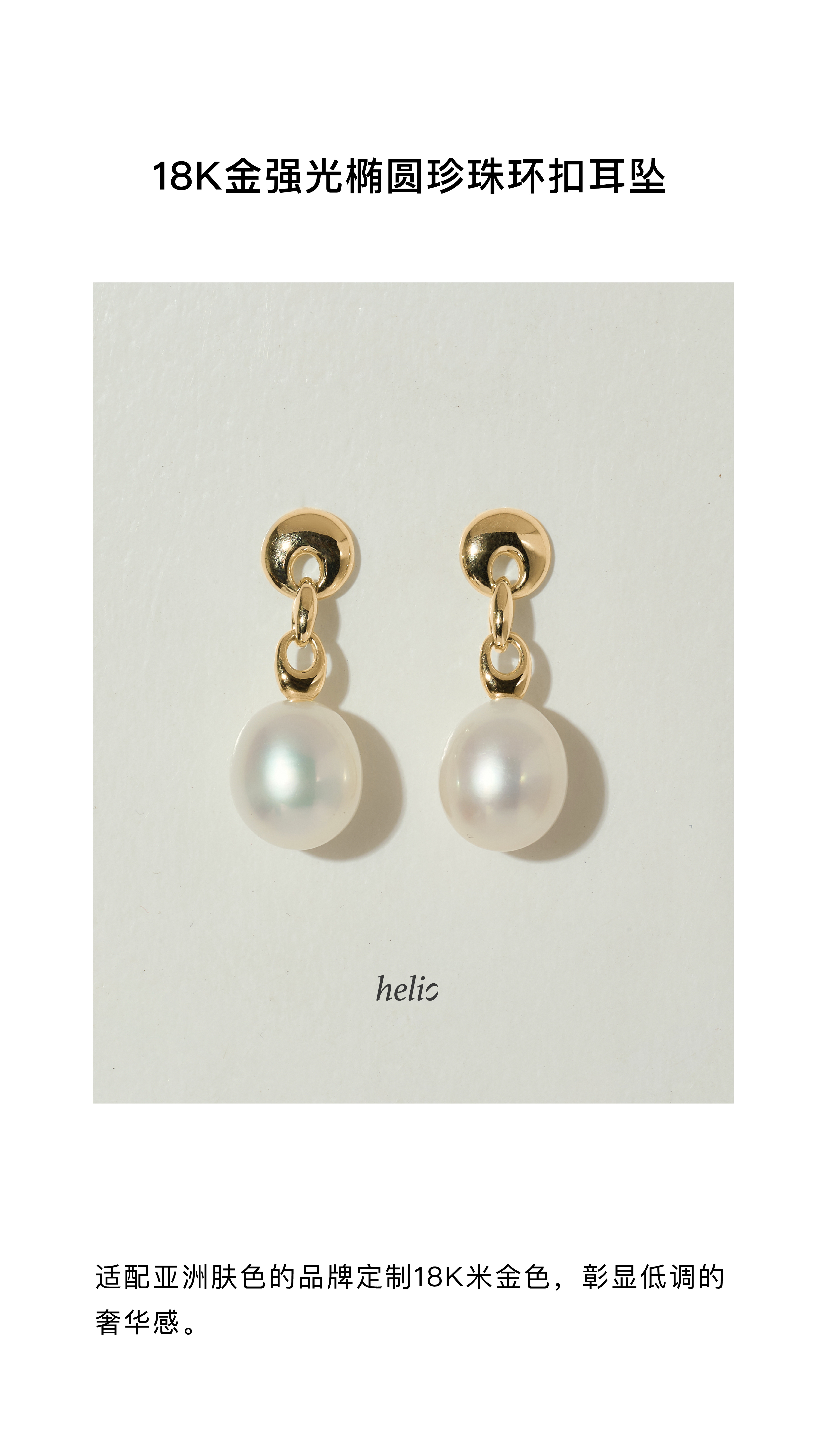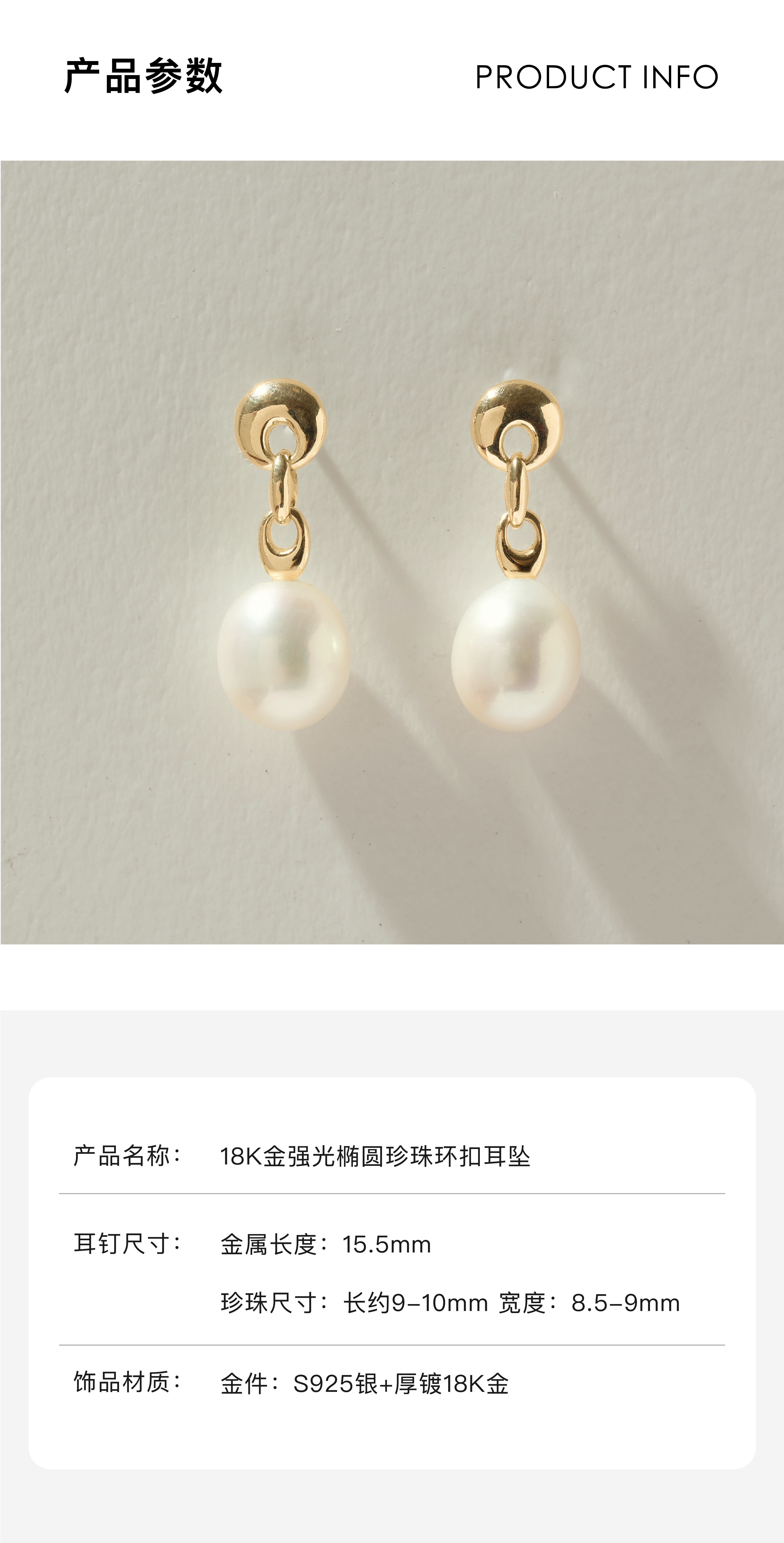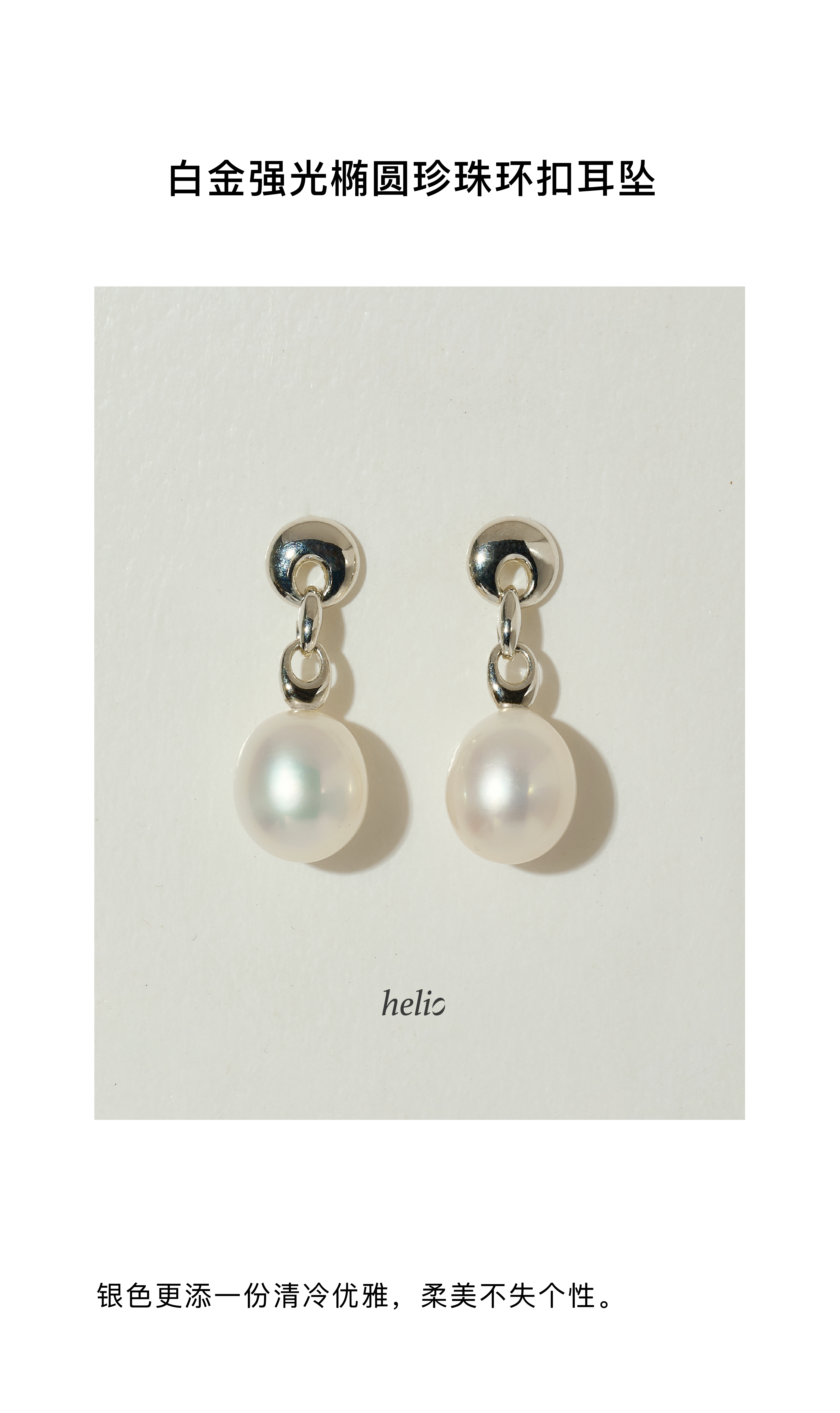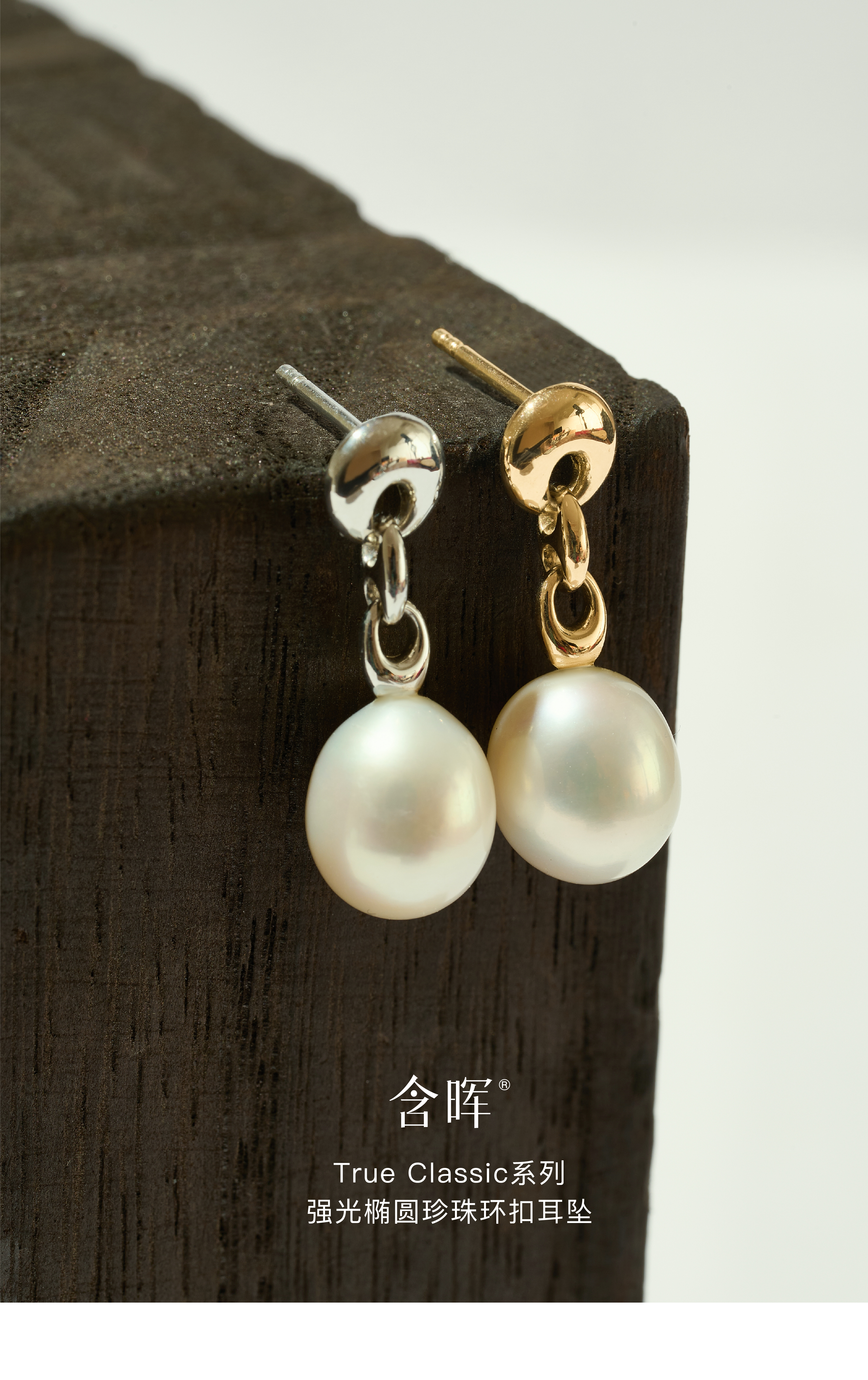 含晖· True Classic系列-强光椭圆珍珠环扣耳坠(2款可选)