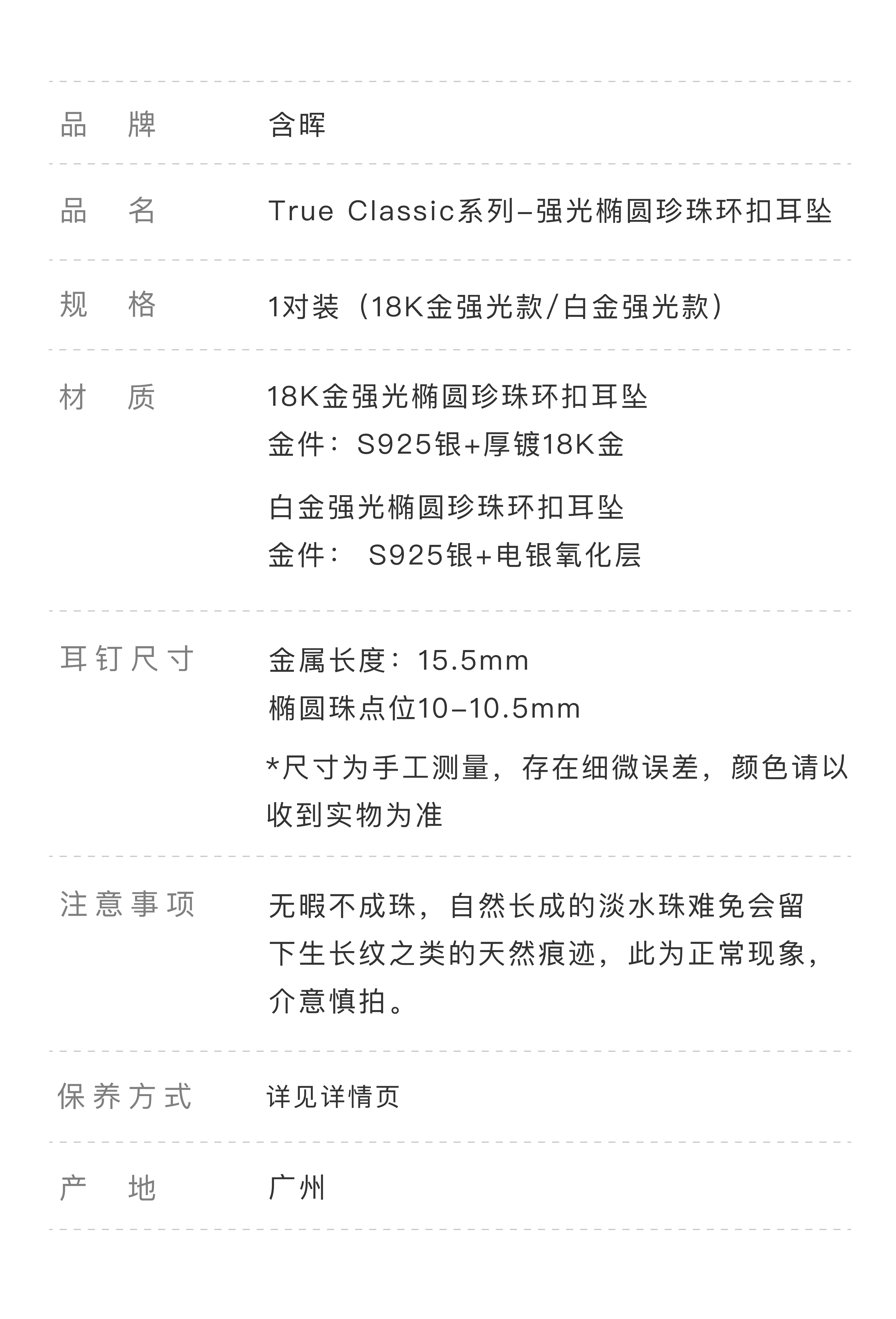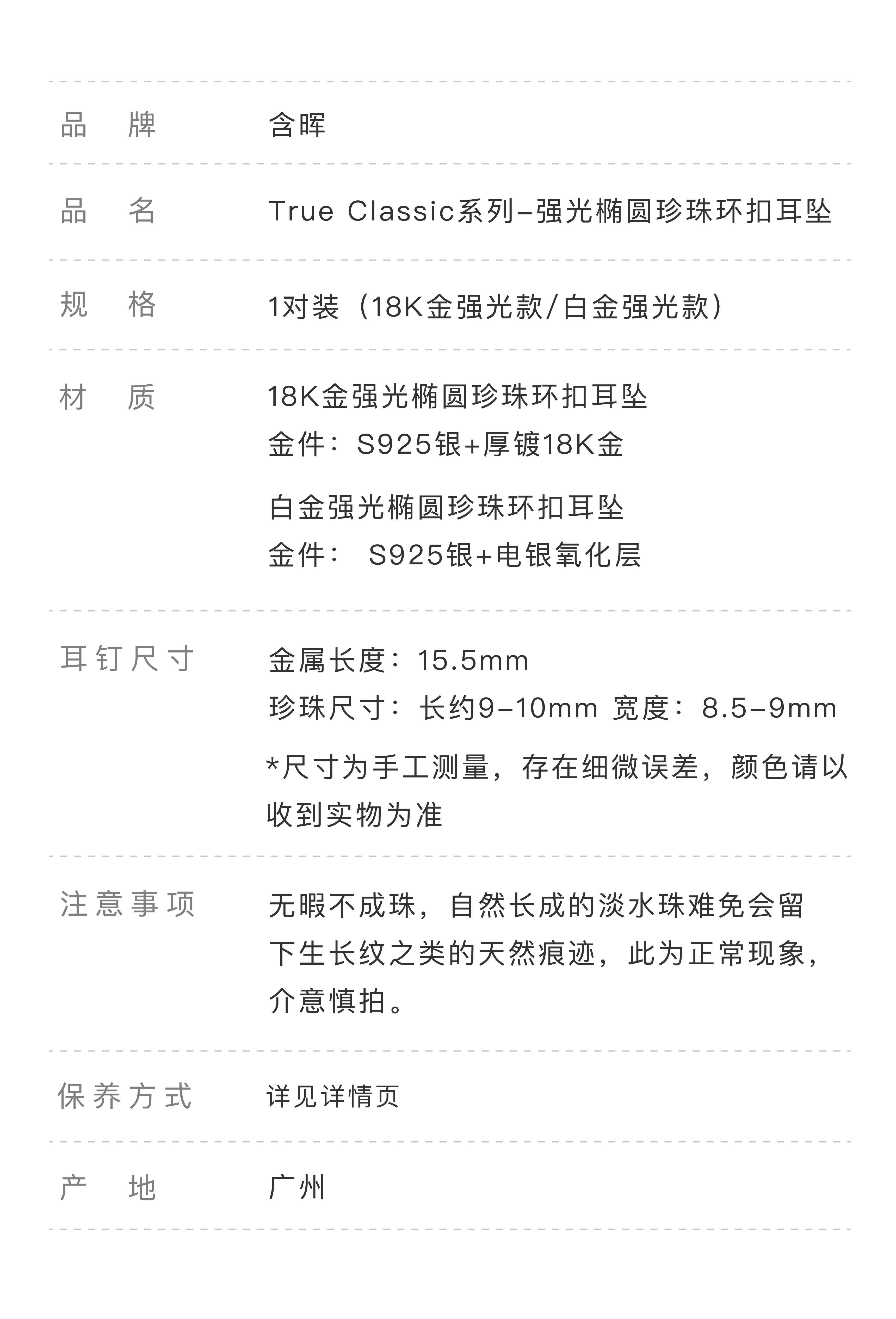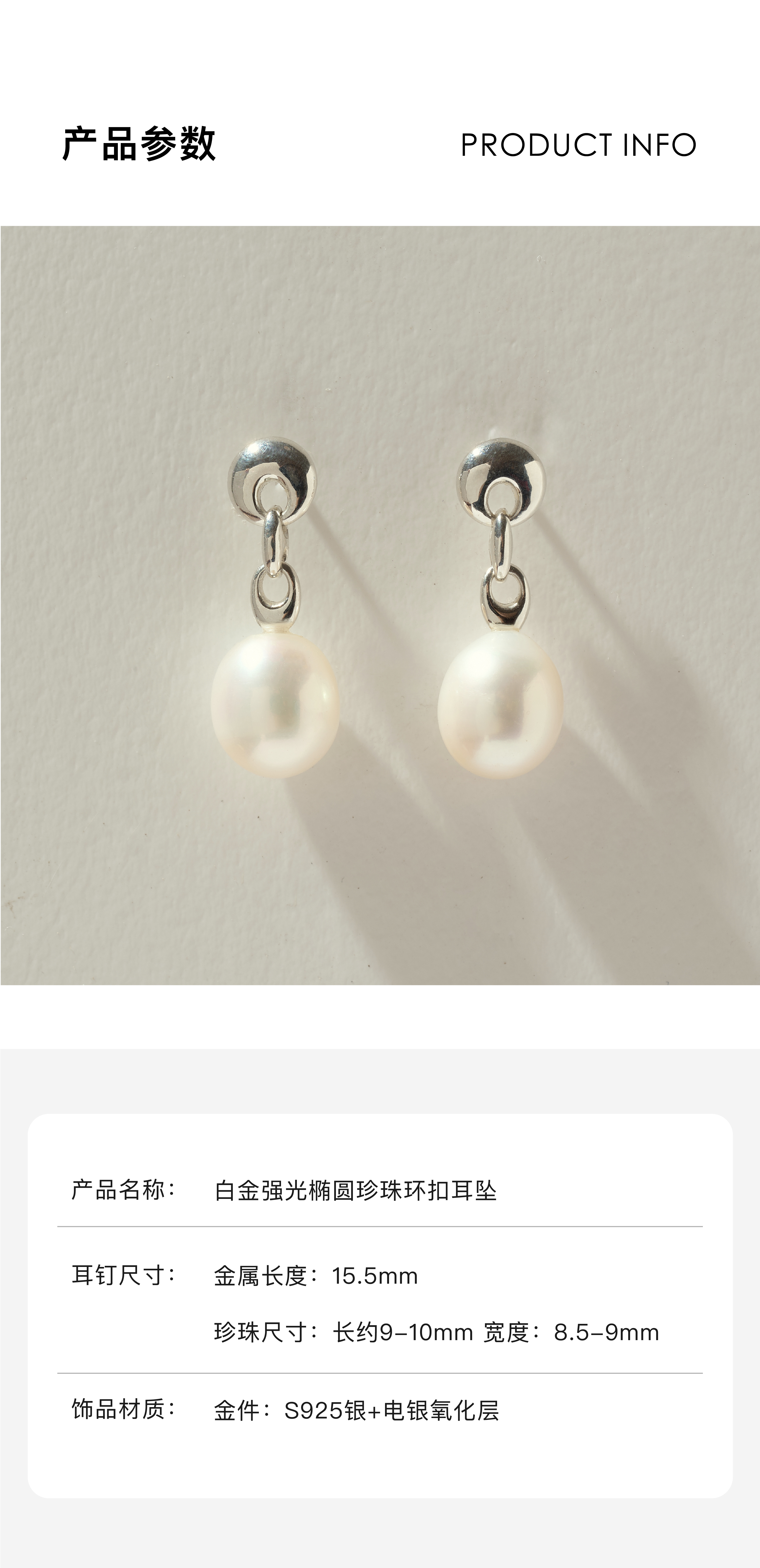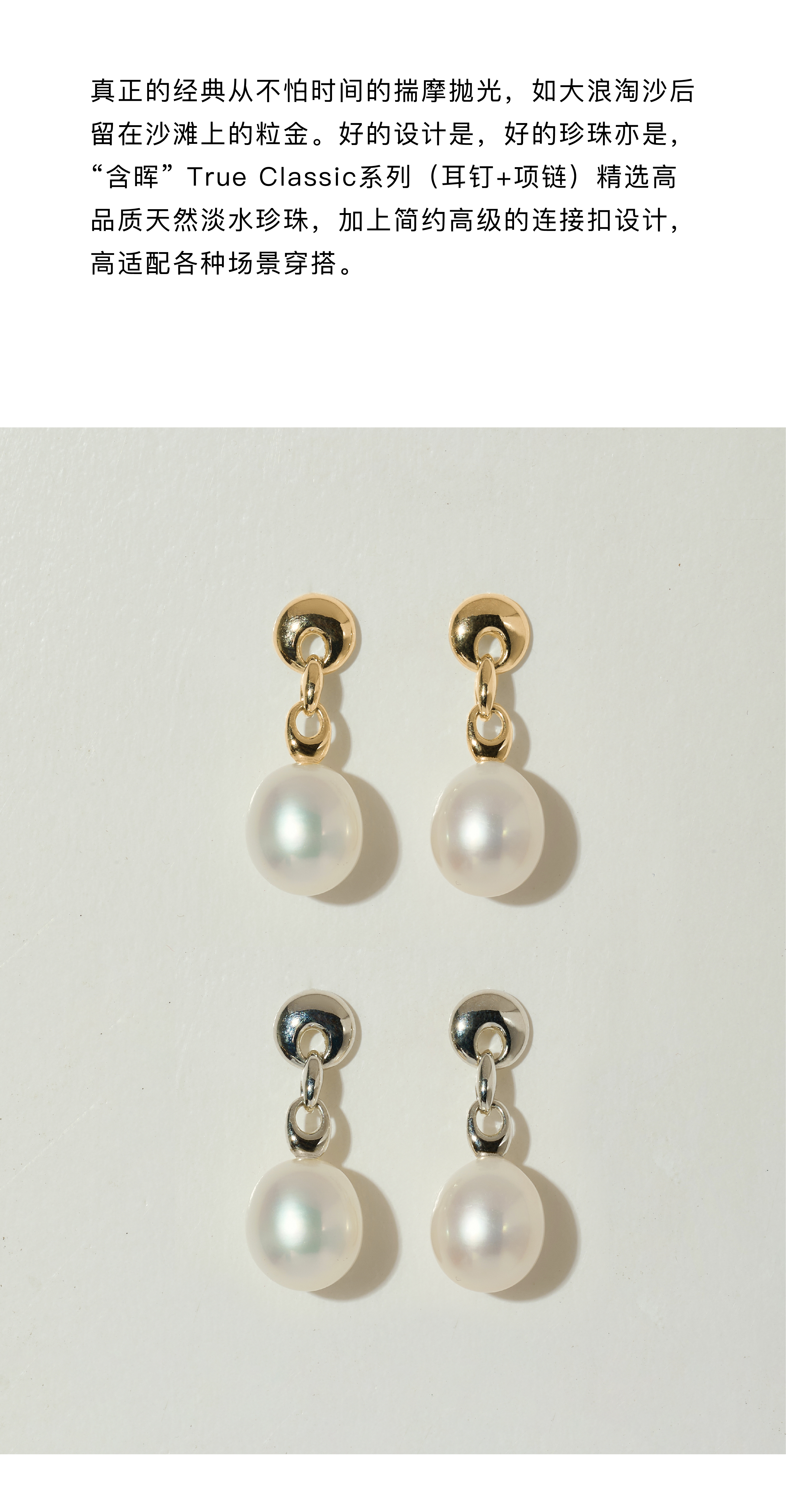 含晖· True Classic系列-强光椭圆珍珠环扣耳坠(2款可选)