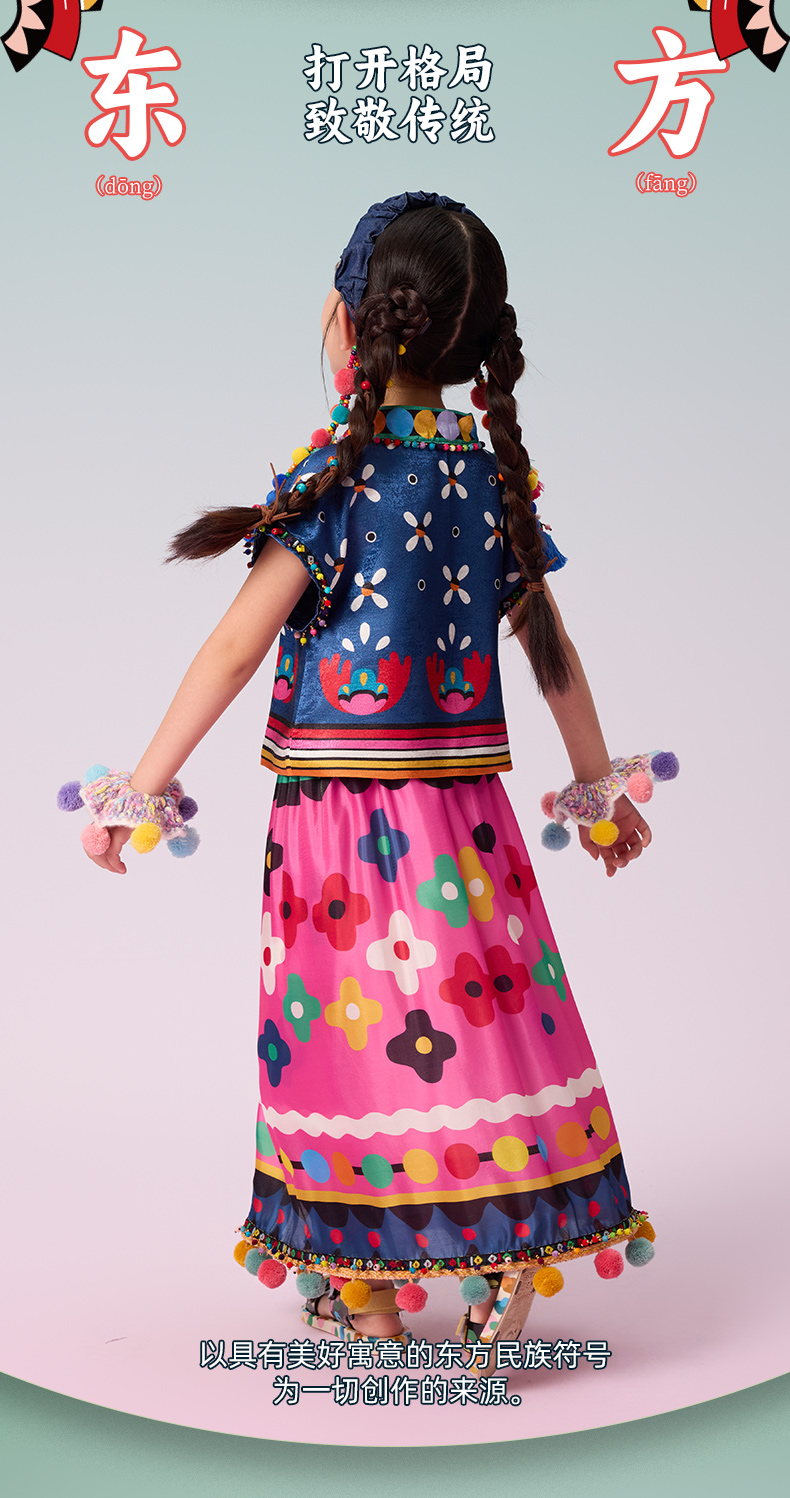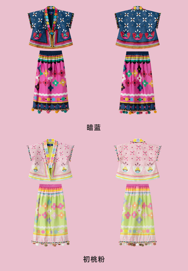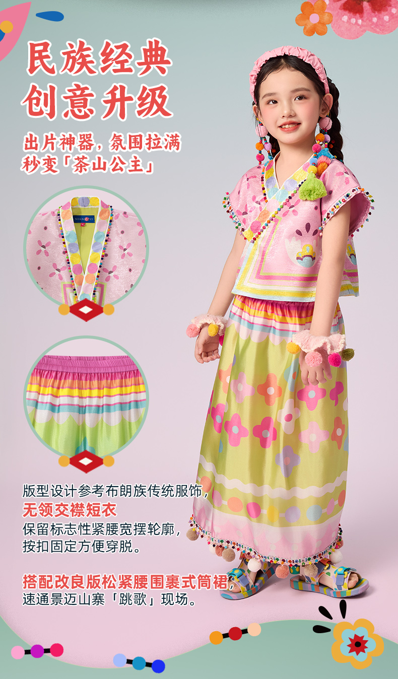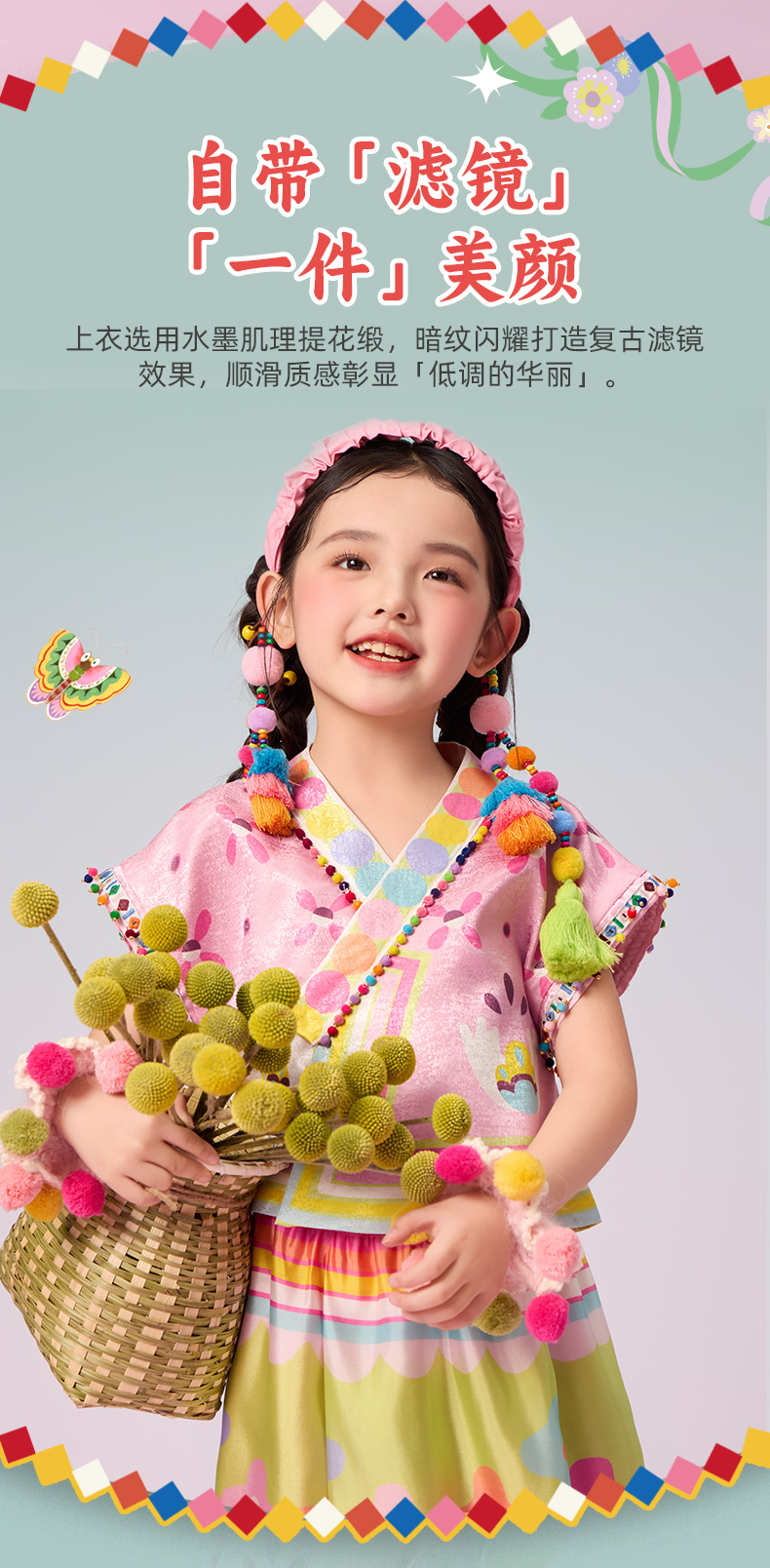 年衣童装女童套装民族服饰新款2025夏季儿童汉服两件套青罗朵朵套装