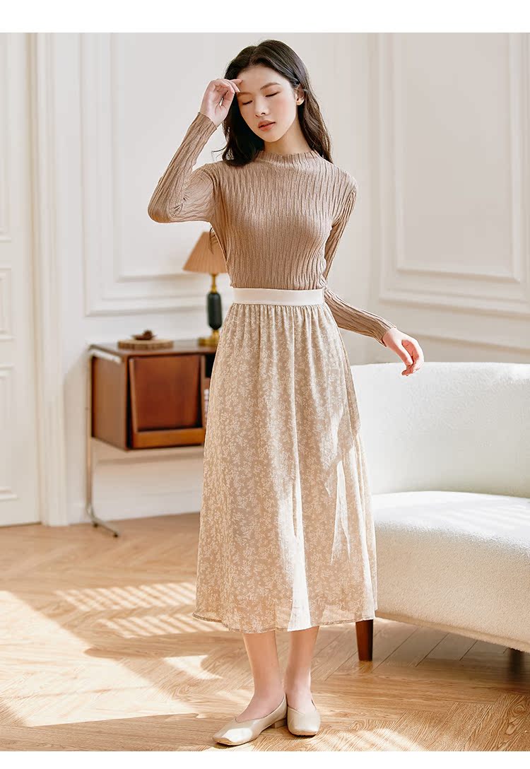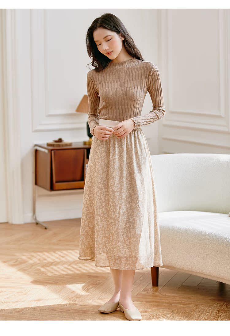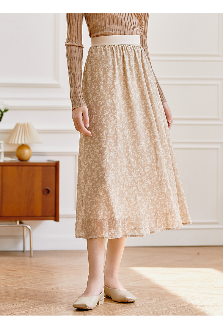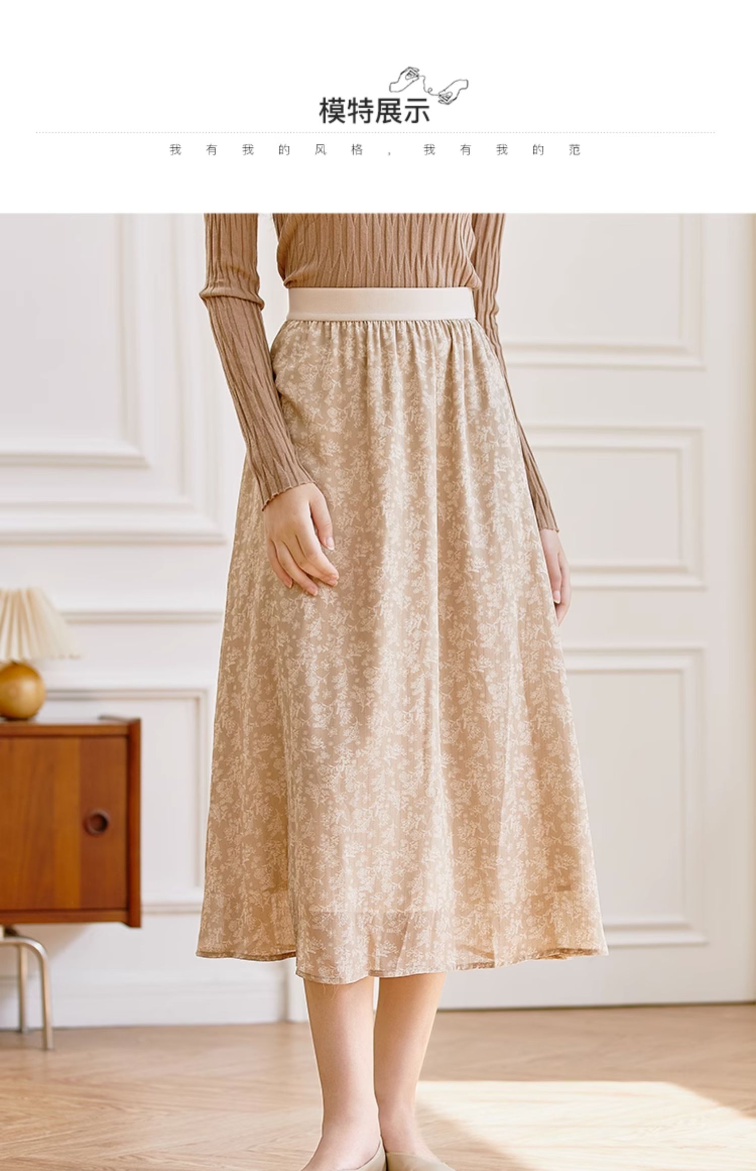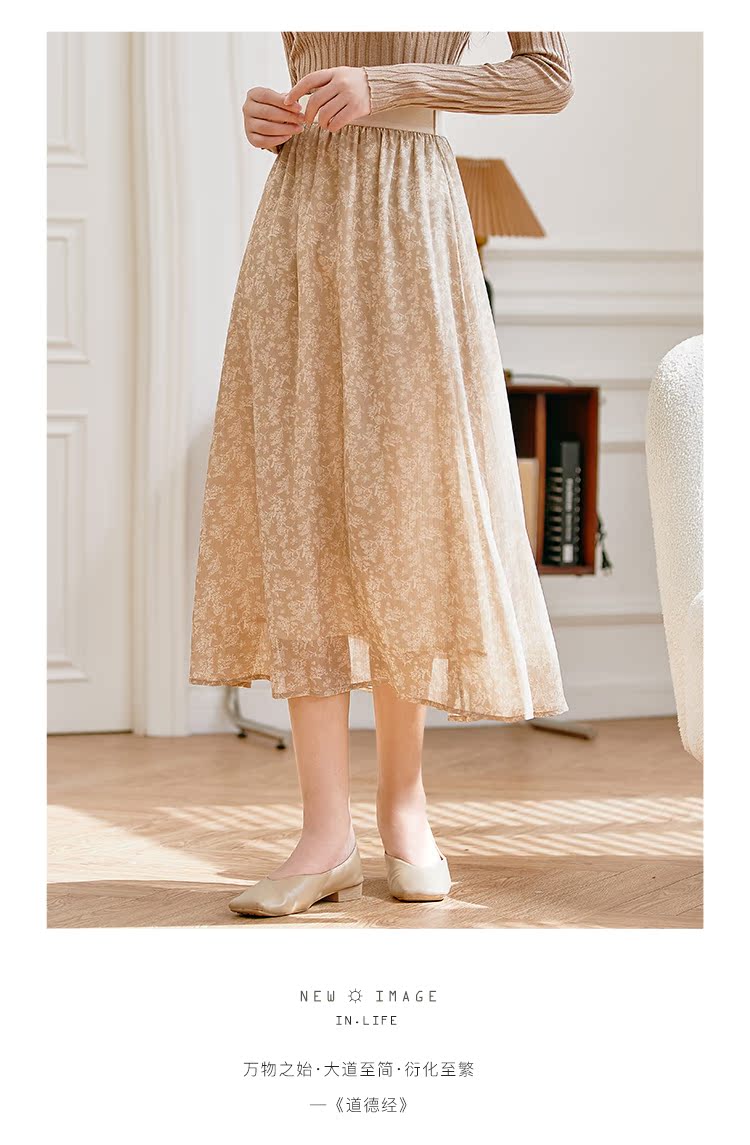Famecoco范可儿女士气质碎花半身裙秋季松紧腰a字垂感半身长裙