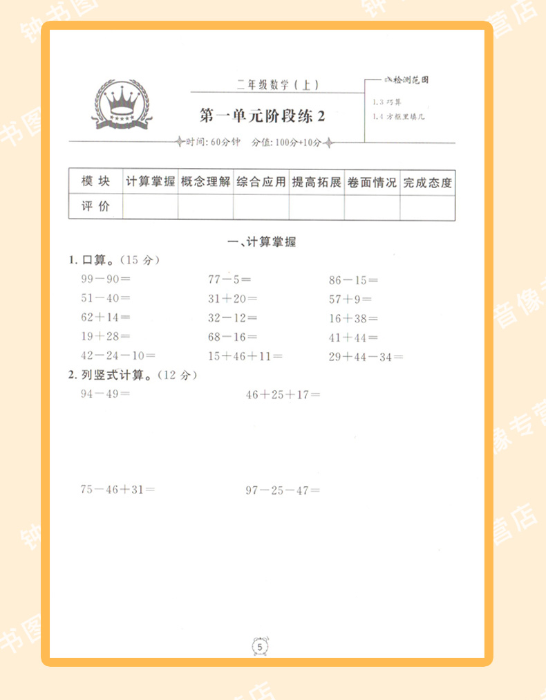 钟书金牌 金试卷 数学 二年级上/2年级上 数学 第一学期上海沪教版教材配套教辅中学分层训练+单元测试卷+易错专项+期中期末卷