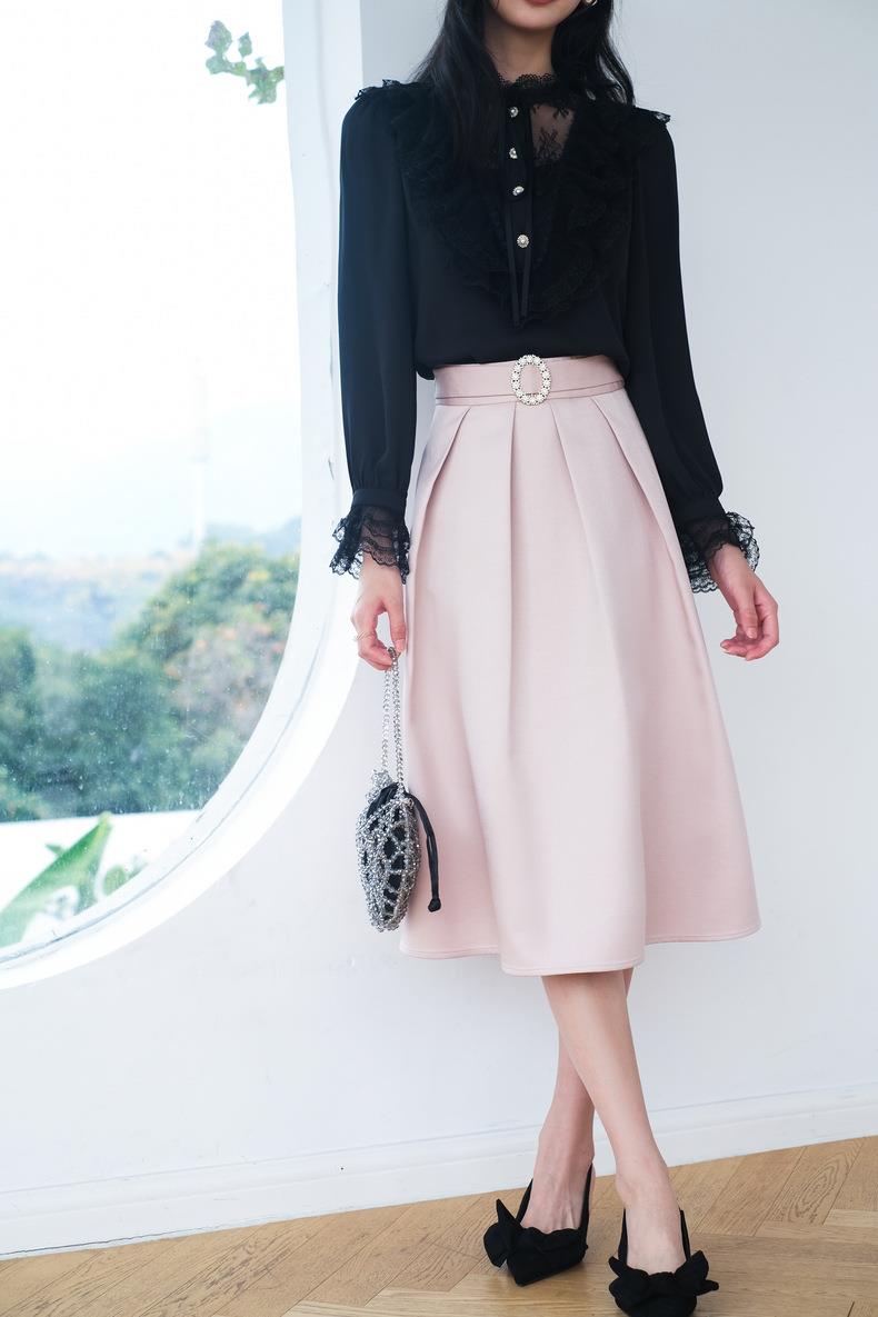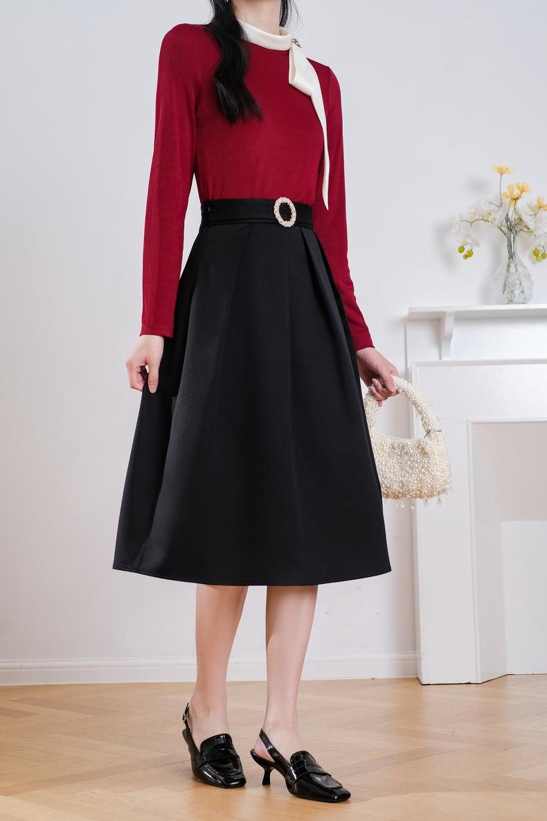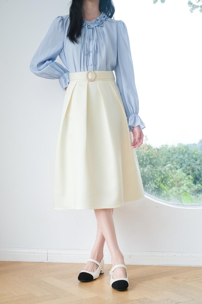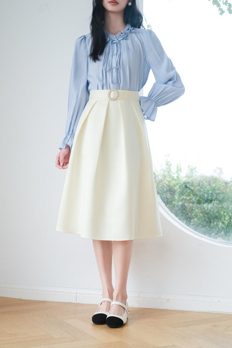 米色半身裙女2024春装新款时尚中长款气质半身裙A字裙5102
