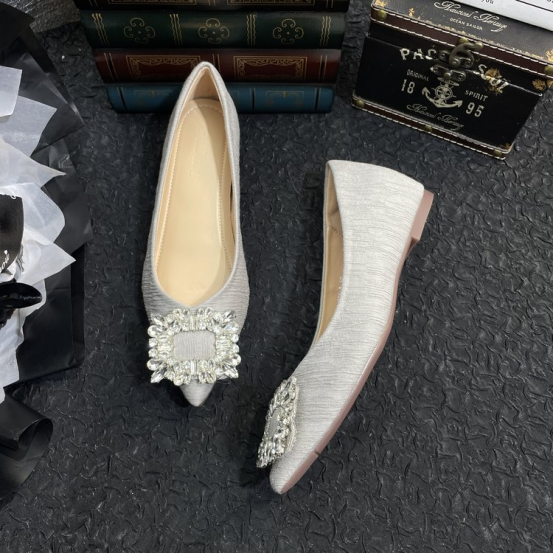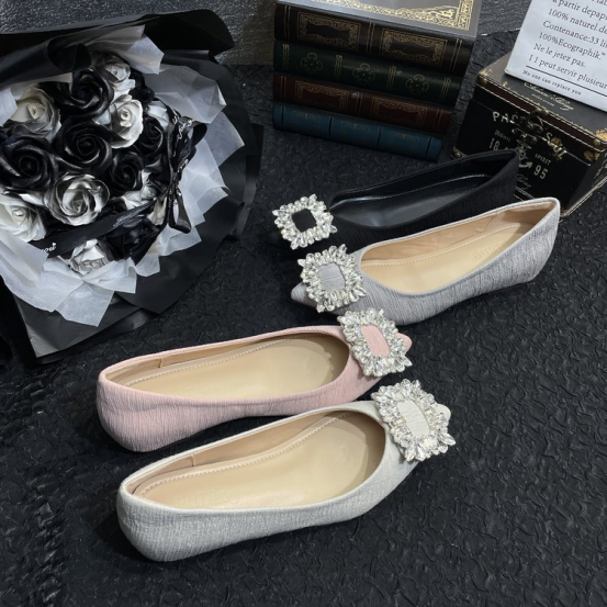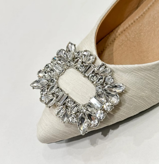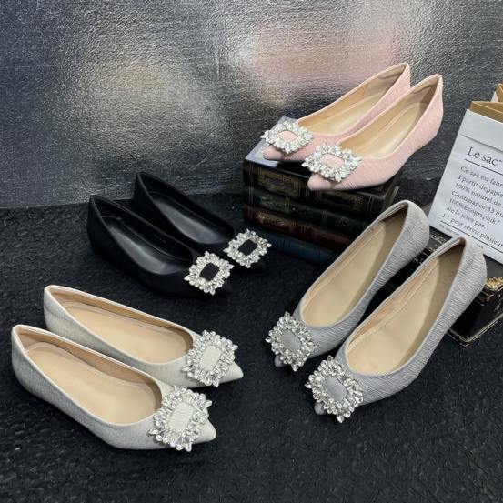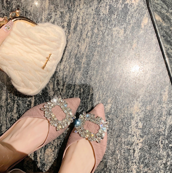 ✅ 独特设计款V型楦型,修饰脚型 ✅原版全水钻方形饰扣,华丽担当 ✅高定海玻丽鞋垫,云感裸穿不粘脚 ✅静音橡胶鞋底,走路轻便有弹性