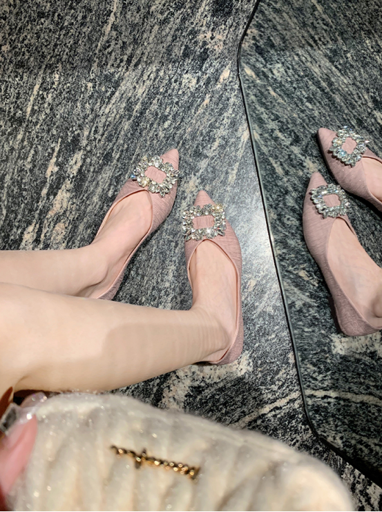 我的宝藏冰莓粉色甜而不腻 外貌协会都想为它的颜值买单了 闪钻单鞋配小裙子 简约大气,干练有型 单鞋让整套穿搭变得秀气精致