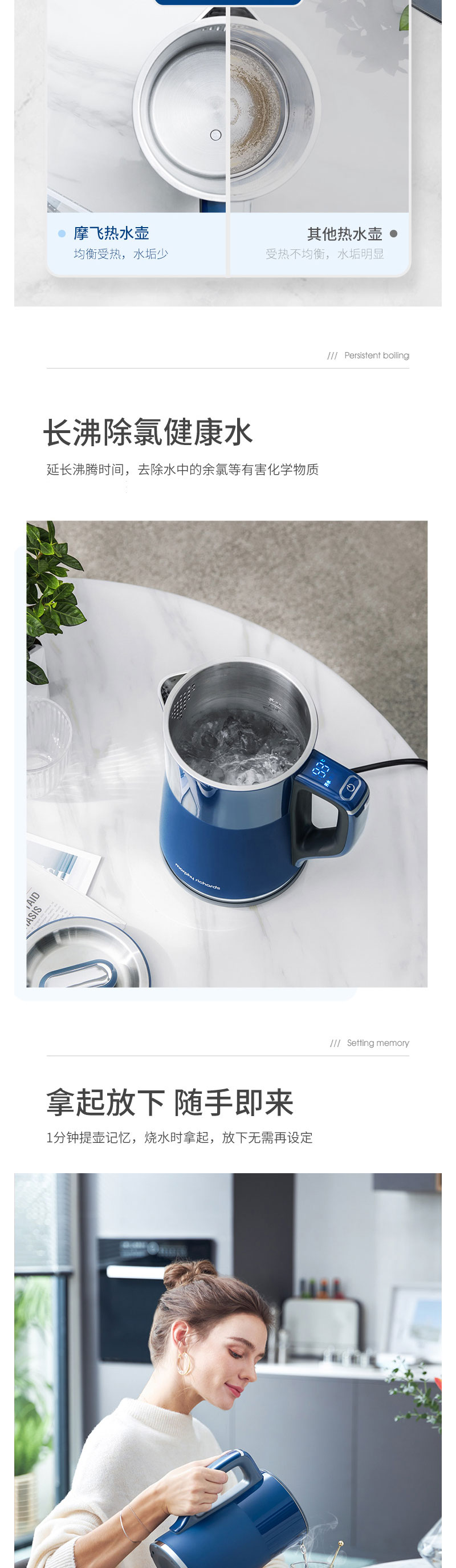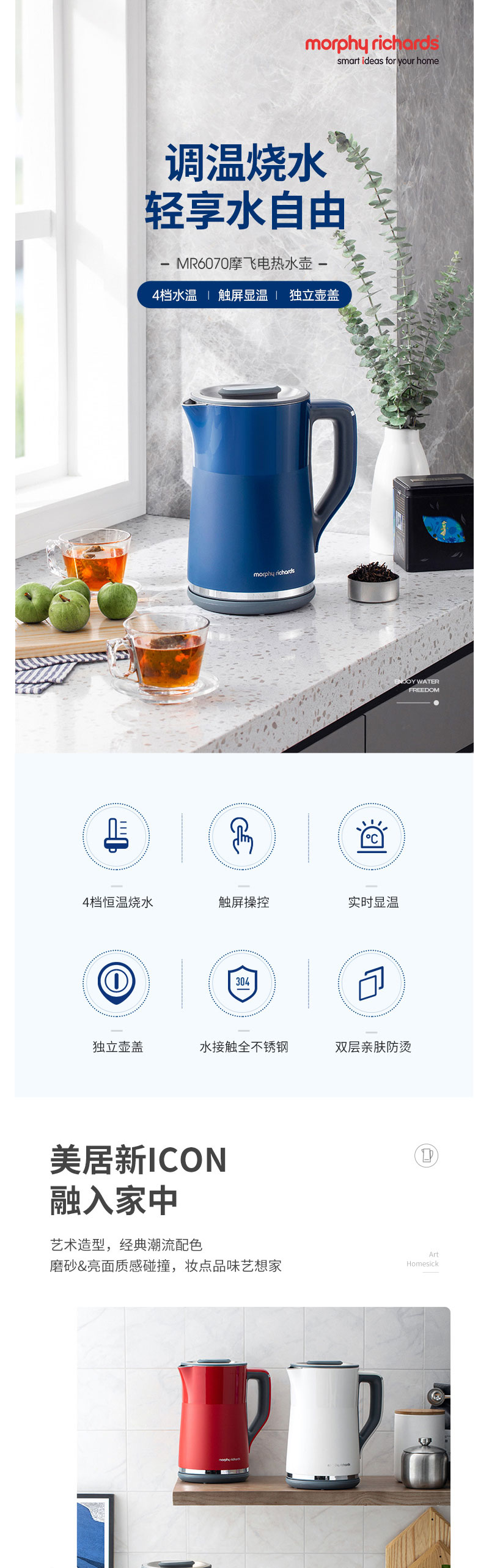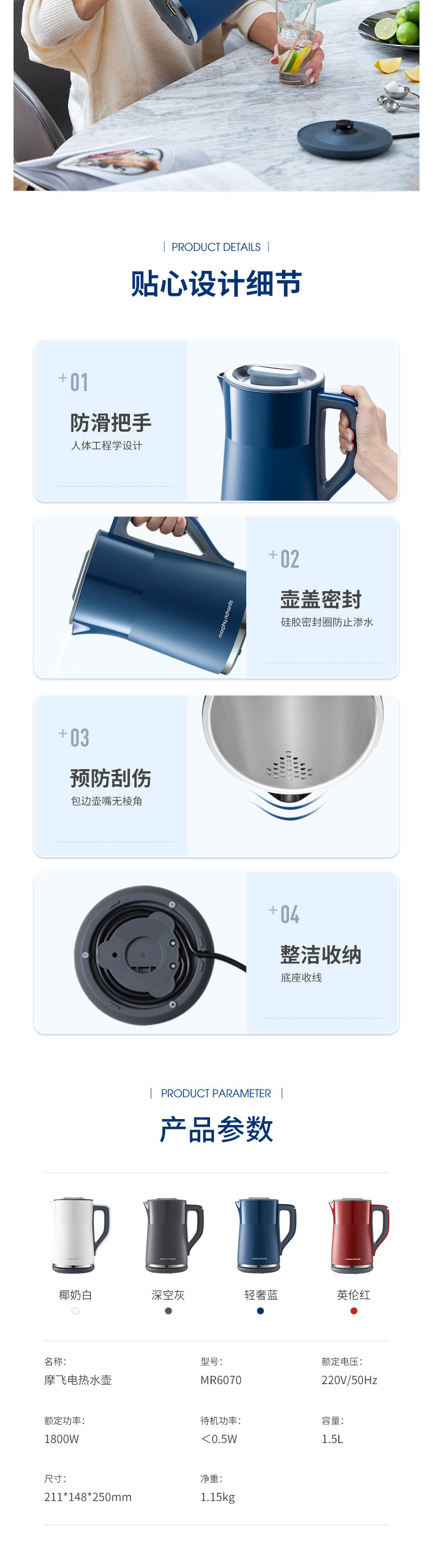 摩飞电热水壶蓝MR6070【伊藤优选301692】