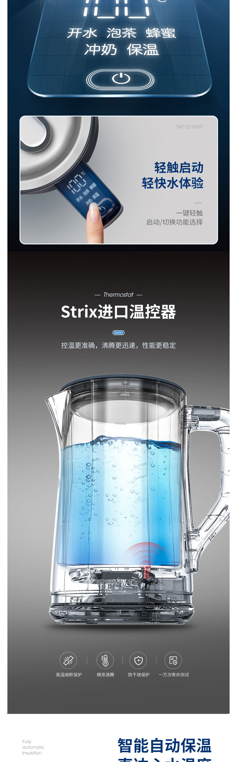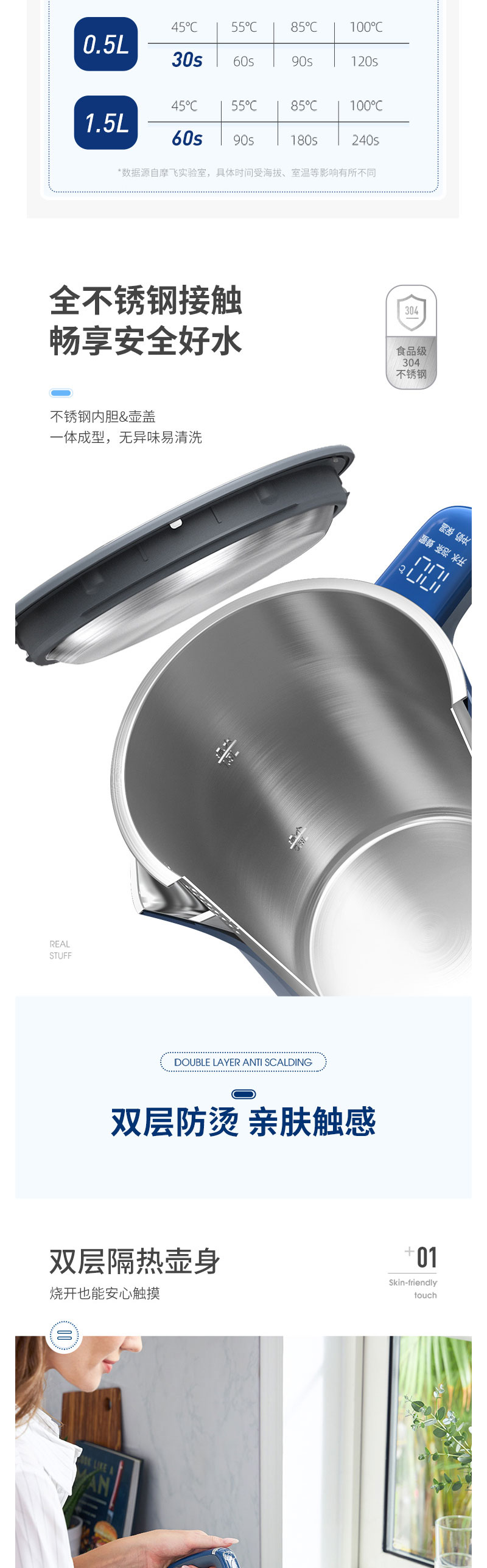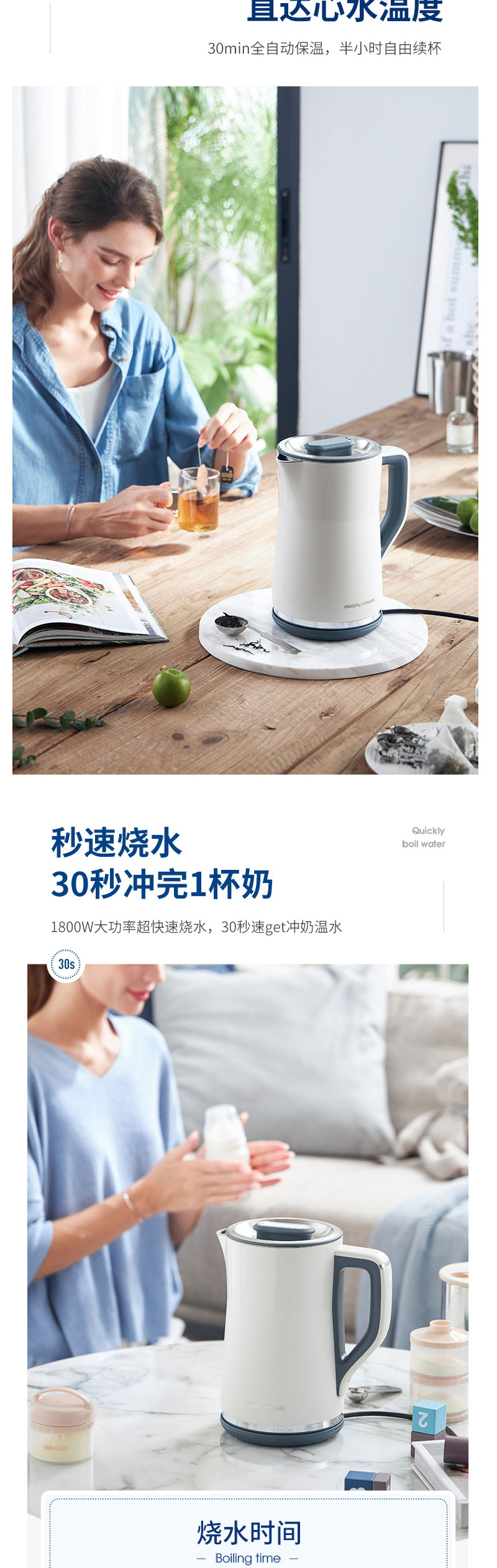摩飞电热水壶蓝MR6070【伊藤优选301692】