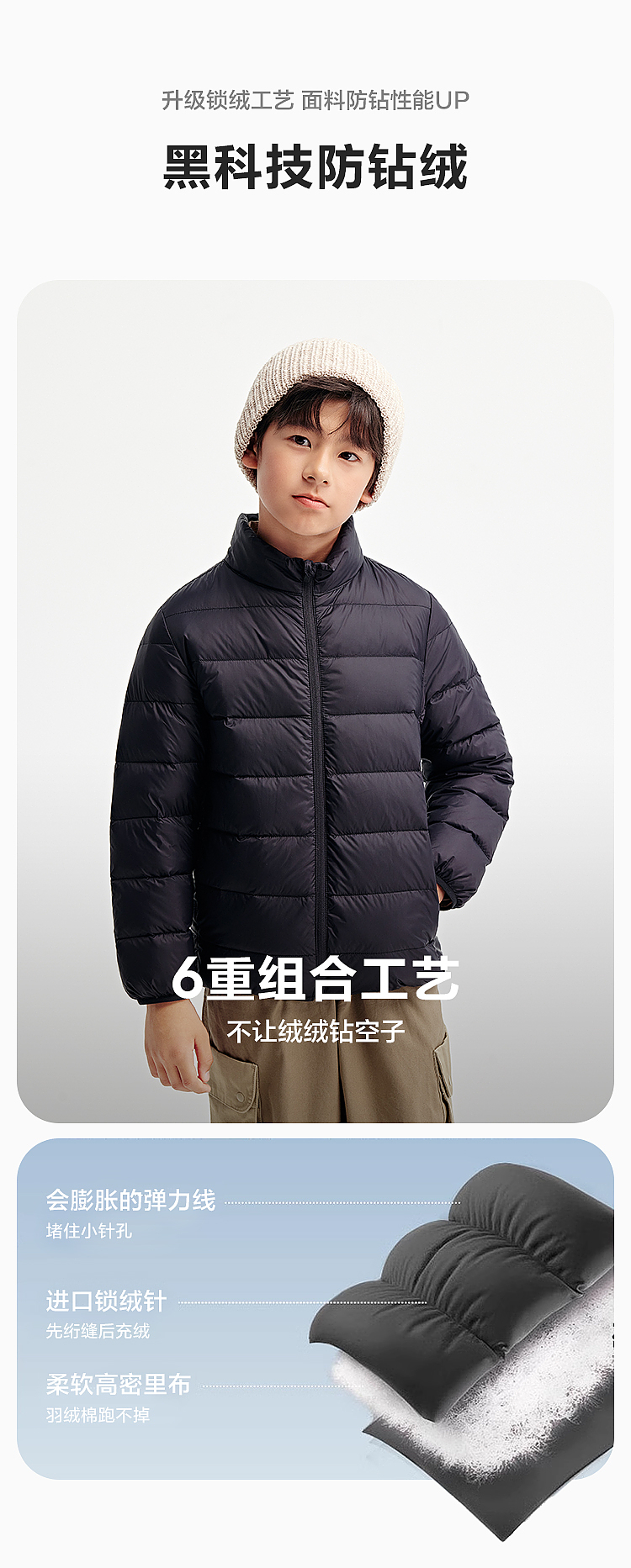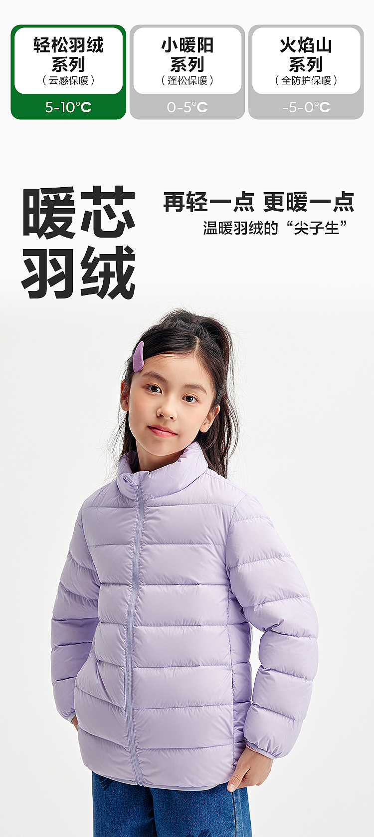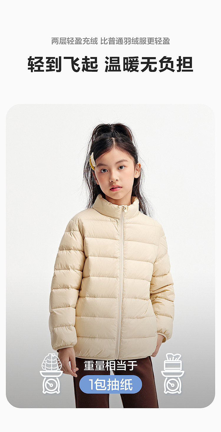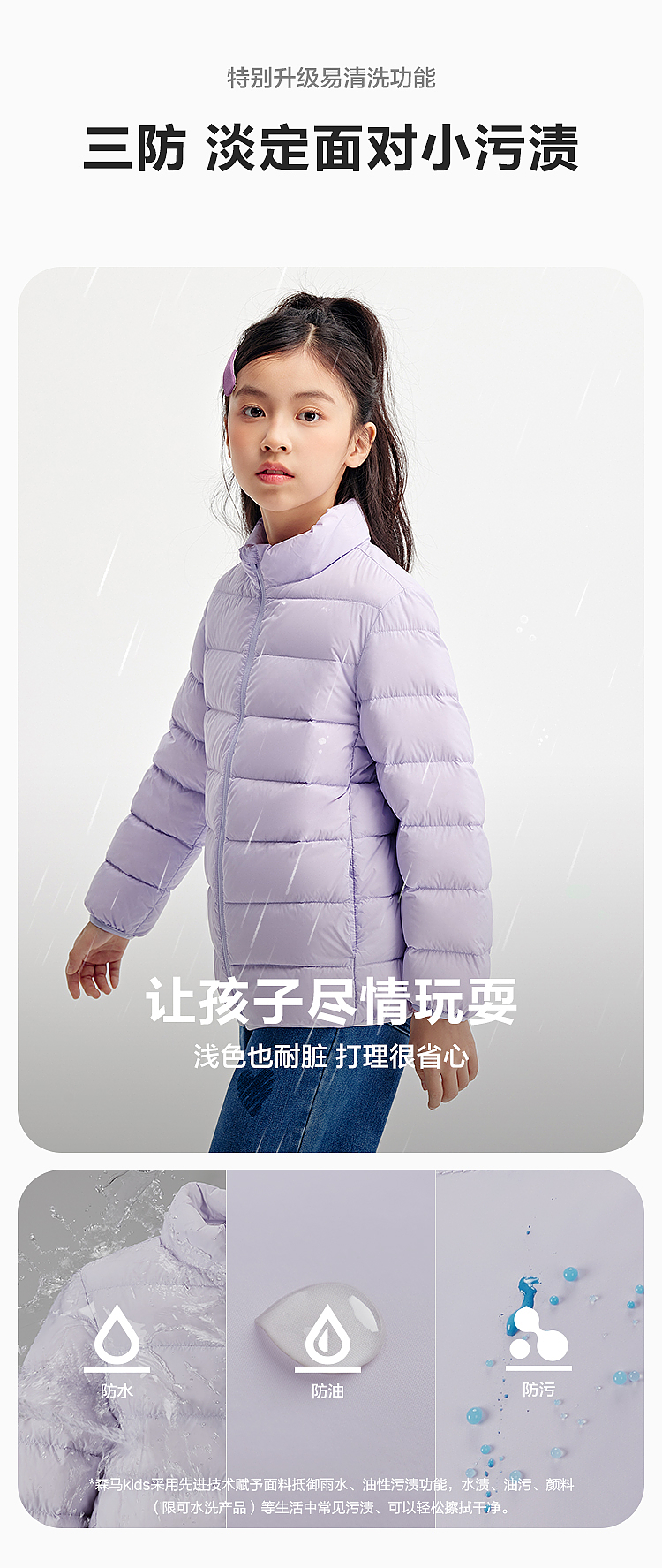 森马儿童羽绒服年新款轻薄温暖纯色百搭三防外套男童女童冬装