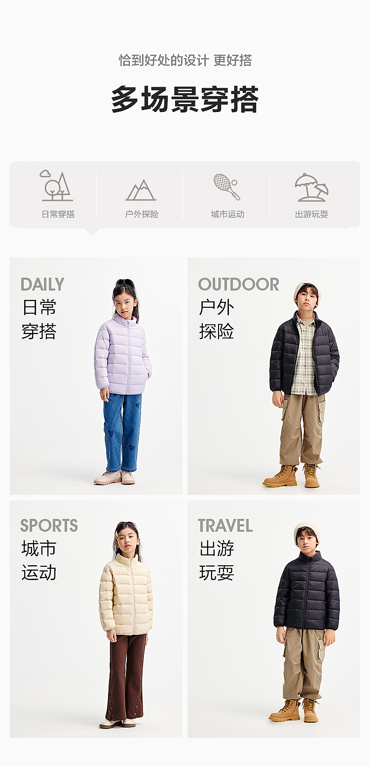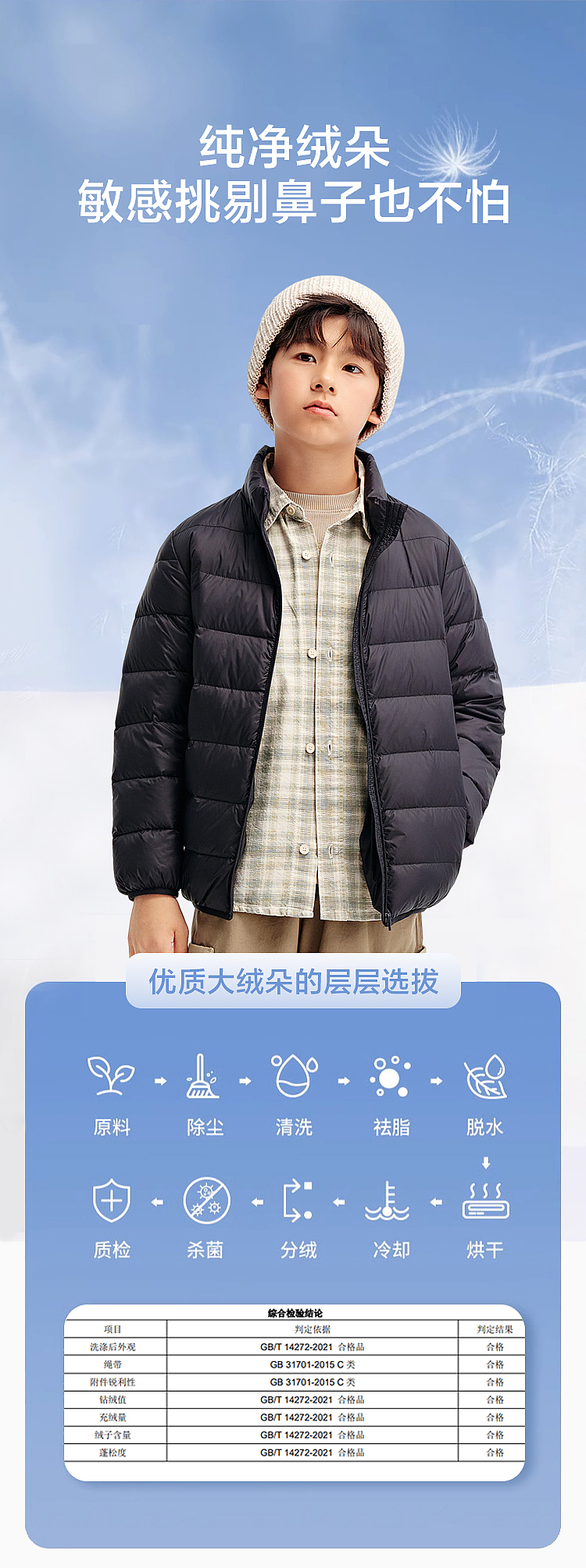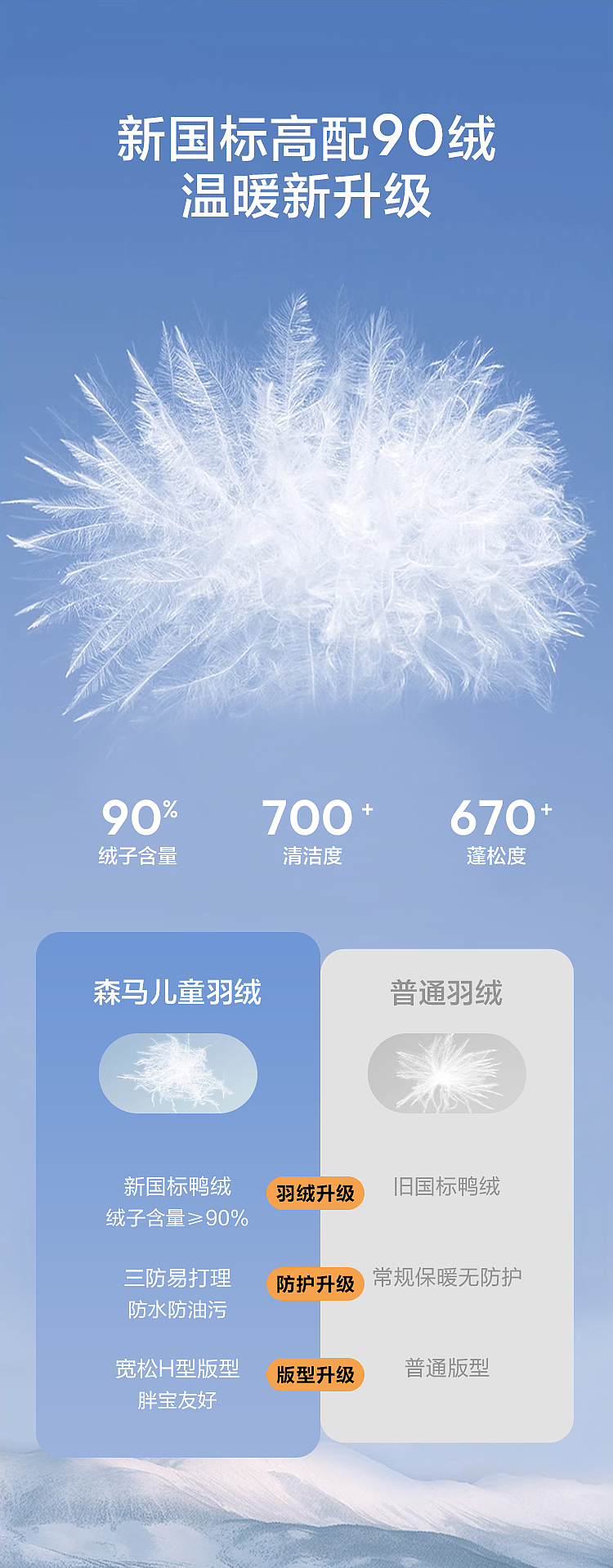 森马儿童羽绒服年新款轻薄温暖纯色百搭三防外套男童女童冬装