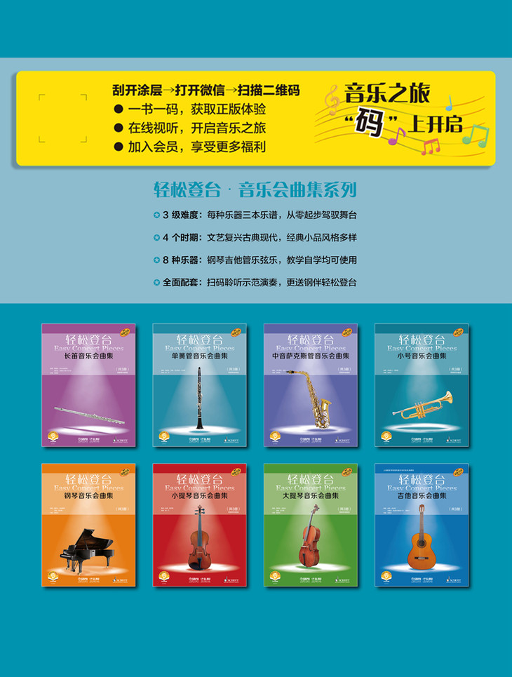 全面配套:扫码聆听示范演奏,更送钢伴轻松登台