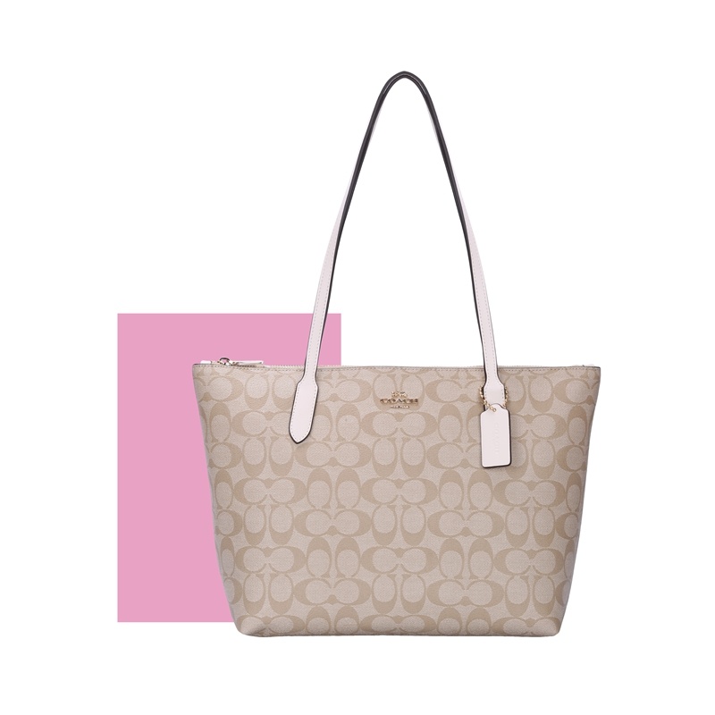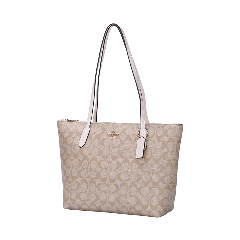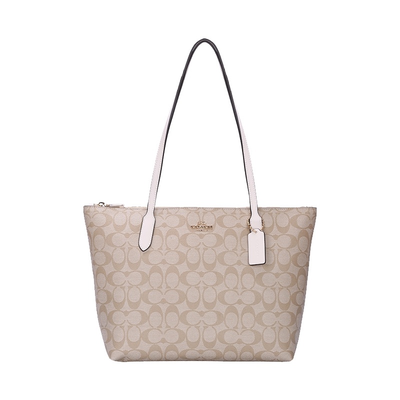 COACH 奥莱款中号女士PVC配皮单肩手提托特包