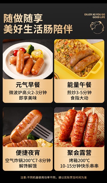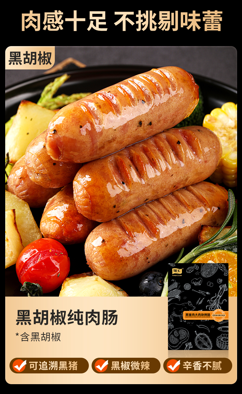 【拍1发6盒 到手48根大肉肠 大肉块肉眼可见】俊汇黑猪肉烤肠400g*6盒 一盒8根装 黑猪肉后腿纯肉爆汁烤肠 配料表干净 到手6盒48根