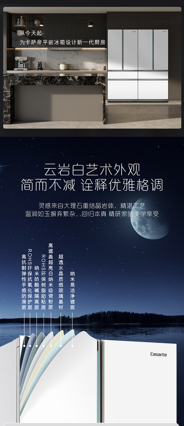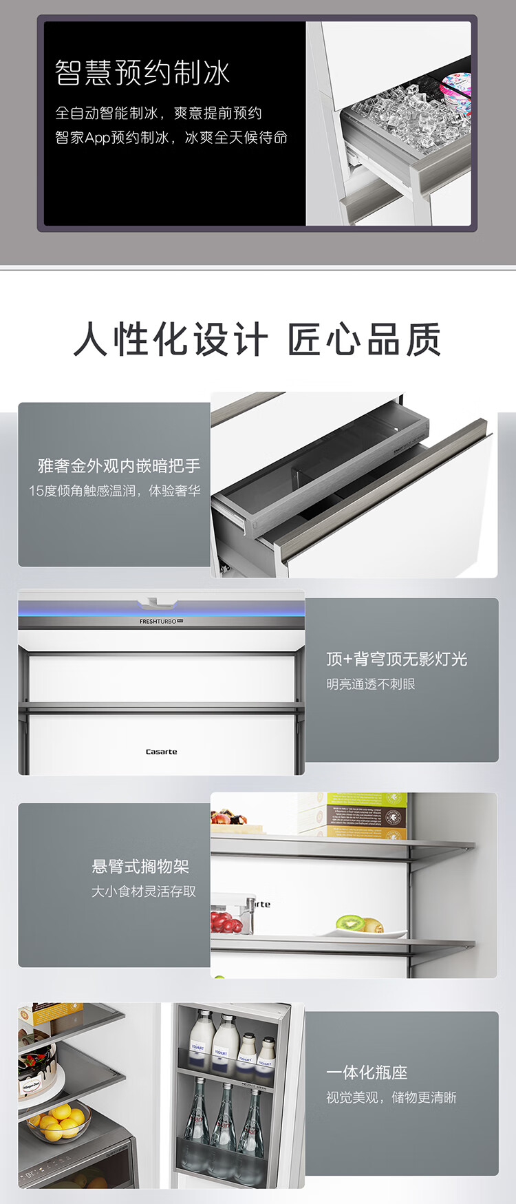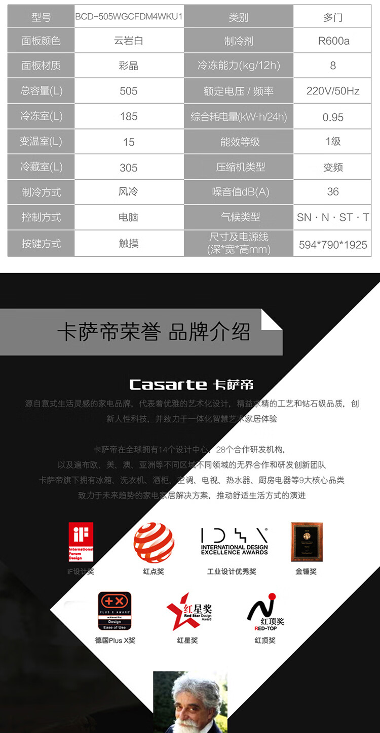 卡萨帝(Casarte)505升纯白系列原创平嵌设计师系列多门白色家用大容量高端超薄电冰箱变频BCD-505WGCFDM4WKU1