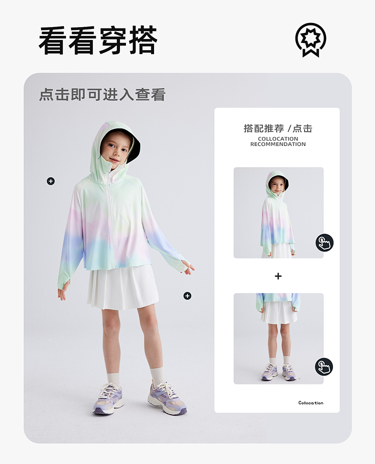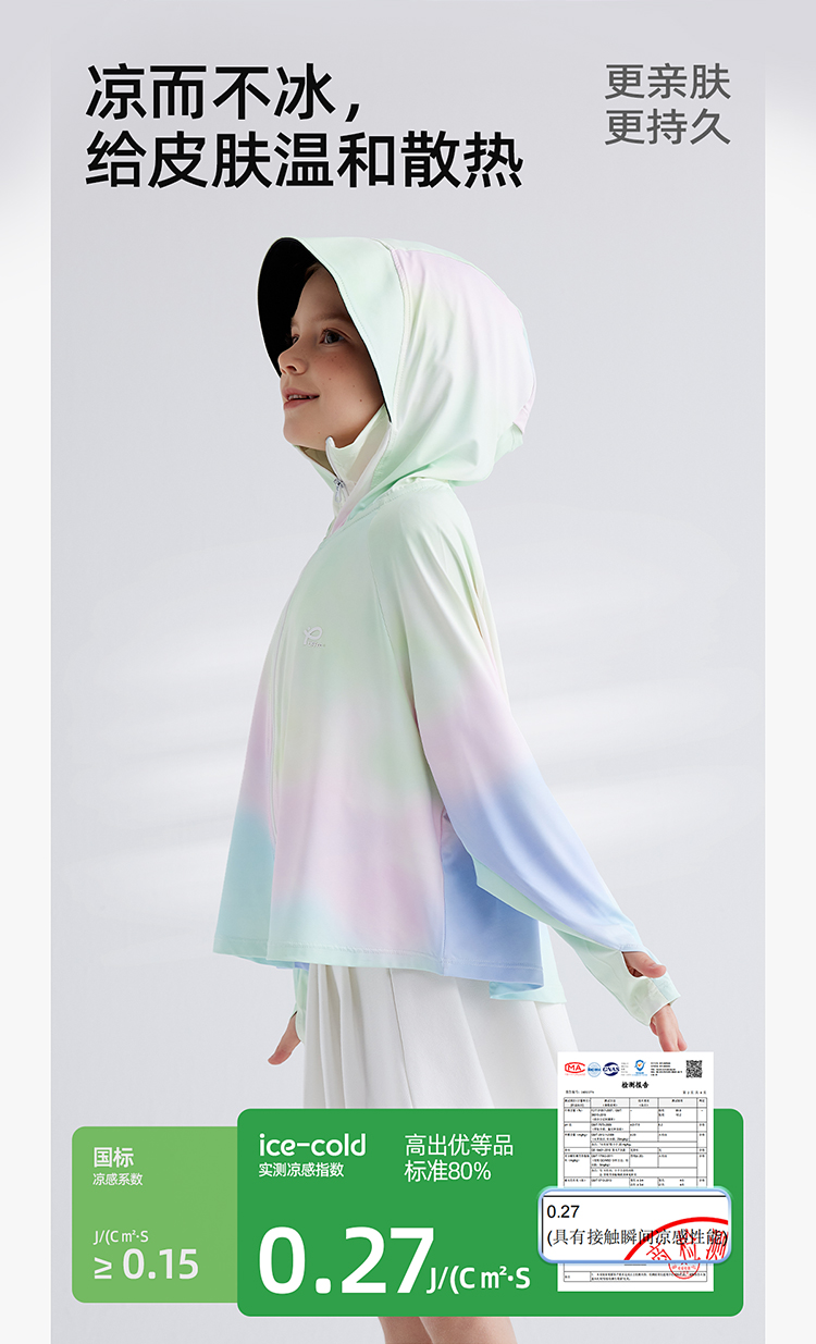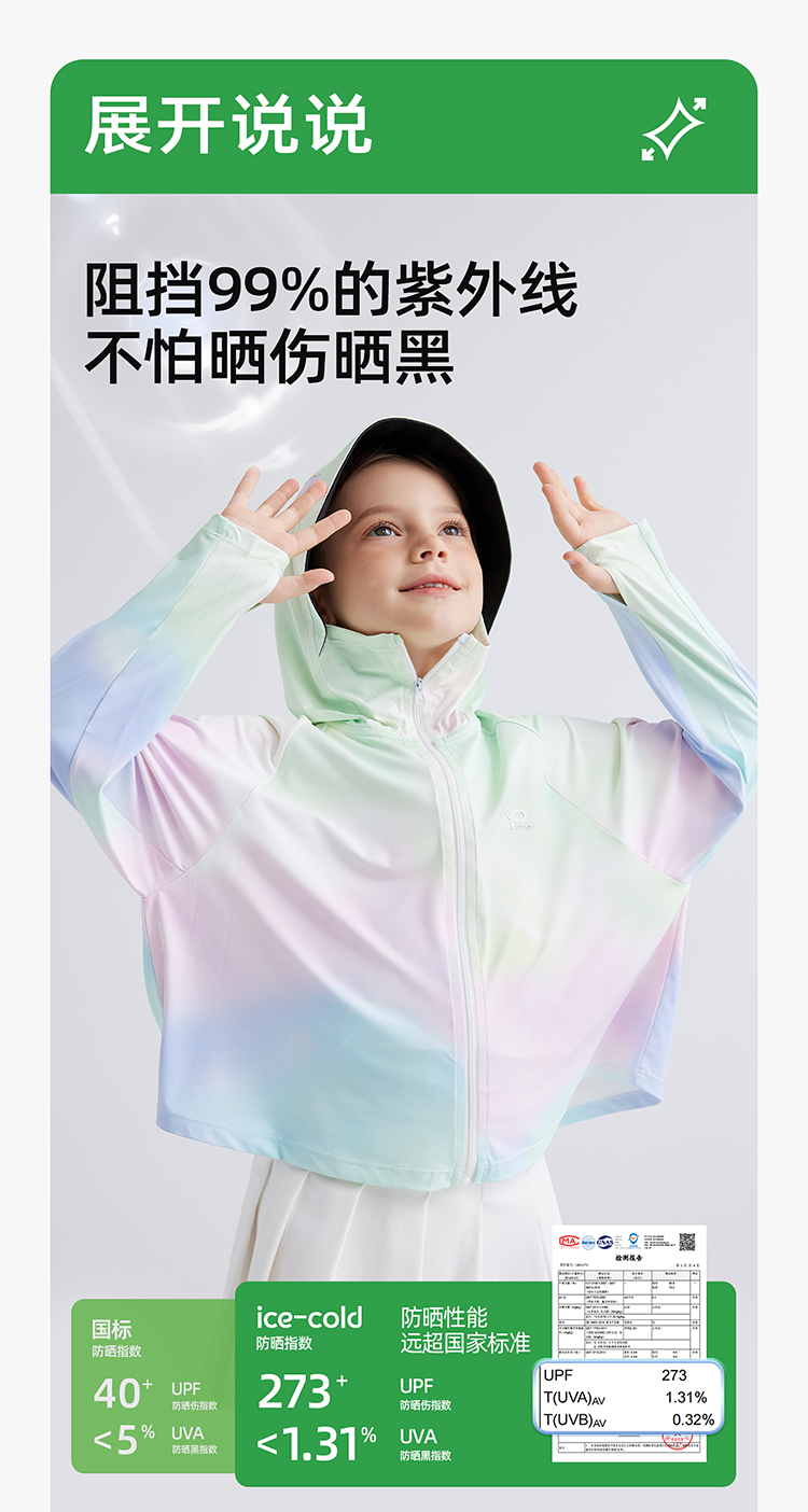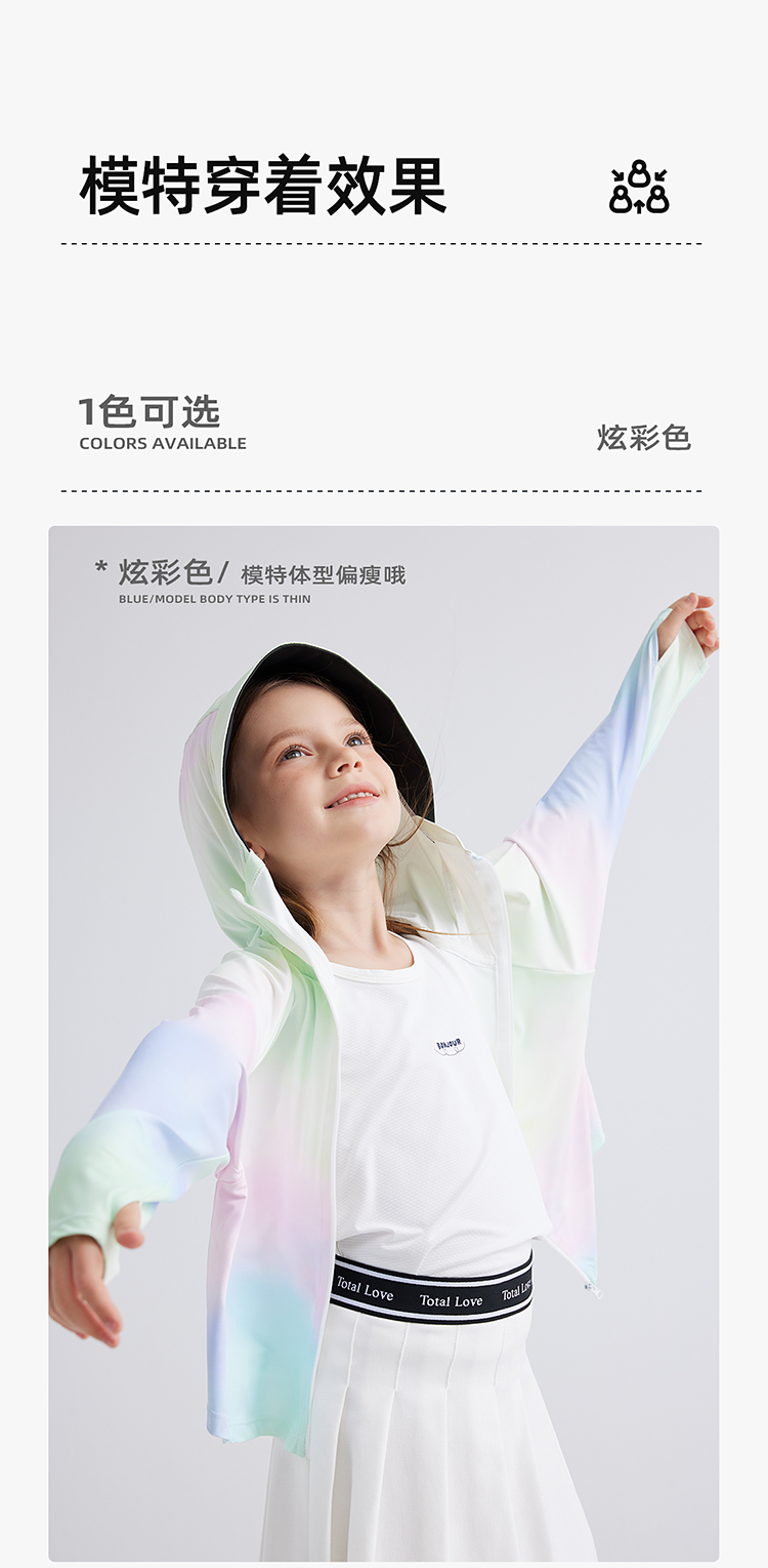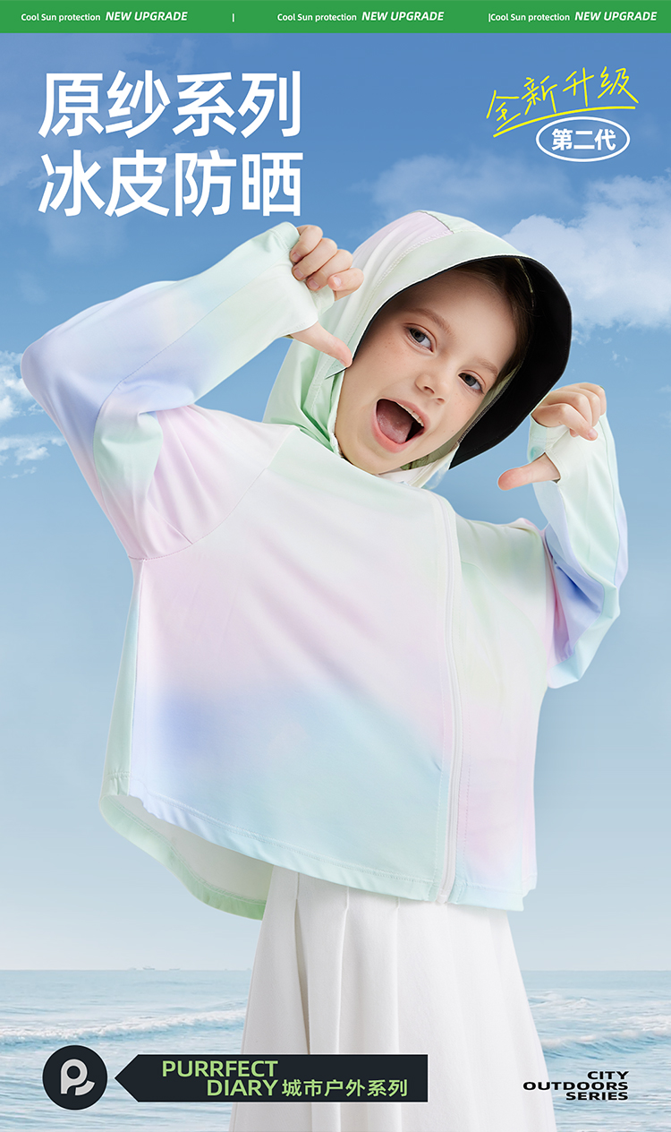 【凉感冰丝防晒 UPF100+ 升级黑胶帽檐】儿童夏日炫彩防晒外套 PXW2414