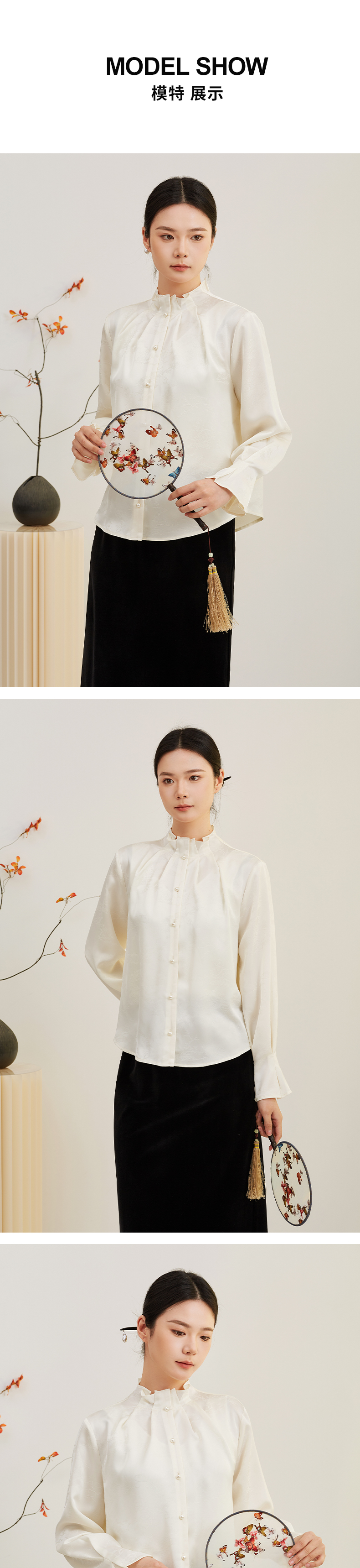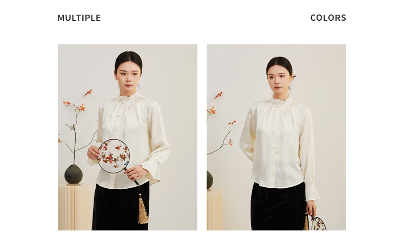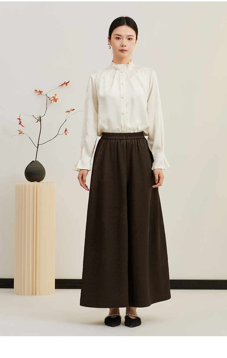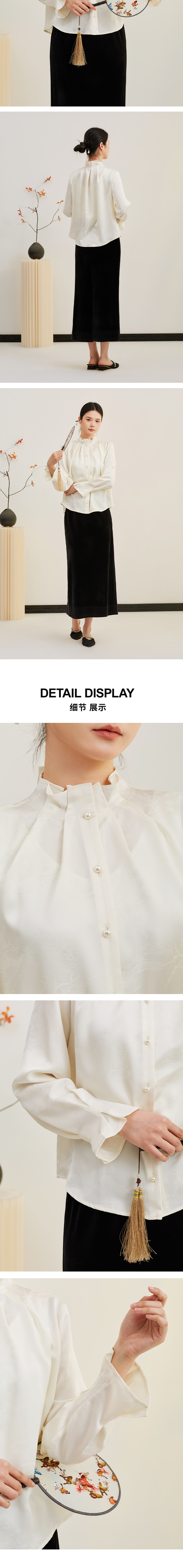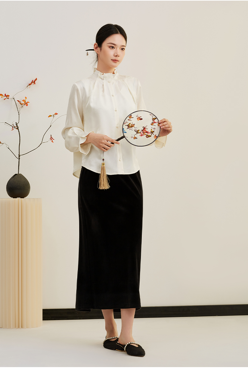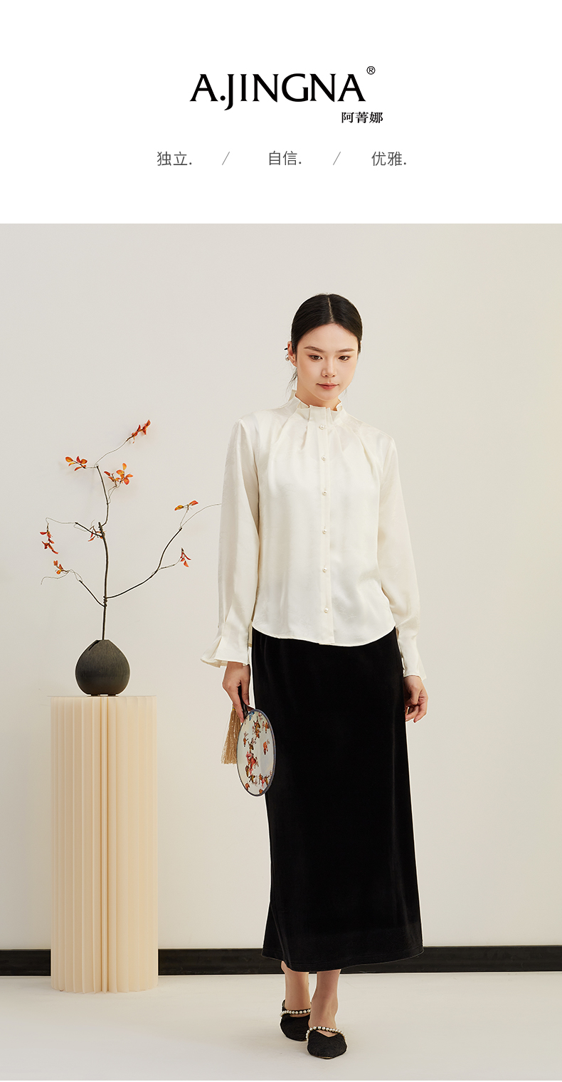 【缎面提花】阿菁娜春季新款国风衬衫立领褶皱细节微喇袖缎面提花光泽感单穿内搭皆出彩F31C202001