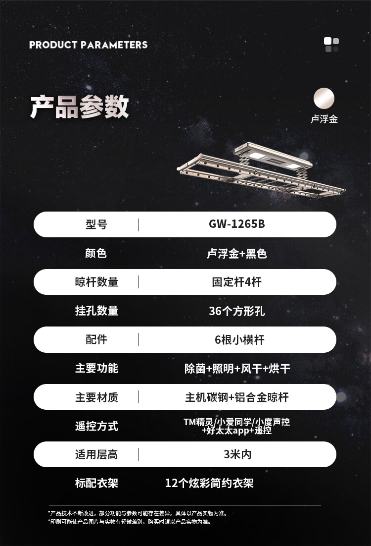 好太太电动晾衣架 魔方系列 杀菌烘干照明多功能智能晾衣机 GW-1265B