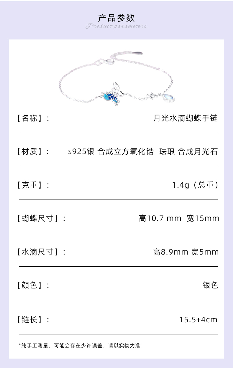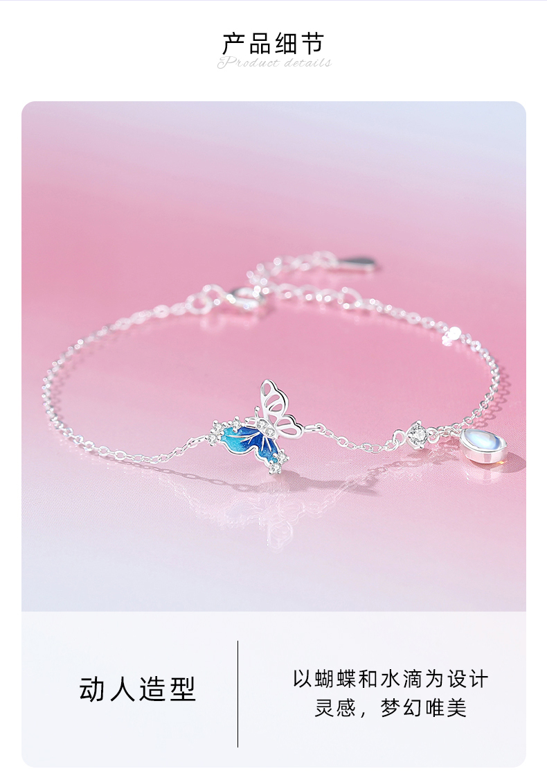 卡蒂罗/KADER 在逃公主系列 月光水滴蝴蝶手链 轻奢精致克莱因蓝梦幻可调节 女朋友闺蜜纪念日提礼物