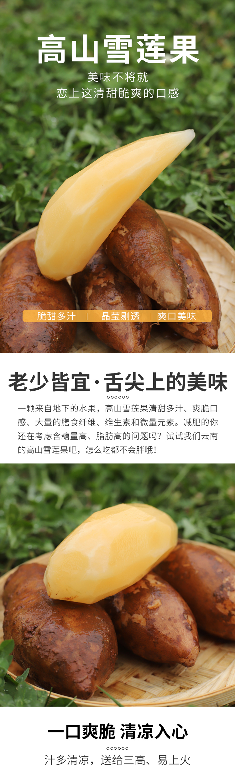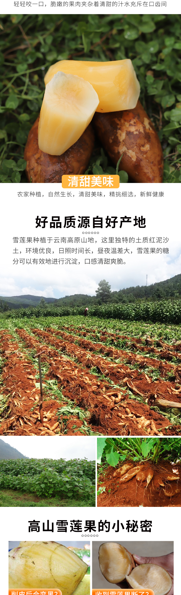 云南高山雪莲果 果肉清甜爽脆 汁水充盈 口感脆嫩多汁 果肉晶莹剔透 气泡柱装 包邮