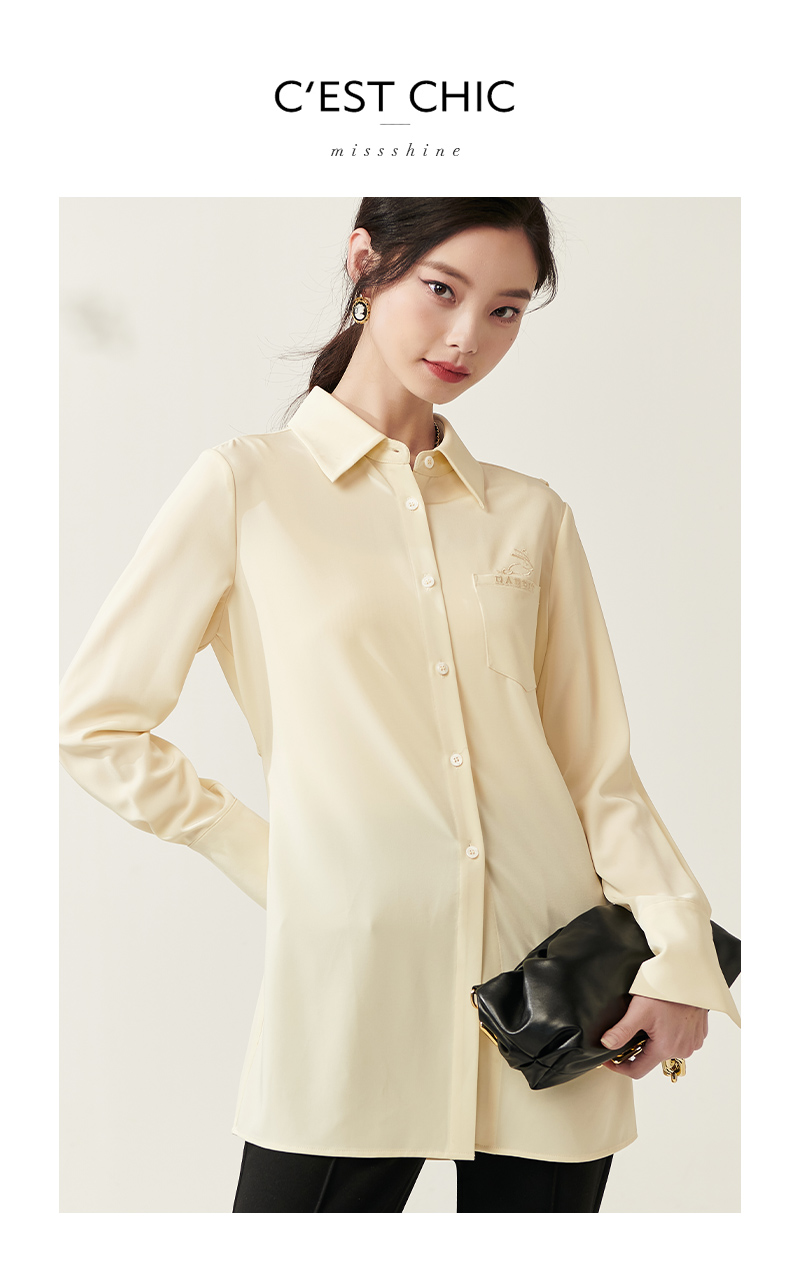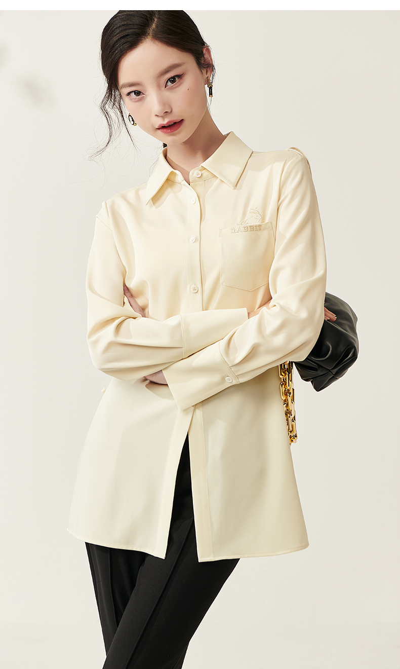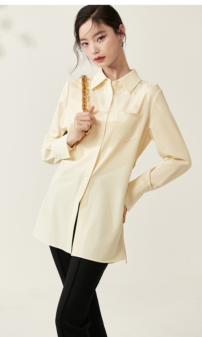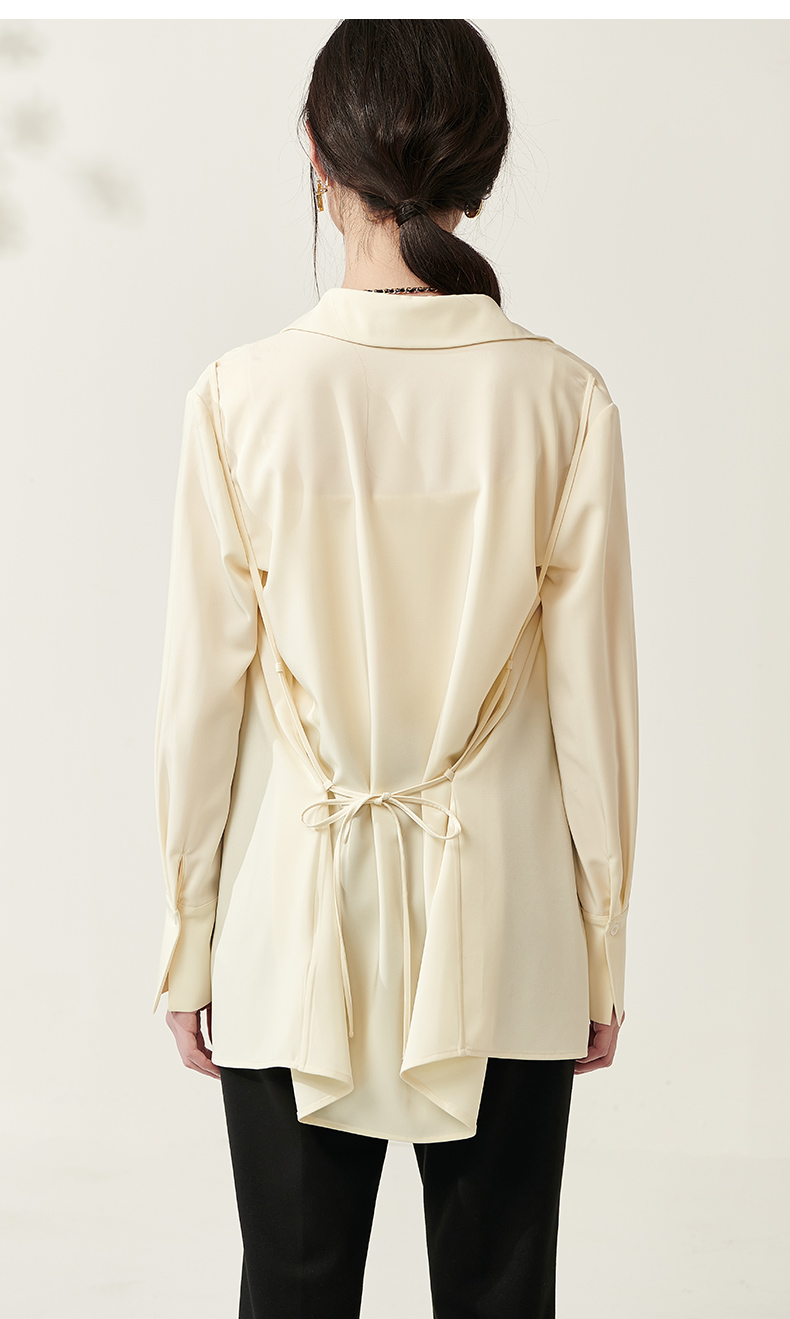 剩S/M/L/XL 芳外新款设计感绑带收腰淡黄色衬衫简约中长款衬衣女8T23AC0030