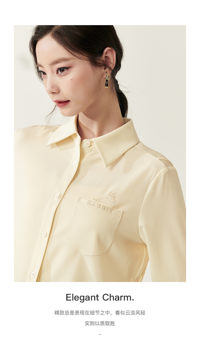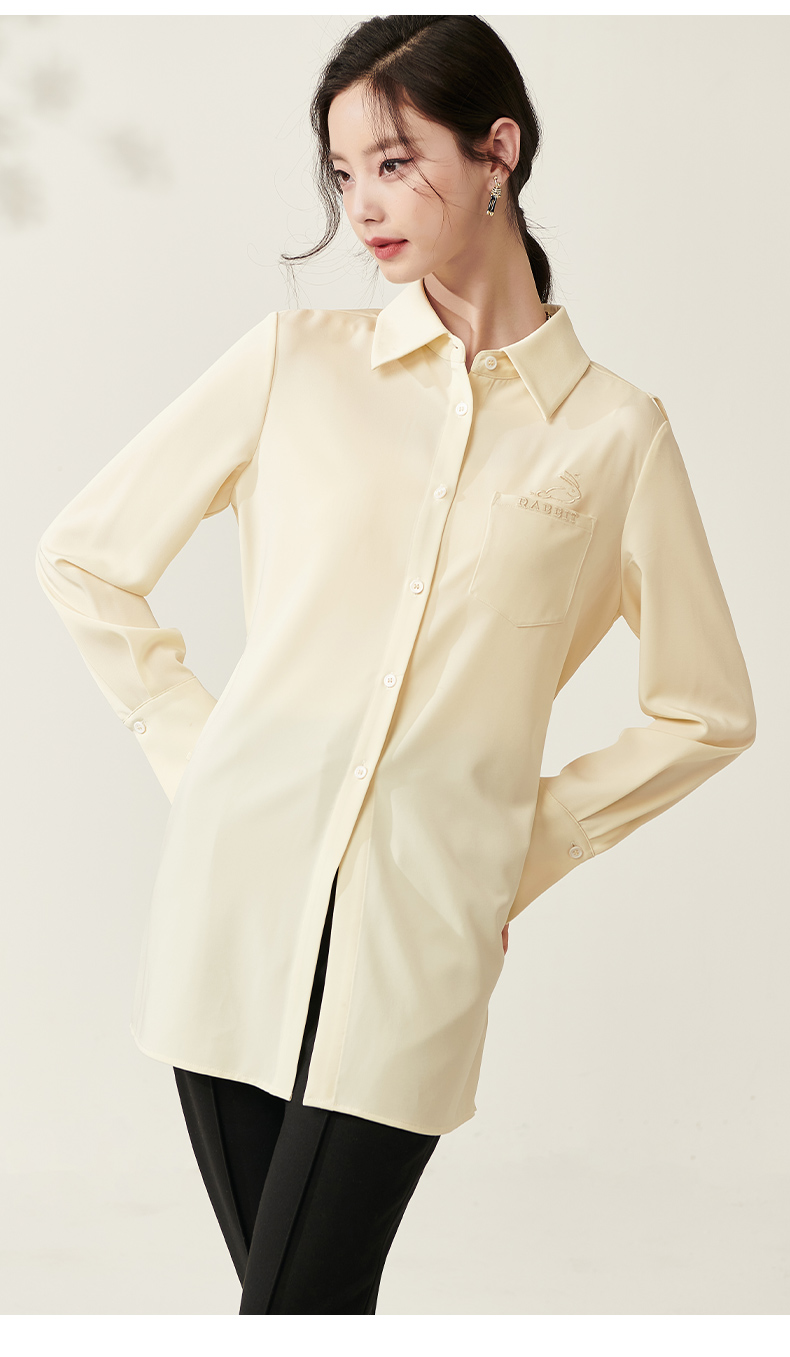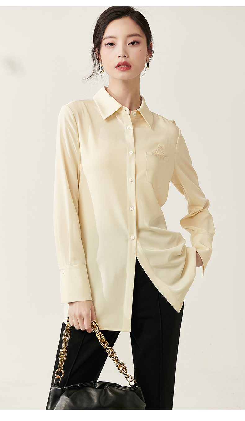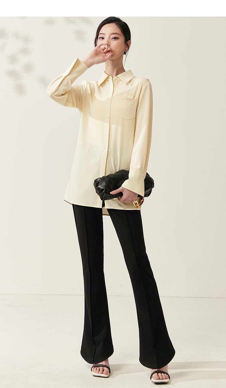 剩S/M/L/XL 芳外新款设计感绑带收腰淡黄色衬衫简约中长款衬衣女8T23AC0030