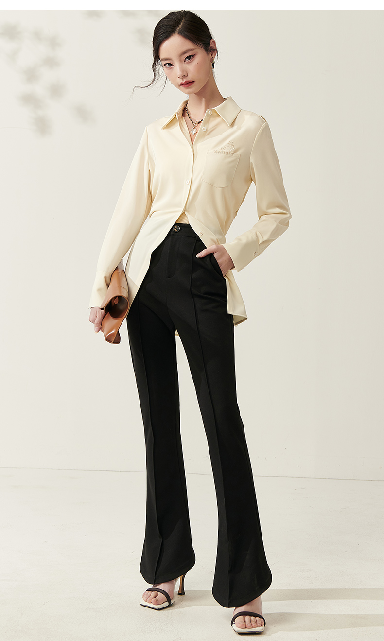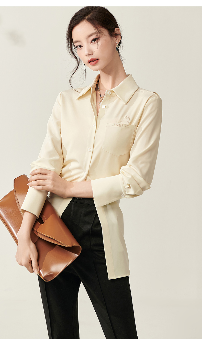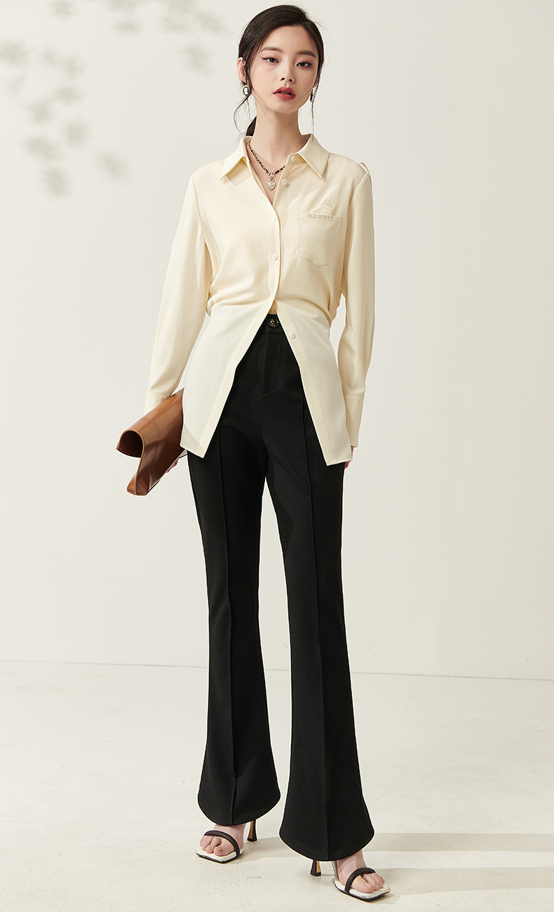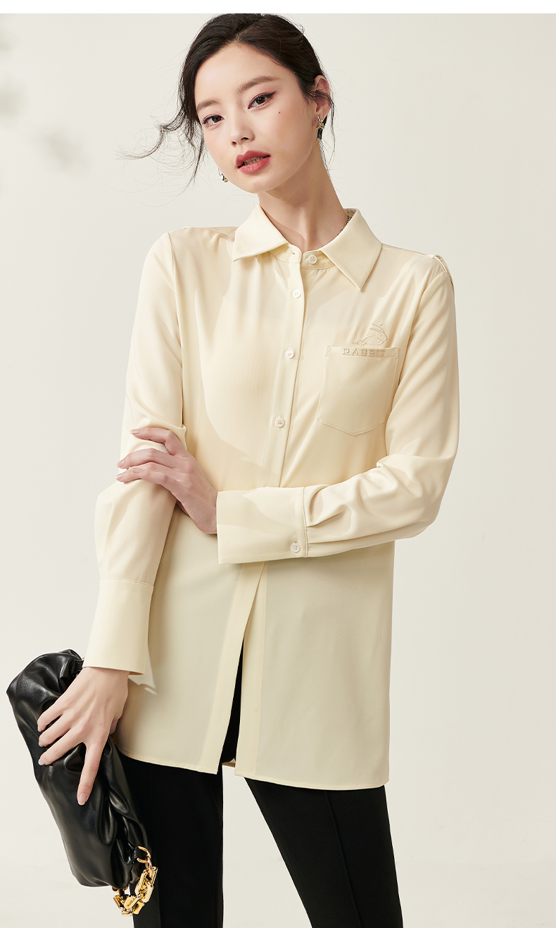 剩S/M/L/XL 芳外新款设计感绑带收腰淡黄色衬衫简约中长款衬衣女8T23AC0030