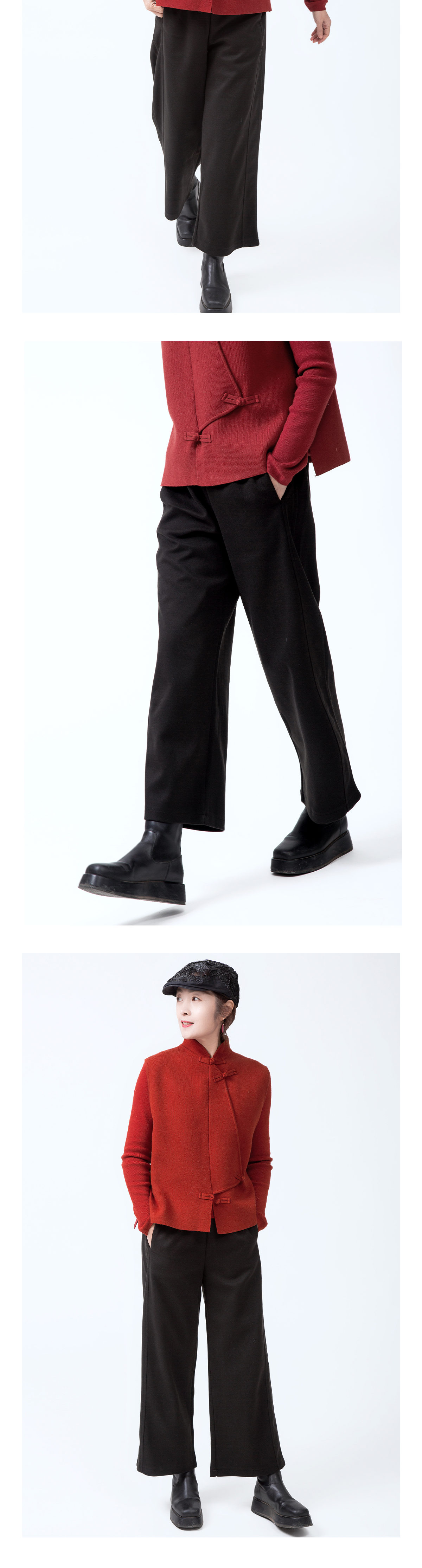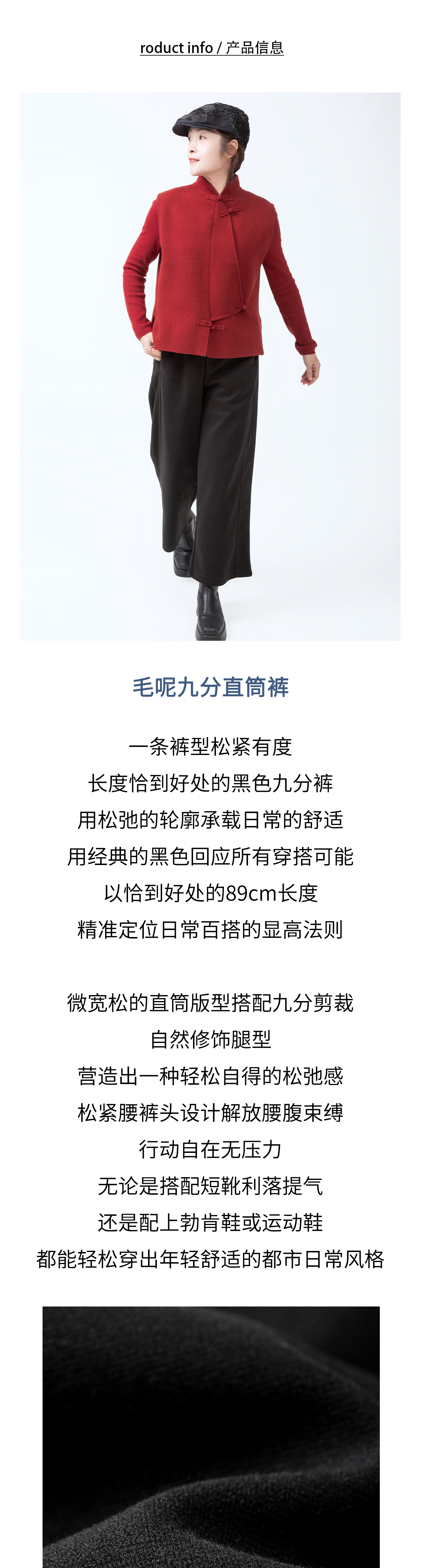毛呢九分直筒裤
