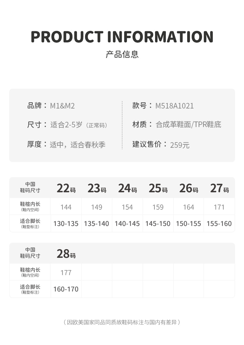 M1&M2西班牙童鞋男女宝幼儿园室内鞋一脚蹬M20566