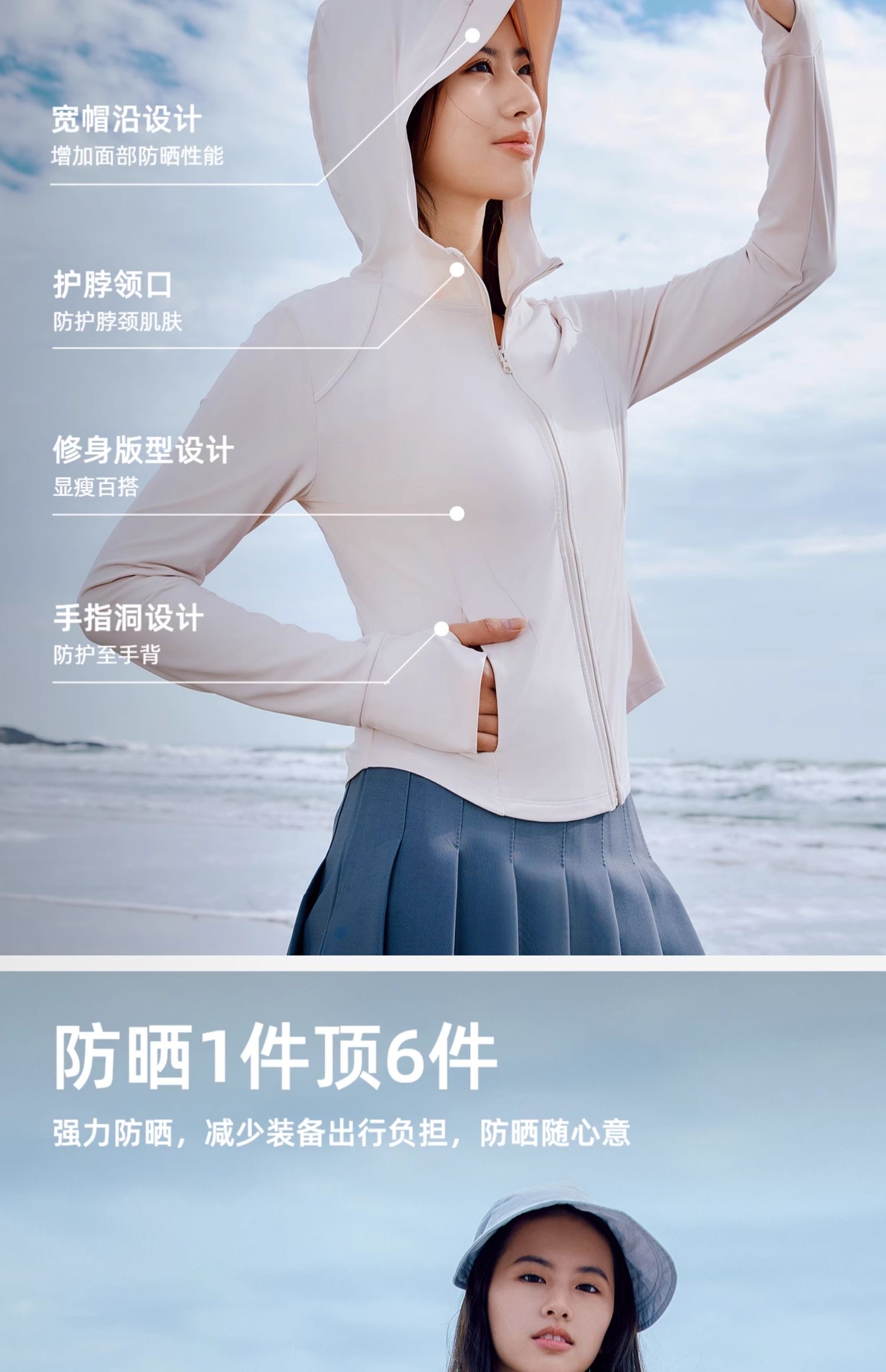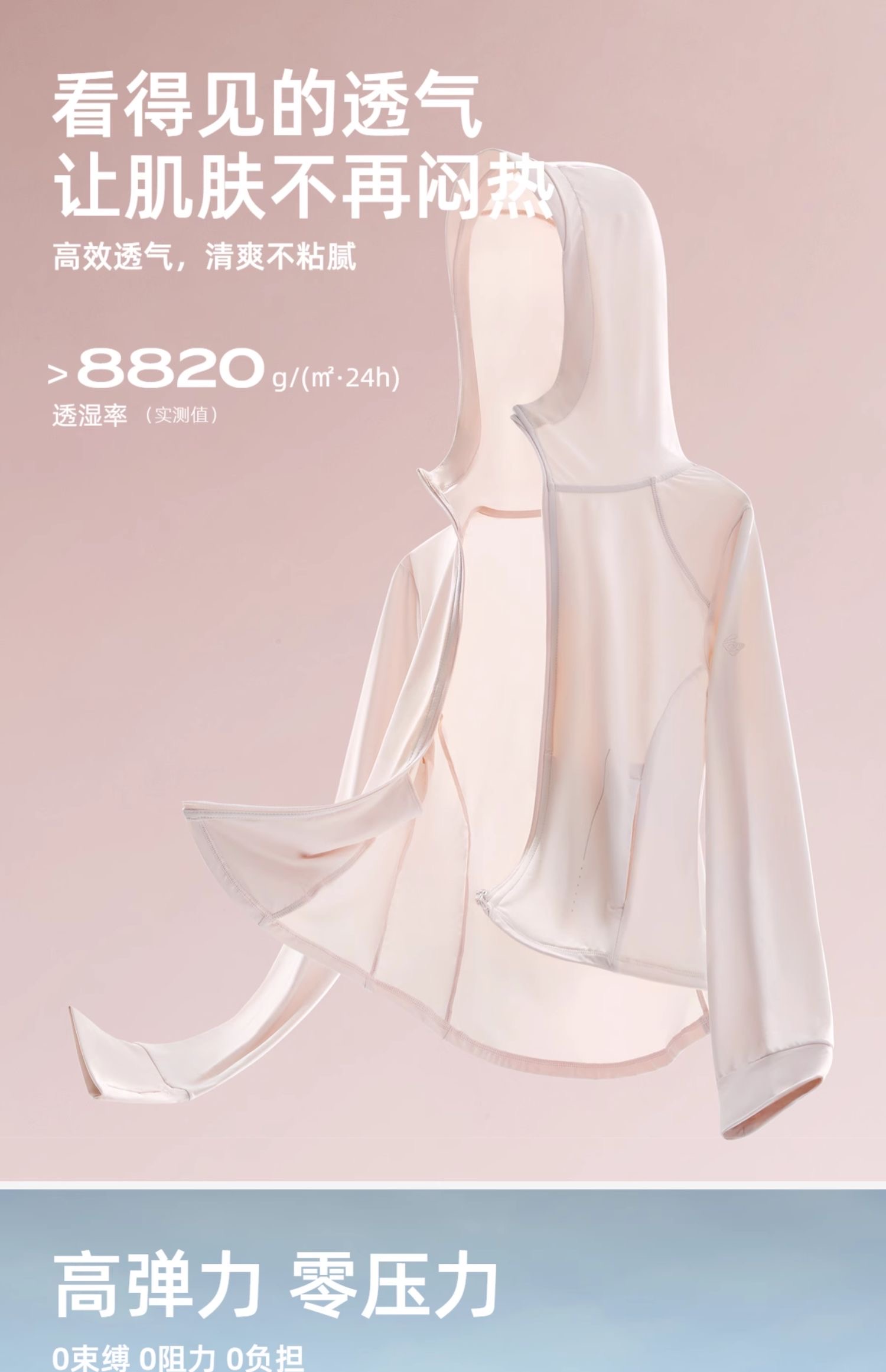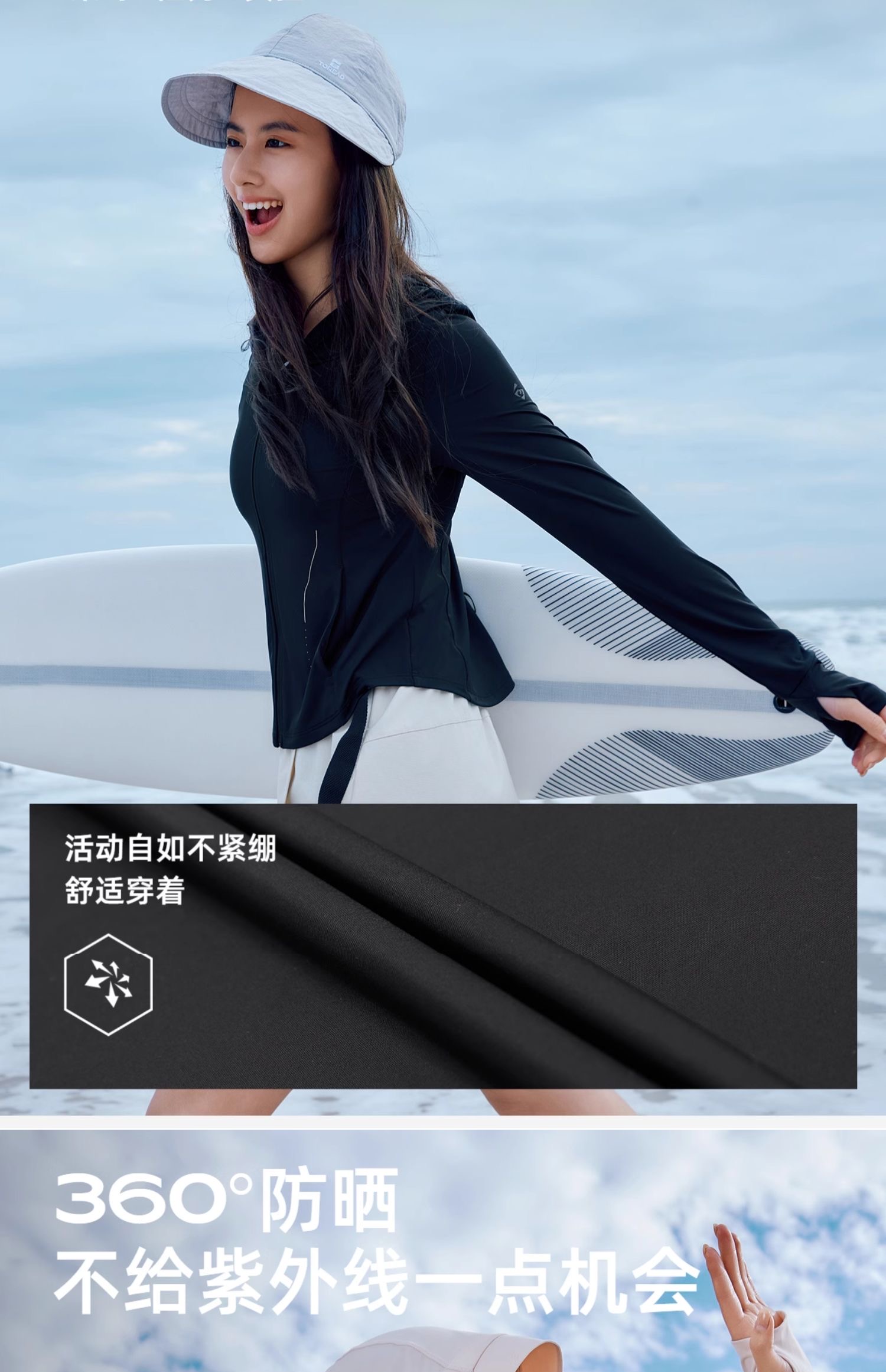 特!探路者* 纯元,ufp50+!防晒防紫外线原纱凉感运动皮肤衣 修身显瘦大弹力轻盈防晒外套~