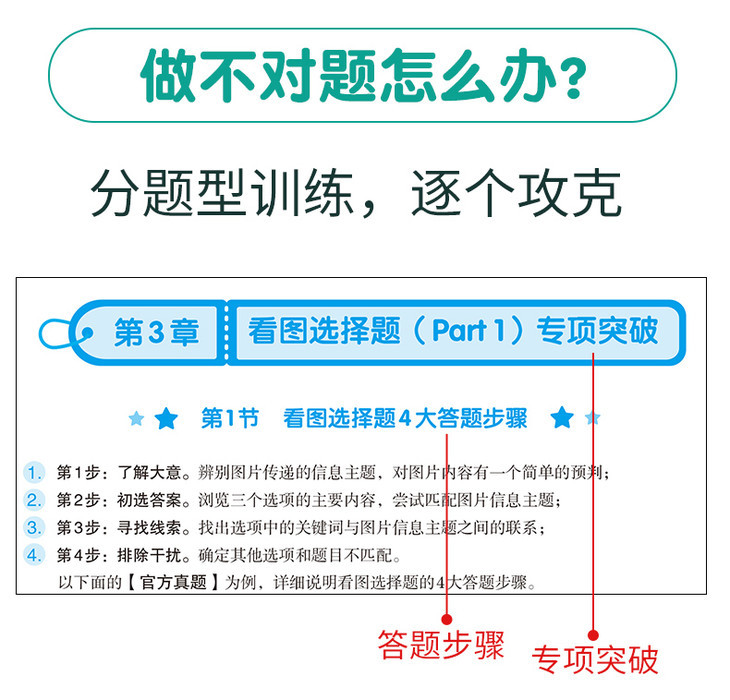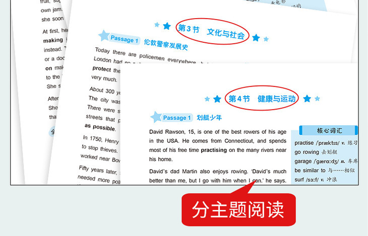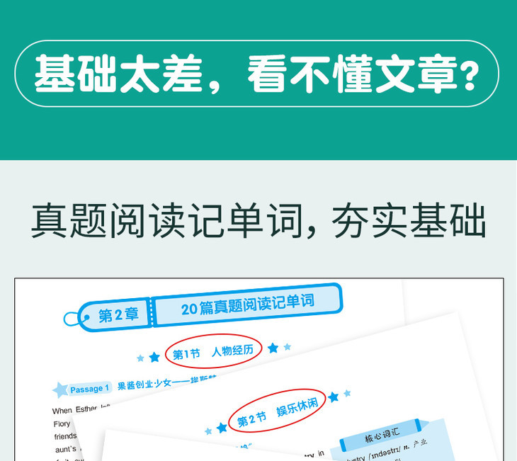 5.第一阶段的夯实基础,通过20篇不同类别、难度近似的真题文章,快速提升词汇量,解决“看不懂”的问题;