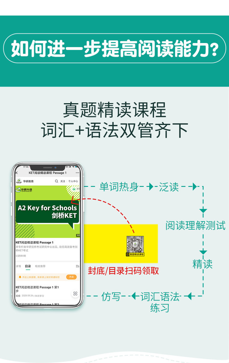 备考新版剑桥KET考试的学生;需要强化阅读技能的考生;因词汇量不足,看不懂KET阅读真题的学生;想要在KET考试阅读部分取得高分的学生;需要指导学生备考KET的培训机构老师及家长;英语阅读基础一般的小学生;小学三到六年级需要提高阅读能力的学生。
