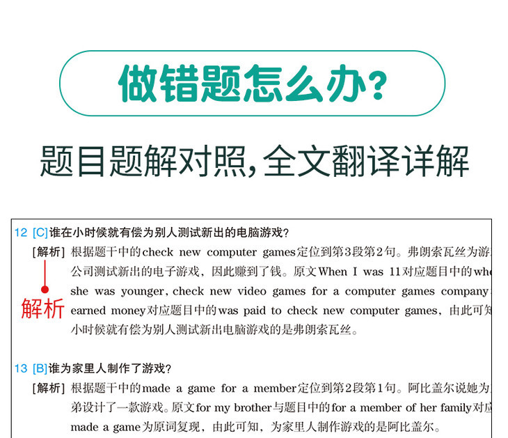 7.第三阶段,10套全真模拟试题,选材长度、难度、形式高度贴近真题,附有全文翻译和答案详解,精准刷题,解决“得分率不稳定”的问题;