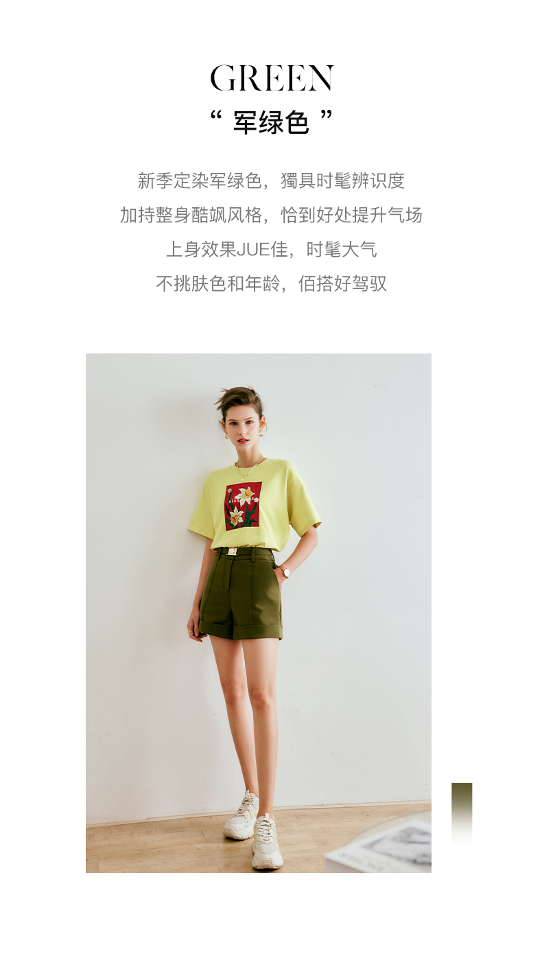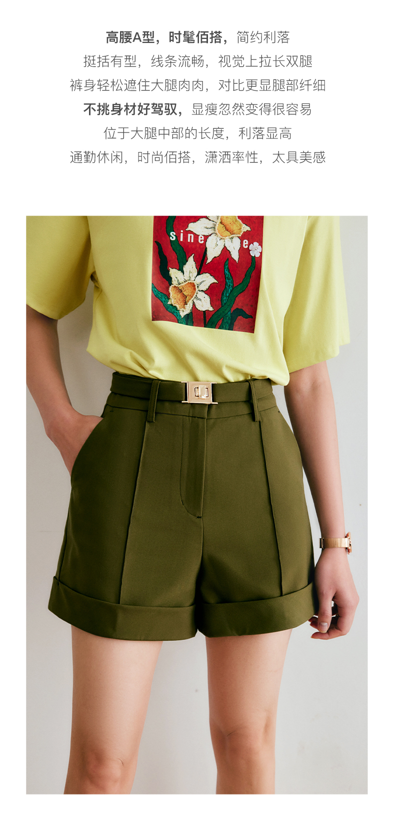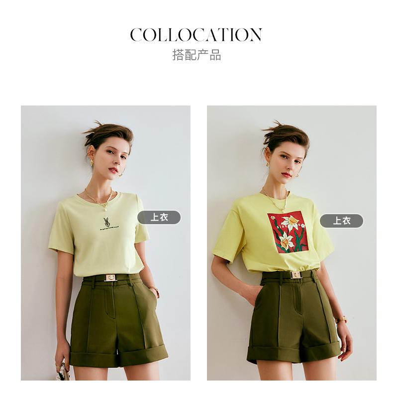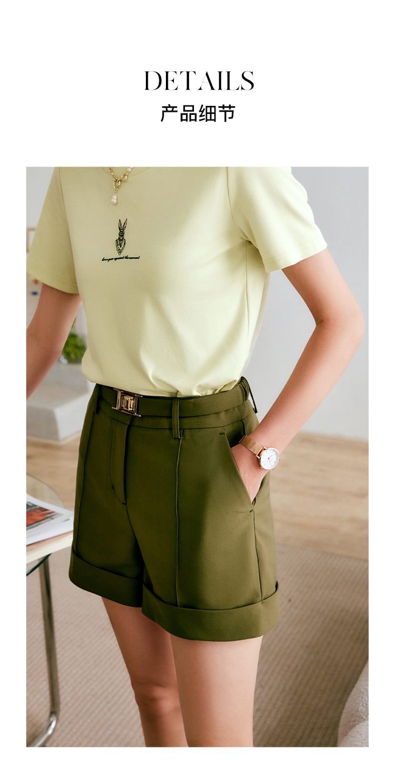 欧芮儿短款休闲裤女夏季2022年新款高腰时尚直筒阔腿翻边西装裤子