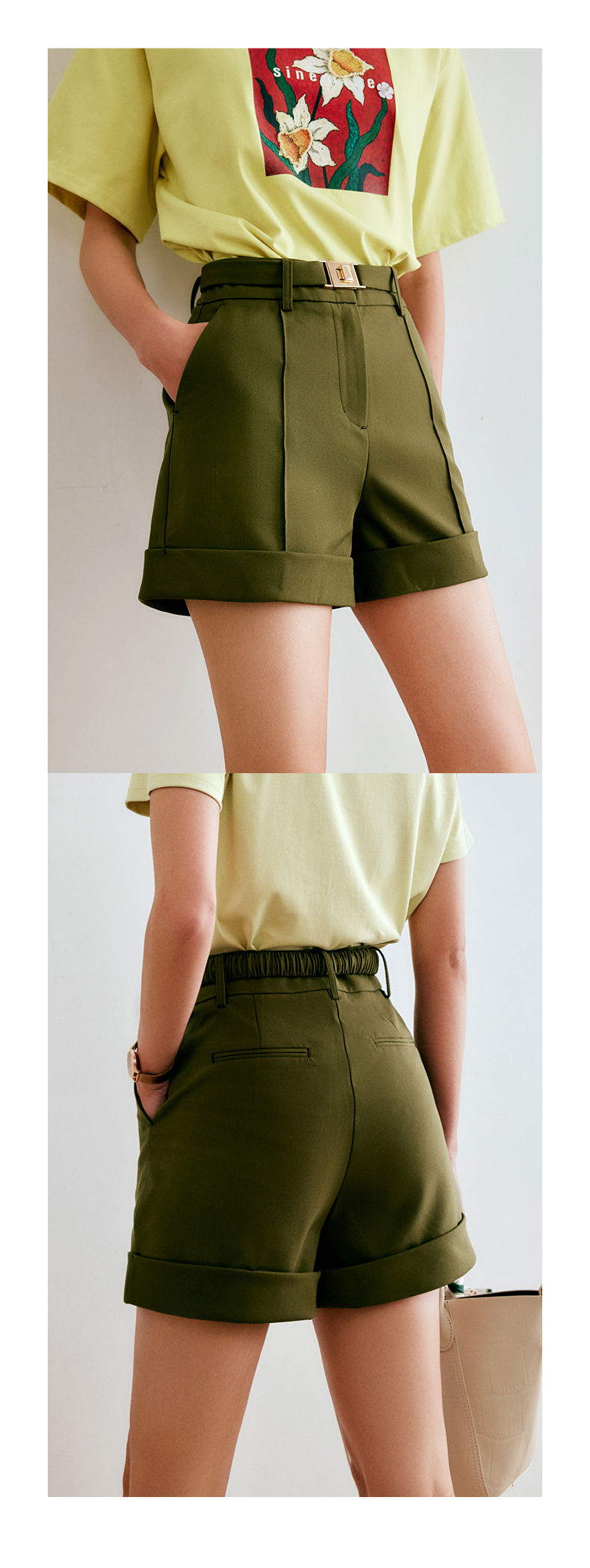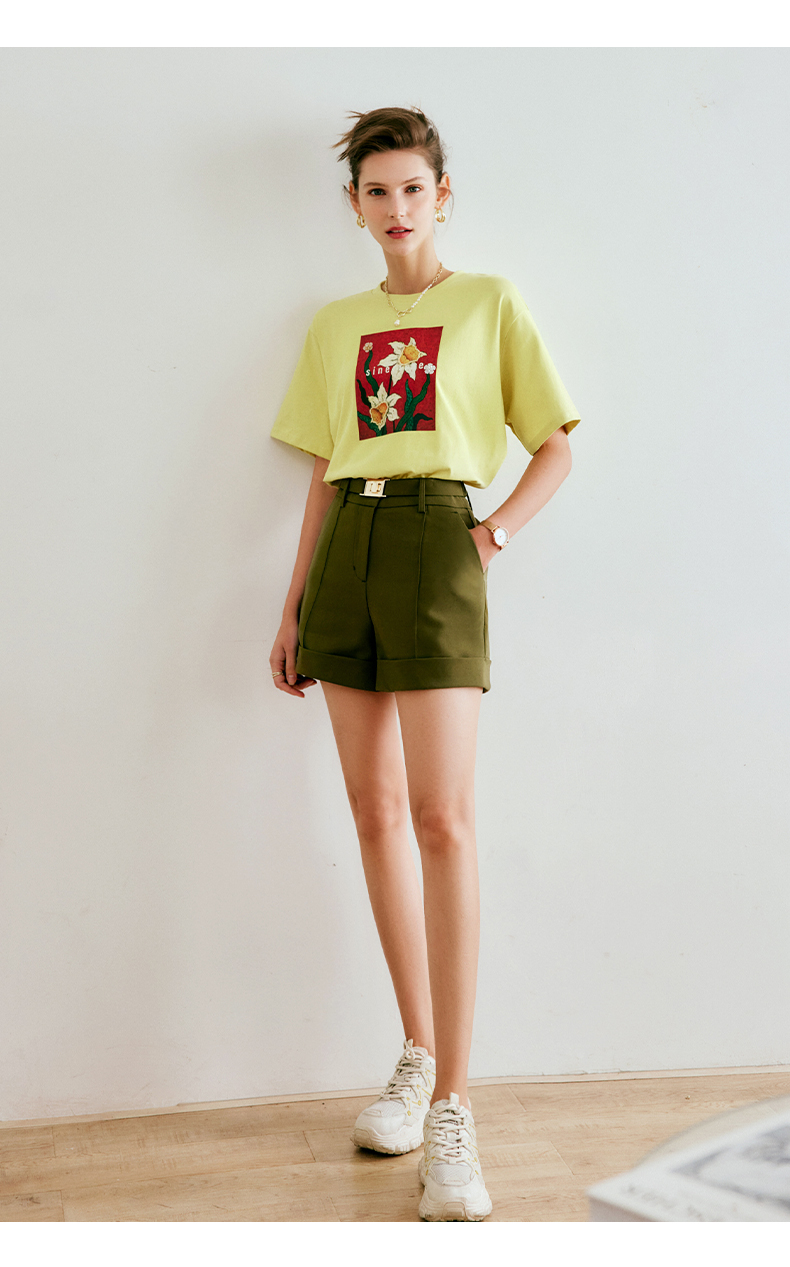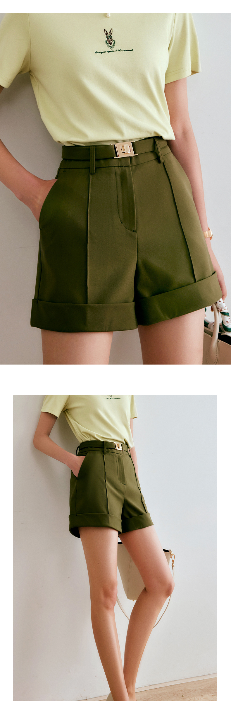 欧芮儿短款休闲裤女夏季2022年新款高腰时尚直筒阔腿翻边西装裤子