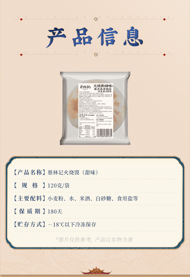 【89元任选8件】蔡林记火烧馍(甜味)120g*4袋