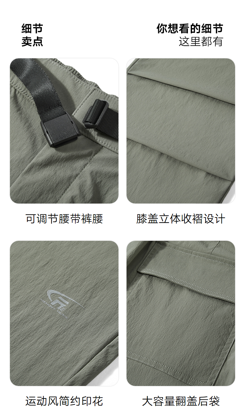 【吸湿速干】GXG男装 宽松直筒伞兵裤轻薄工装裤男 25年夏季新品