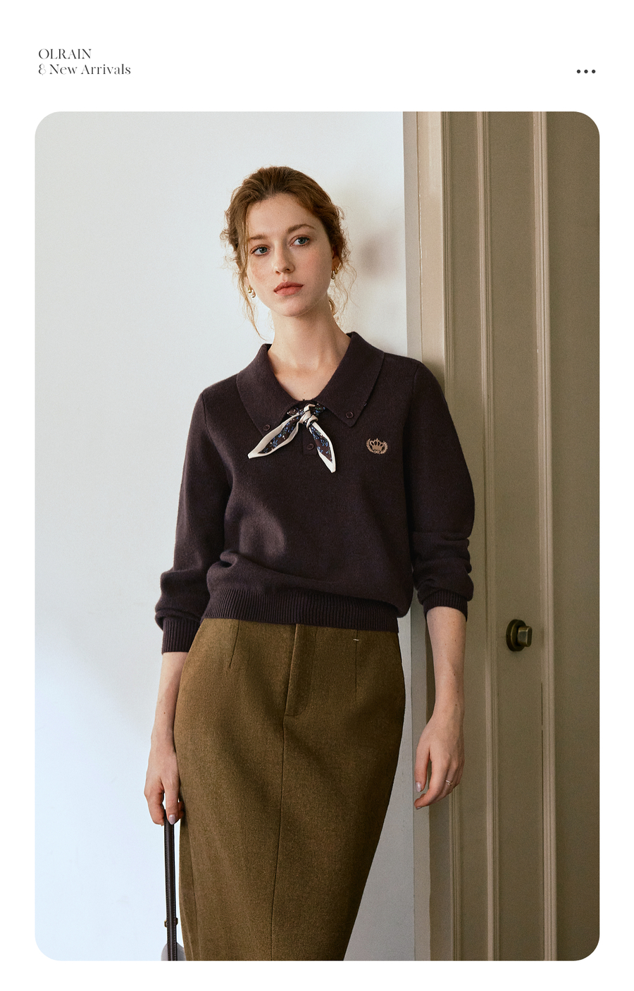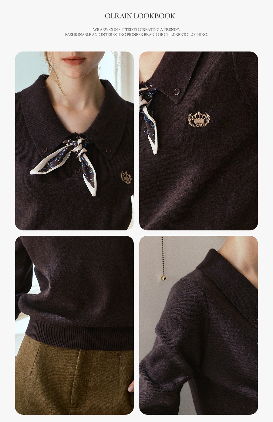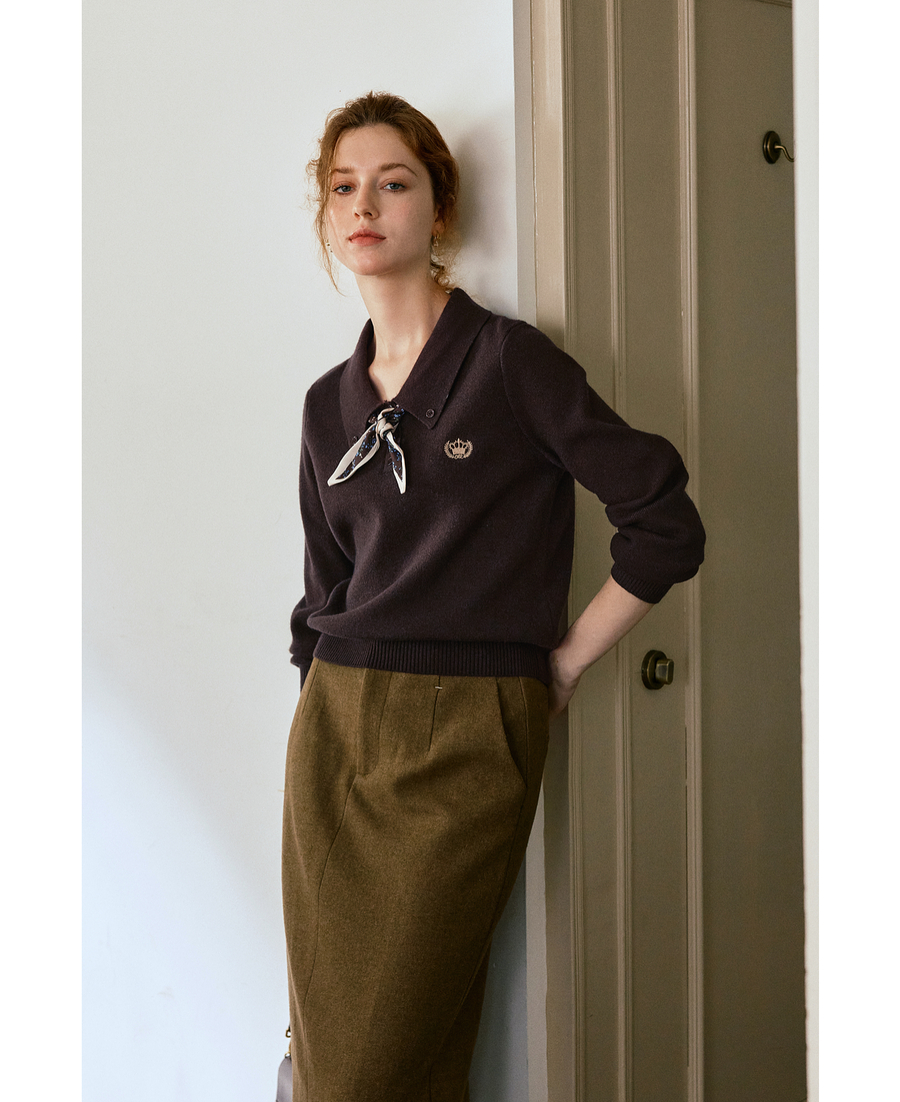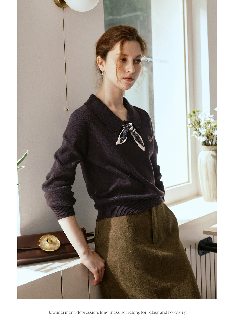 OLrain欧芮儿POLO领通勤风毛织套头衫女秋季2025新款搭配丝巾毛衣