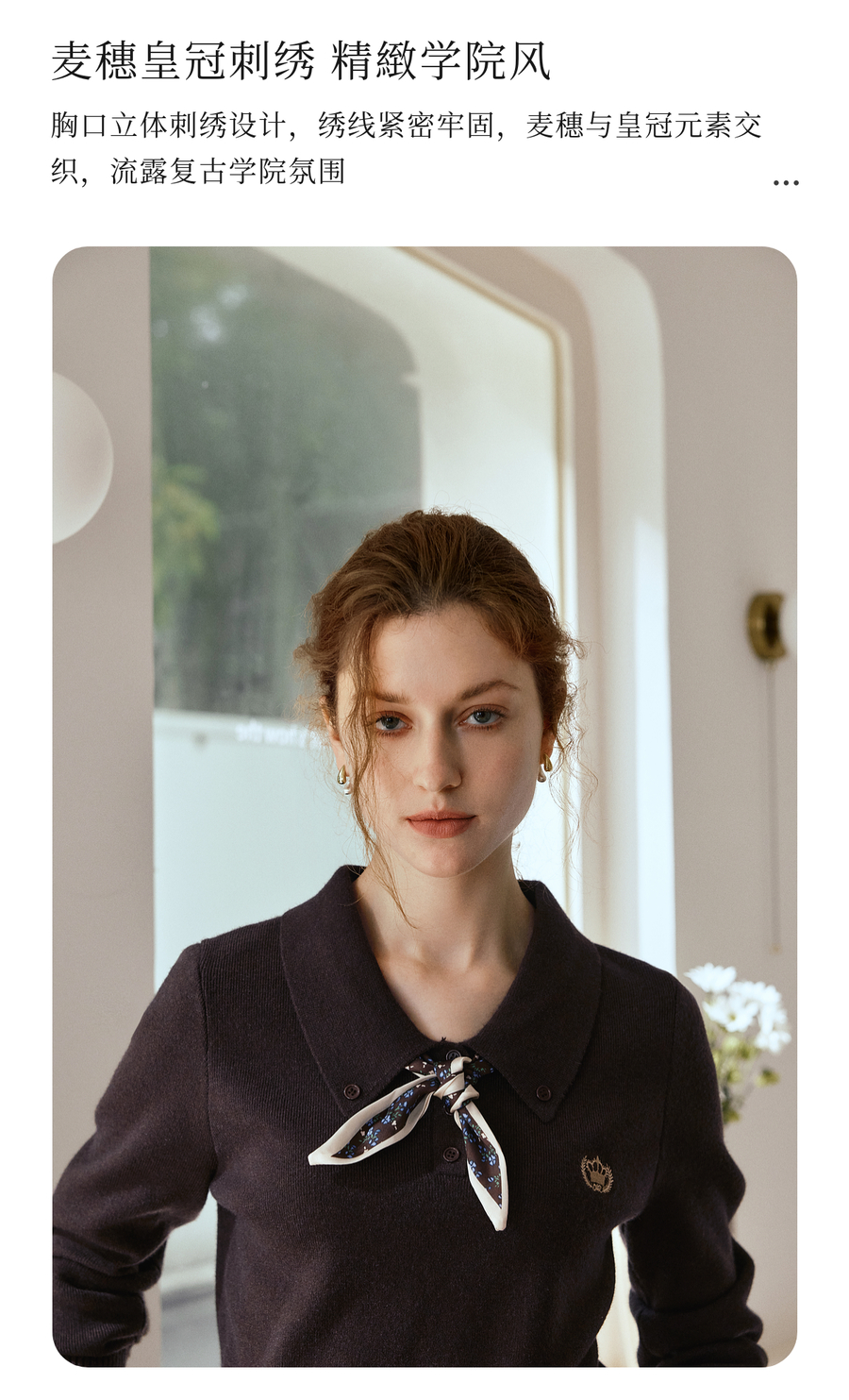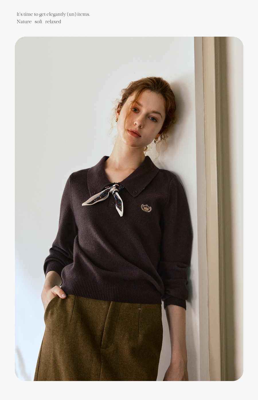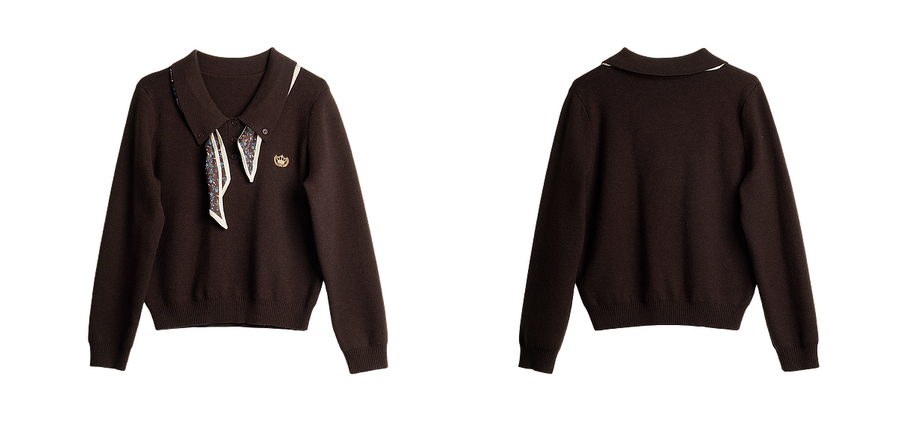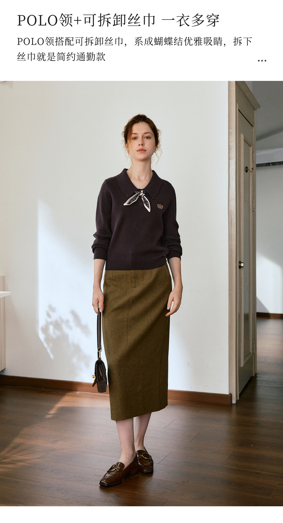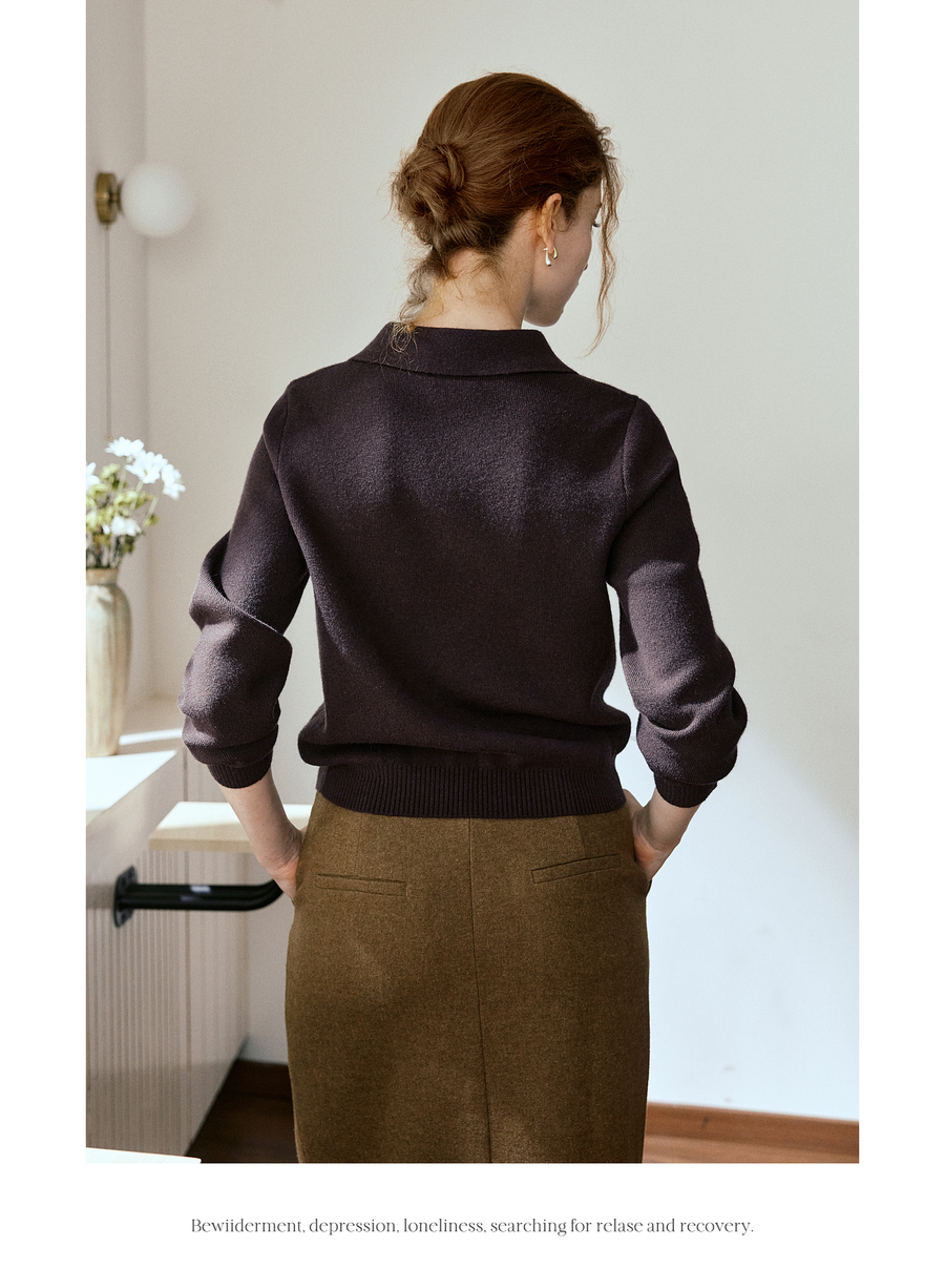 OLrain欧芮儿POLO领通勤风毛织套头衫女秋季2025新款搭配丝巾毛衣