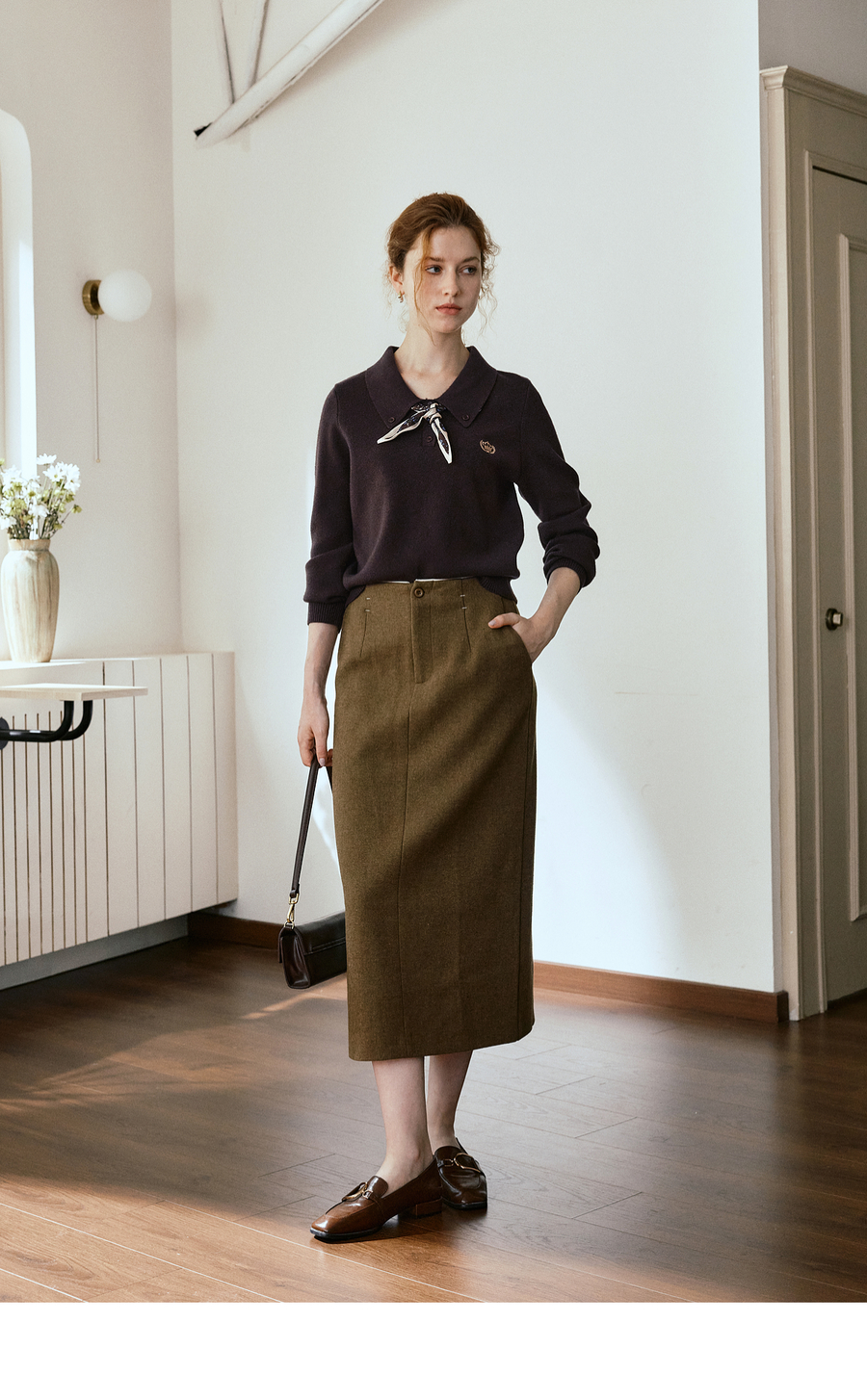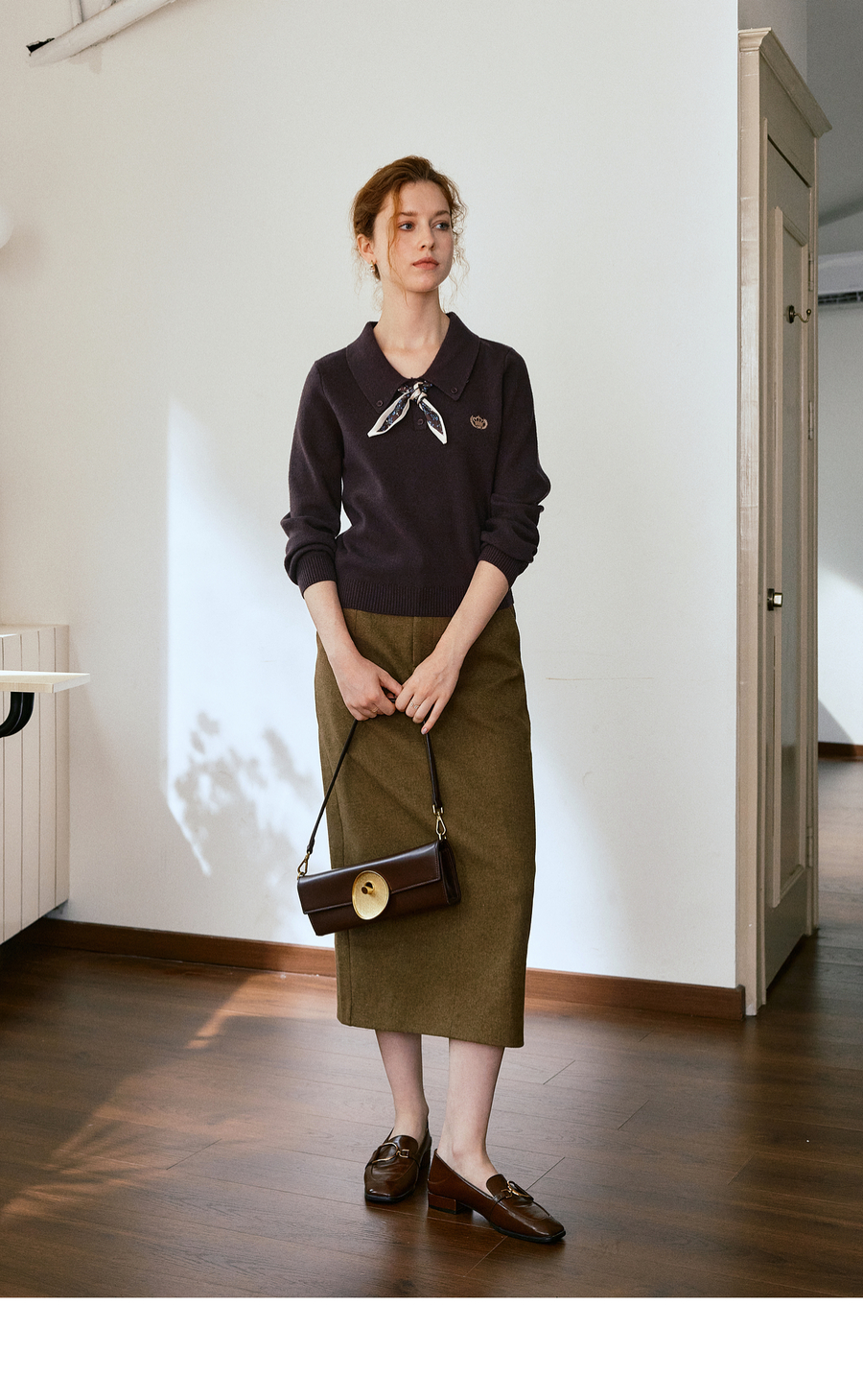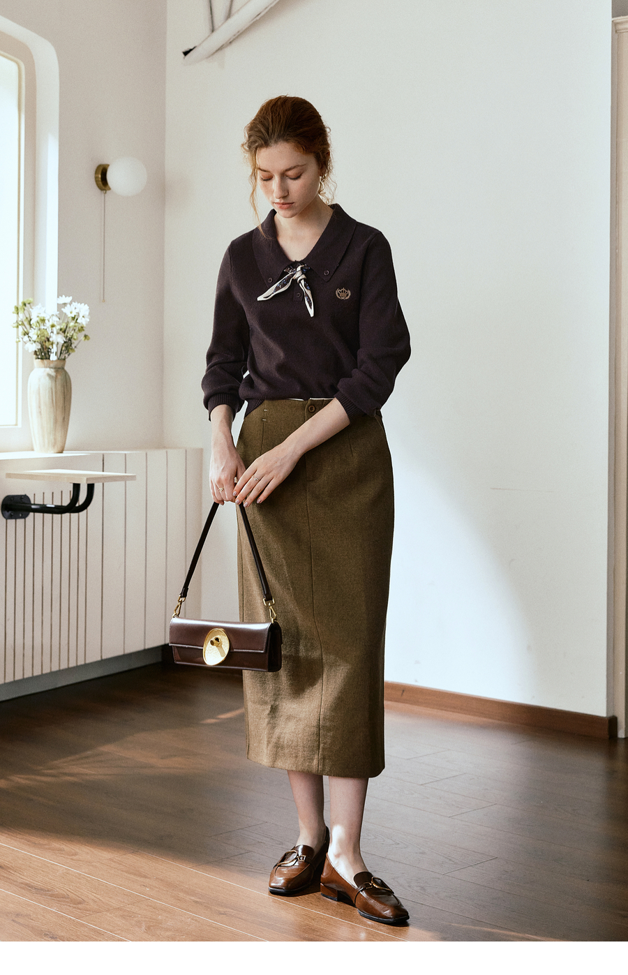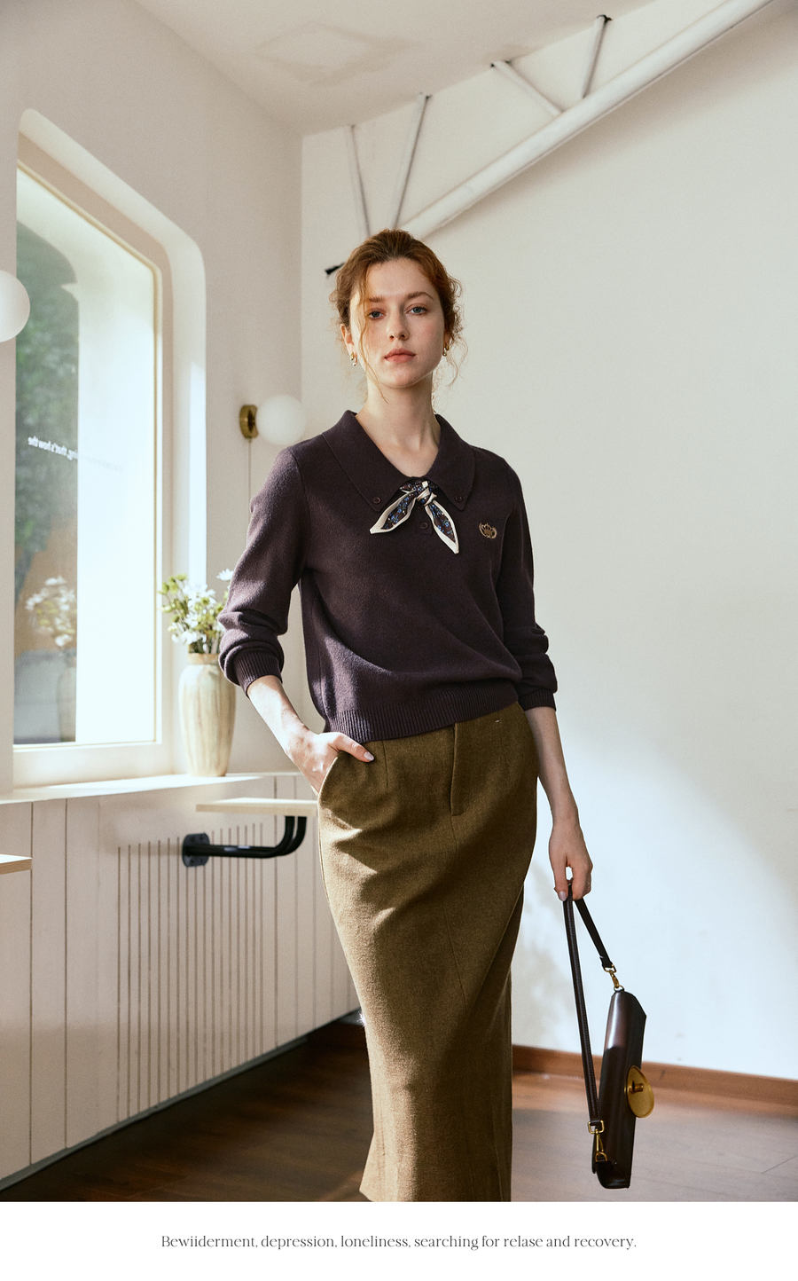 OLrain欧芮儿POLO领通勤风毛织套头衫女秋季2025新款搭配丝巾毛衣