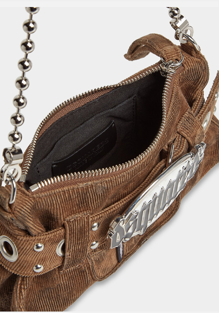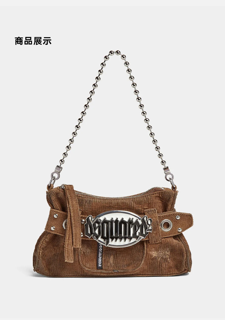 【二】DSQUARED2 女士金属徽标哥特式皮革单肩包 棕色 CLW0031 16807677 5075