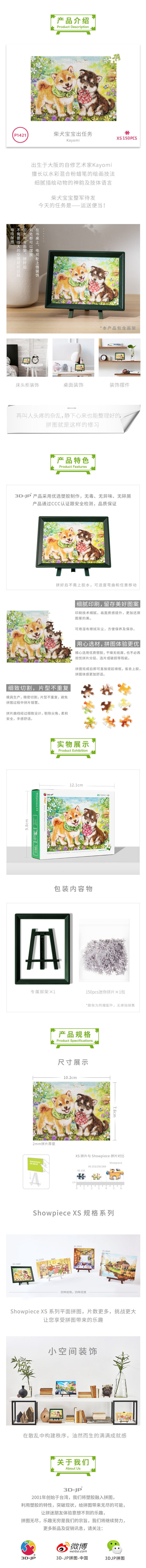 【折扣商品 不退不换】150片 迷你拼图 塑料拼图 P1421 Kayomi - 柴犬宝宝出任务(配小画框)