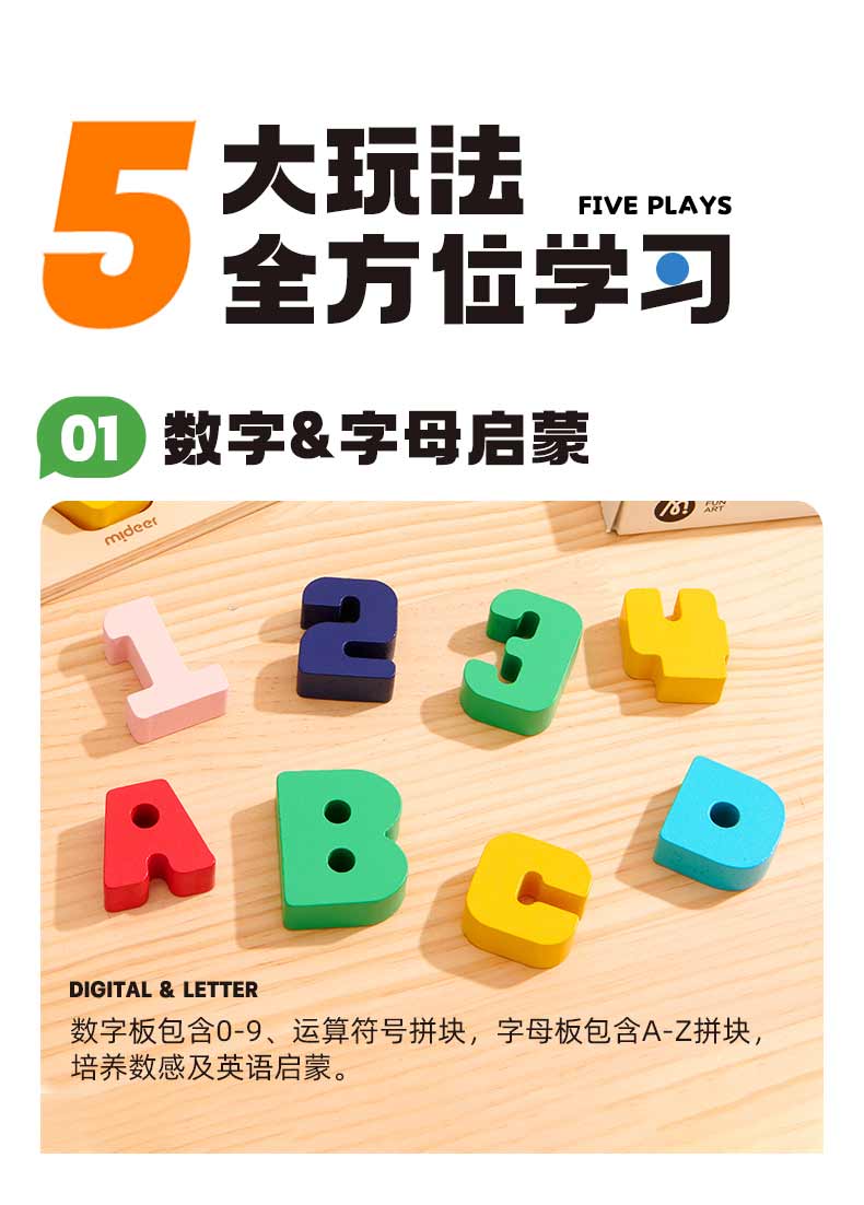 【丸丫专属】mideer弥鹿手抓认知板拼图蒙氏早教益智玩具积木婴儿1-2-3岁宝宝