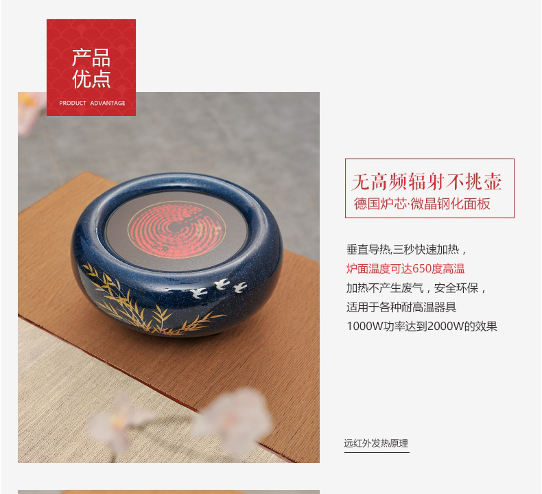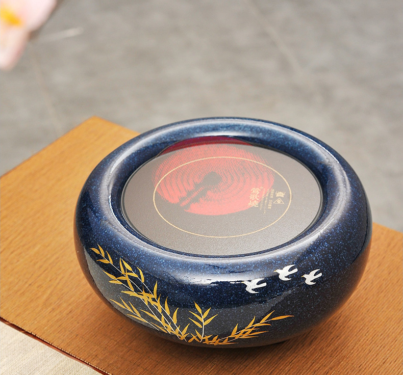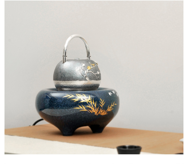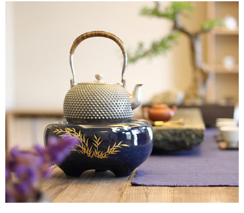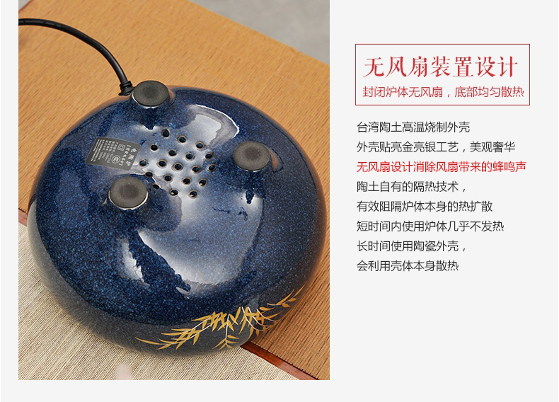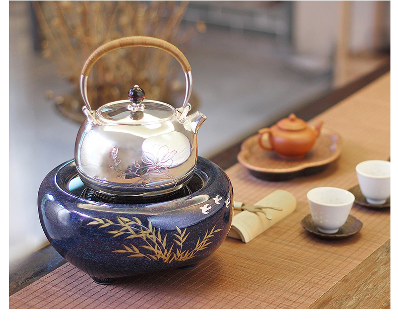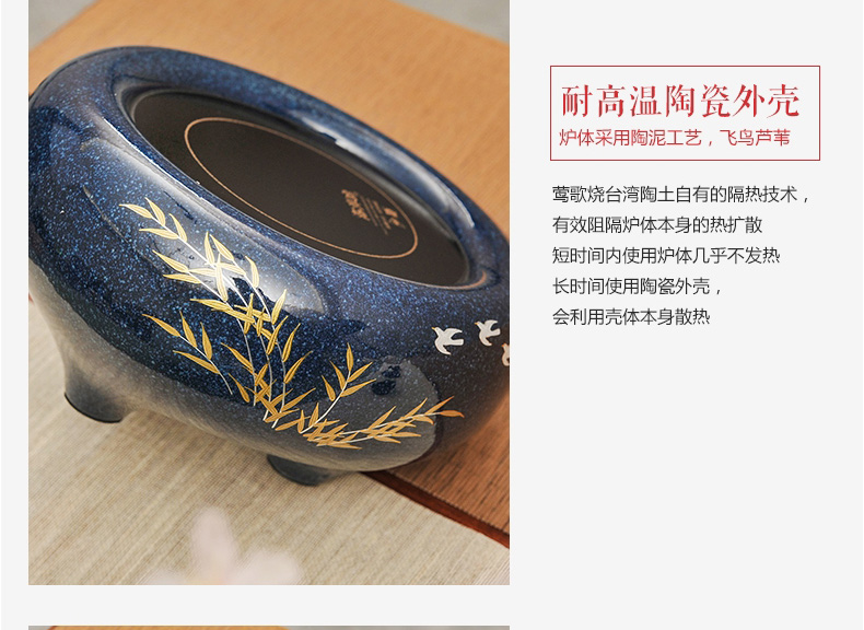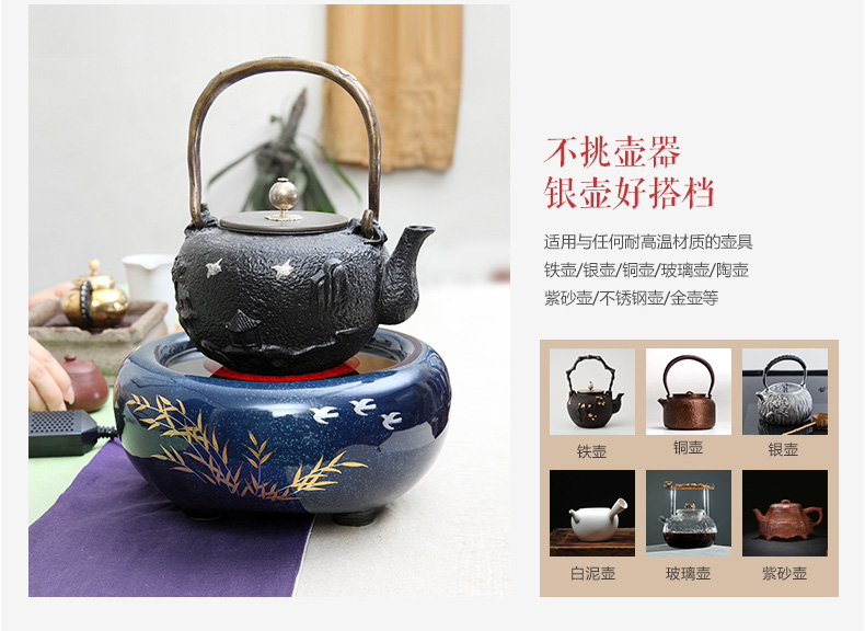 莺歌烧蓝底 飞鸟芦苇电陶炉煮茶家用茶炉 铁壶银壶煮茶器泡茶电炉 蓝色飞鸟