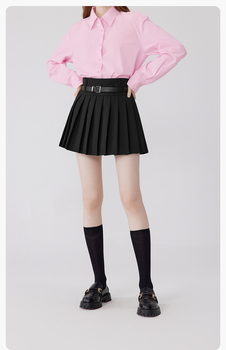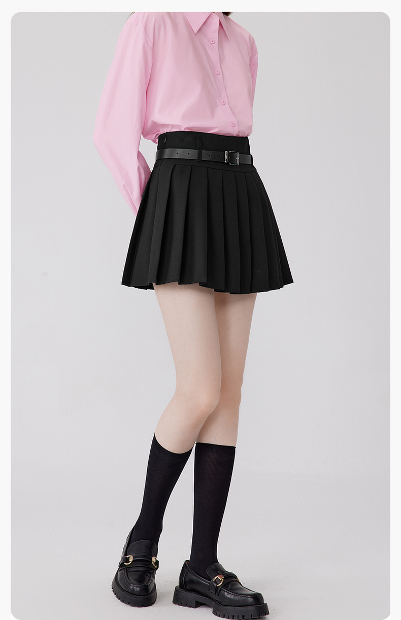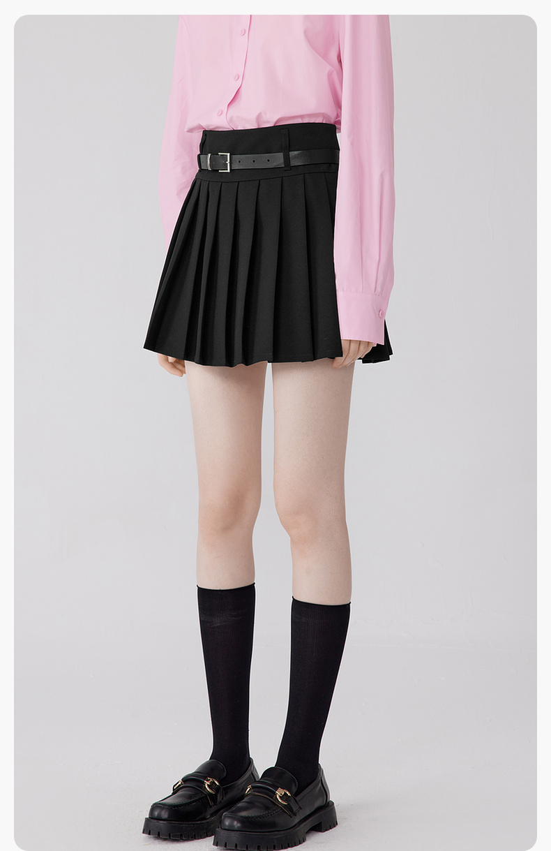【严选】诗凡黎秋百褶减龄学院风黑色显瘦半裙SE7240271