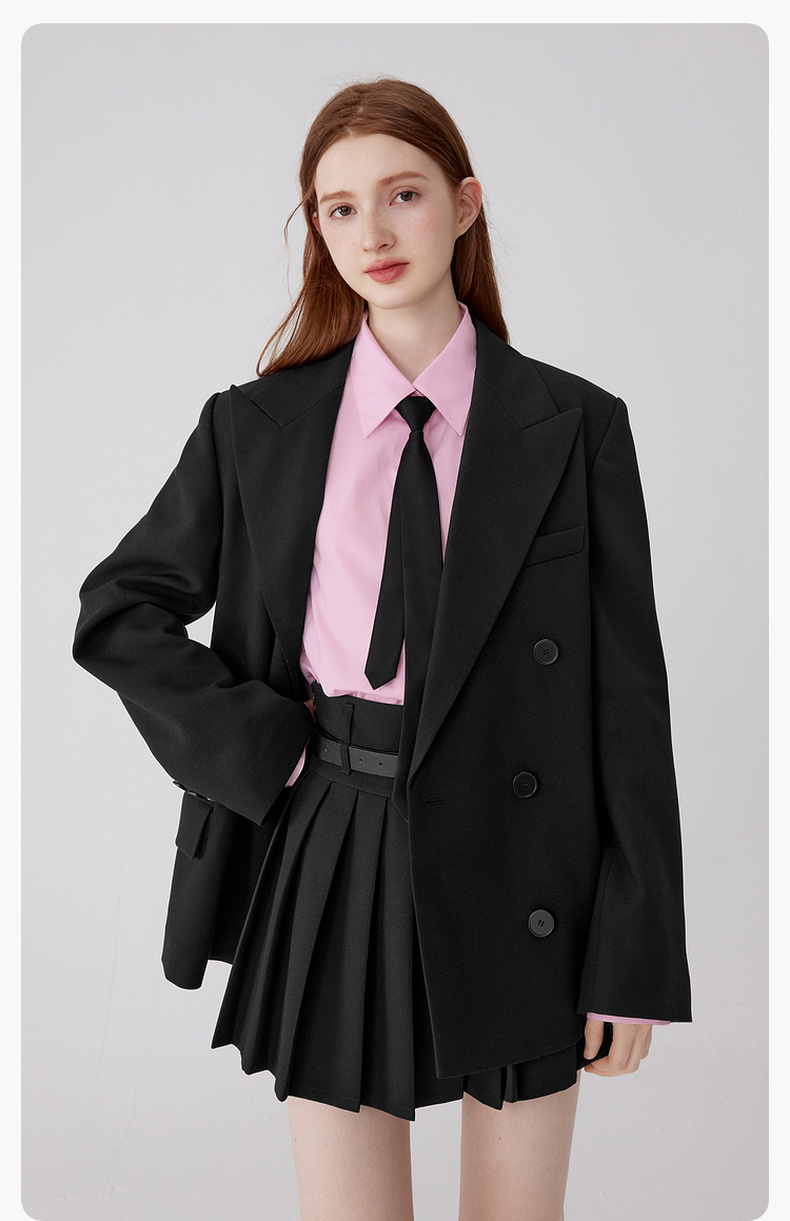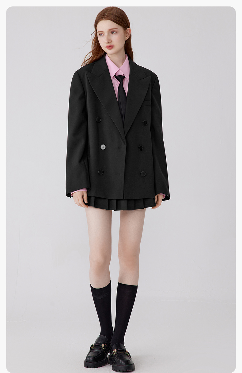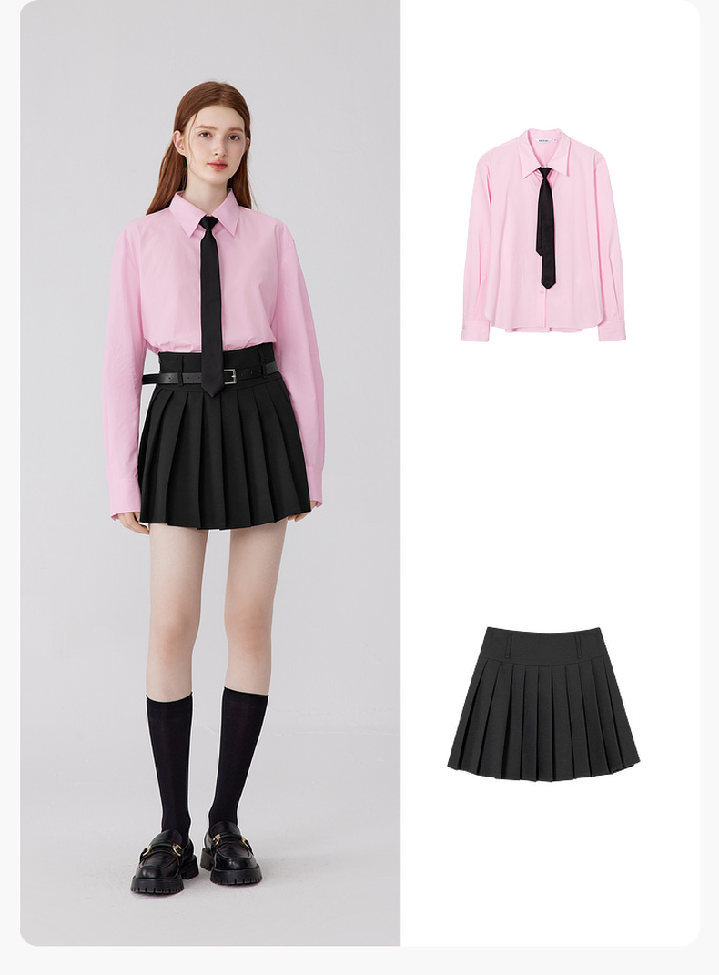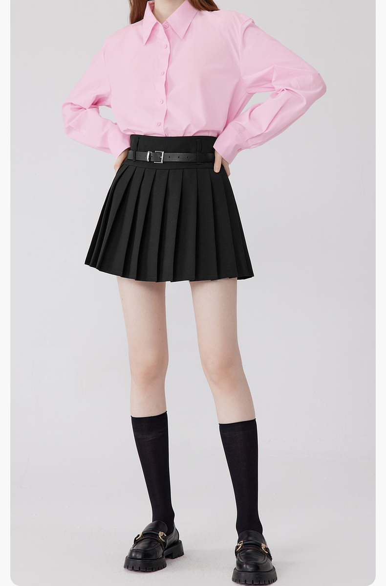 【严选】诗凡黎秋百褶减龄学院风黑色显瘦半裙SE7240271