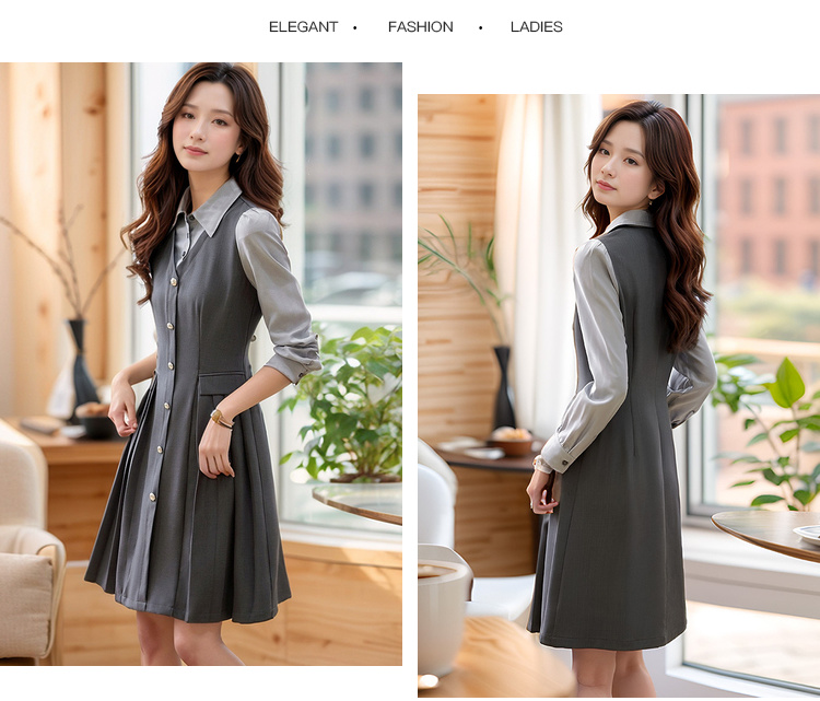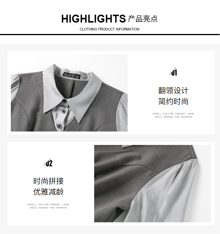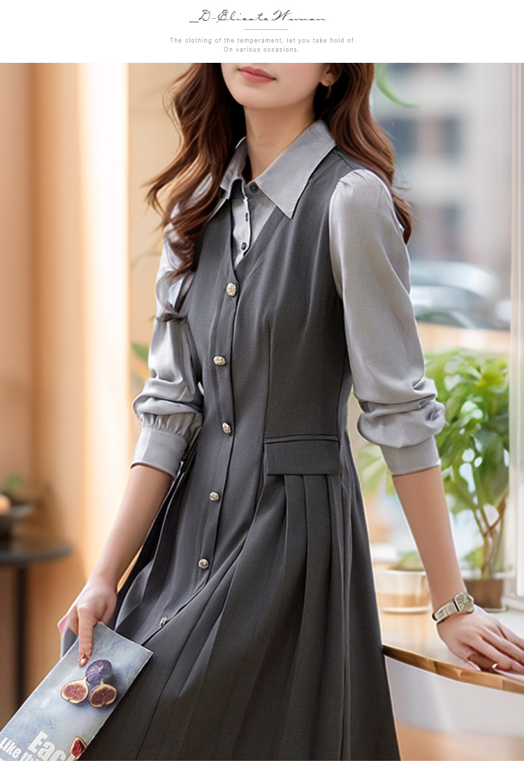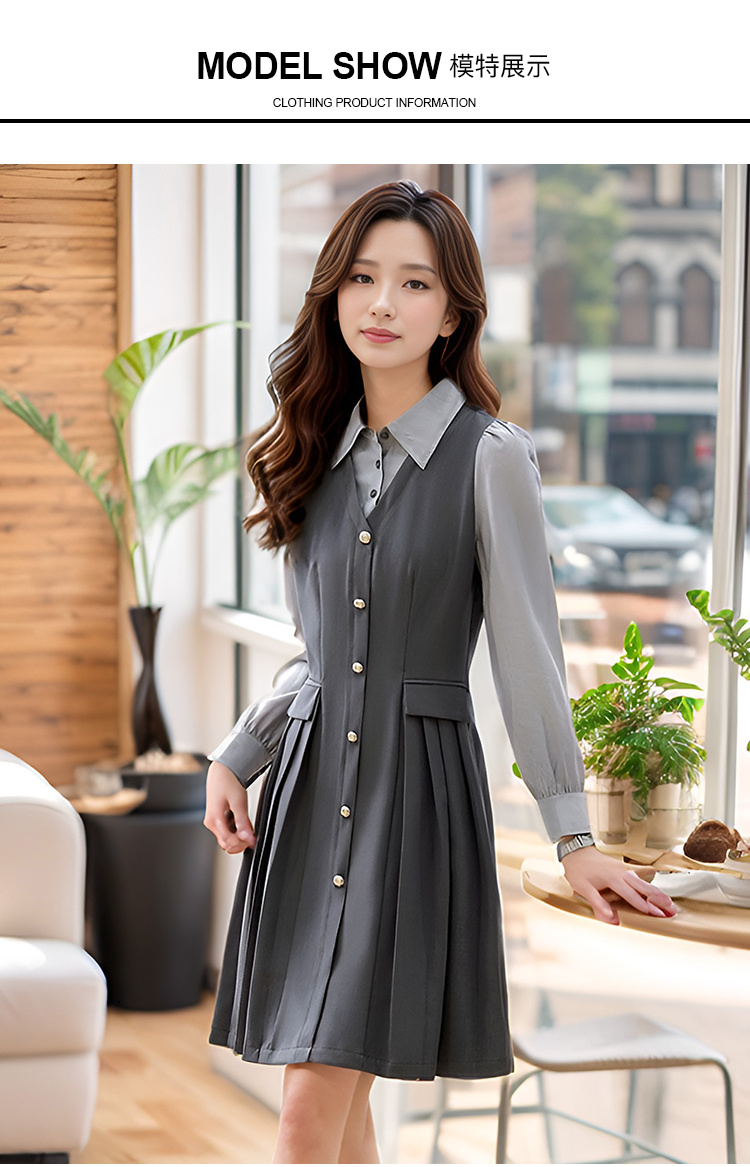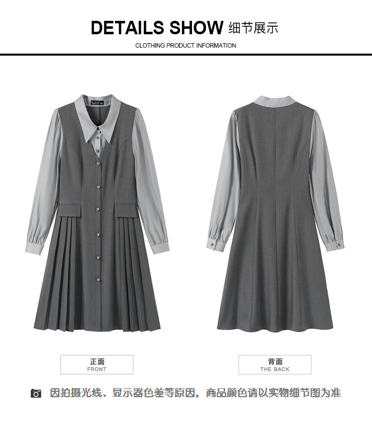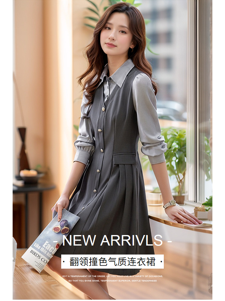 奢姿2024年秋季新款大码女装拼接压褶裙子胖妹妹休闲翻领连衣裙9943860328
