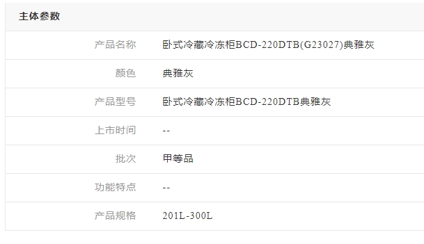 美菱 冰柜 BCD-220DTB(G23027)典雅灰 201L-300L 双温柜 顶开 卧式冷藏冷冻柜