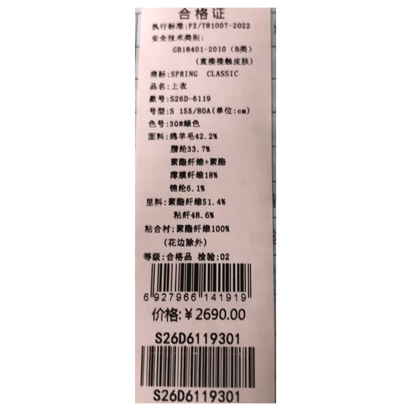 西贝伦上衣S26D6119