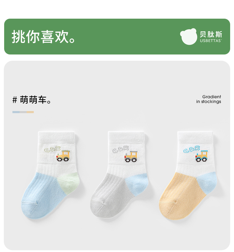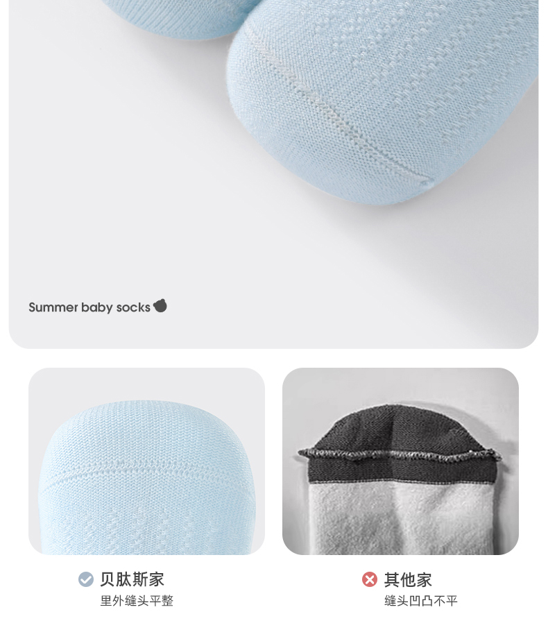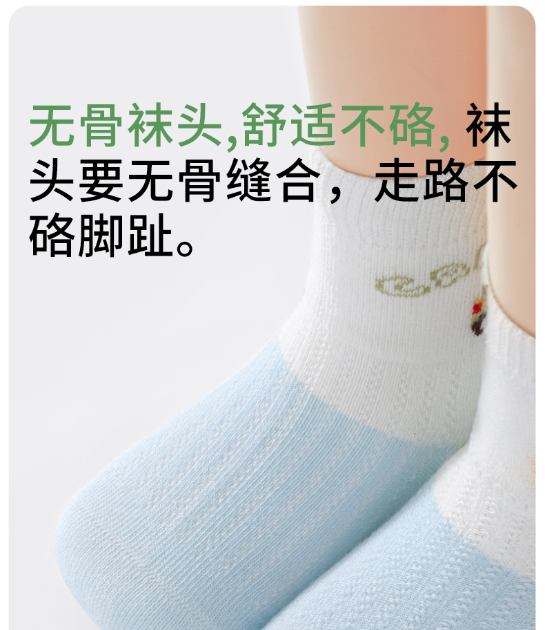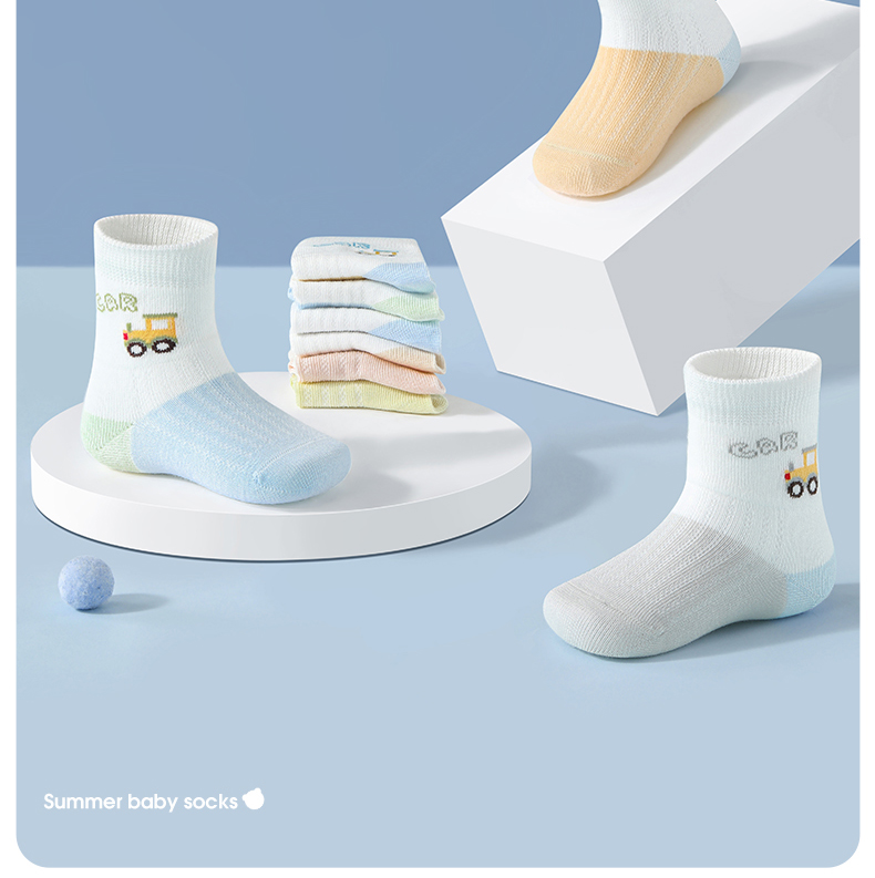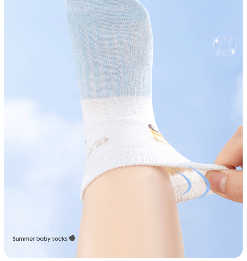 贝肽斯婴儿袜子夏季薄款儿童卡通无骨中筒袜宝宝柔软透气网眼袜
