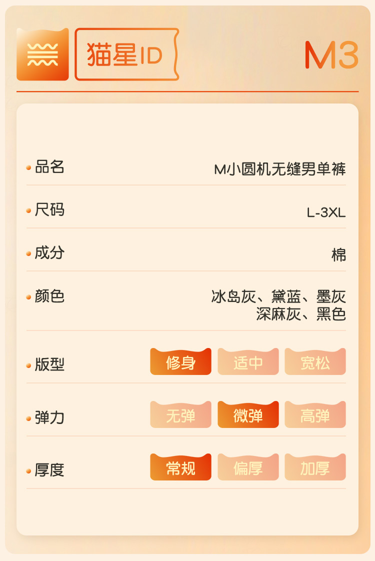 【L-3XL】【猫人】男士纯棉保暖裤