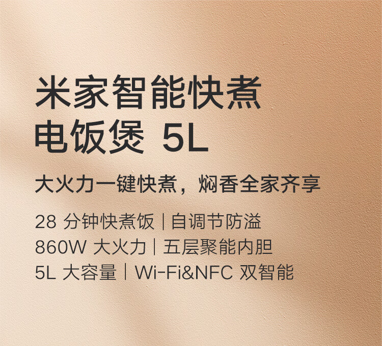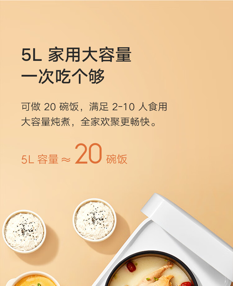 米家小米电饭煲家用4-5个人 多功能电饭锅煮饭锅煮粥锅 厚质内胆不粘锅智能防溢 大容量5升